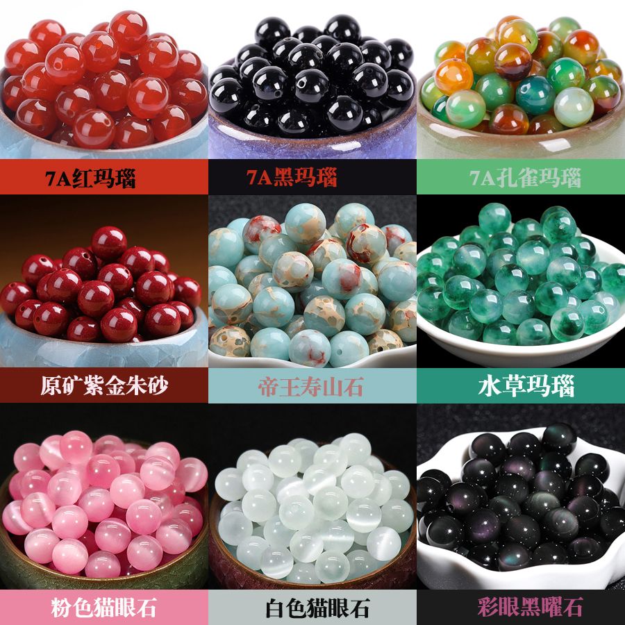 天然红玛瑙散珠黑玛瑙圆珠DIY猫眼石原矿朱砂佛珠串珠黑曜石配件