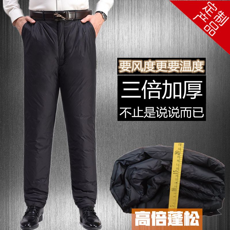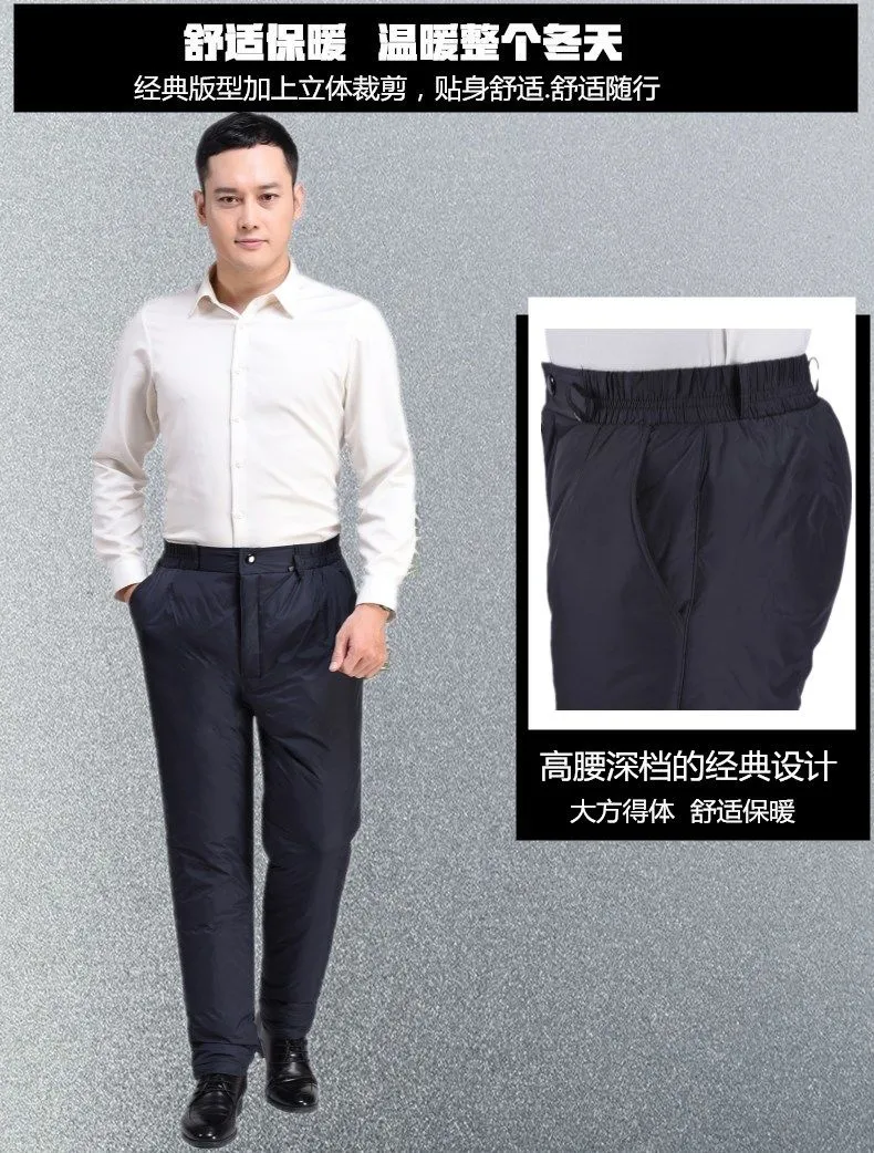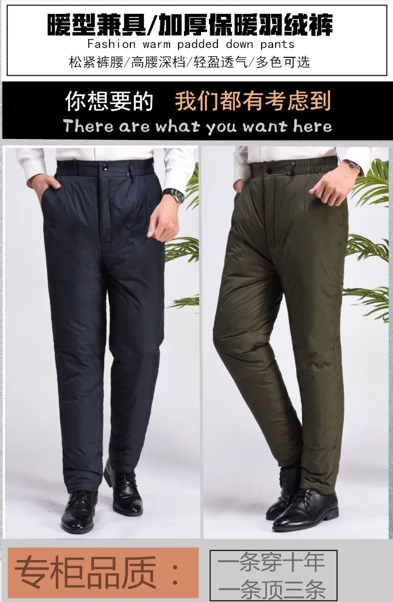 中老年羽绒裤男外穿男士加厚大码高腰棉裤冬季户外休闲透气爸爸裤