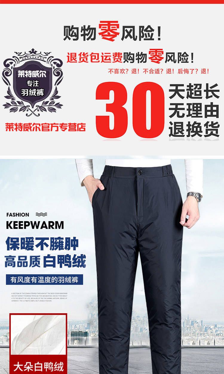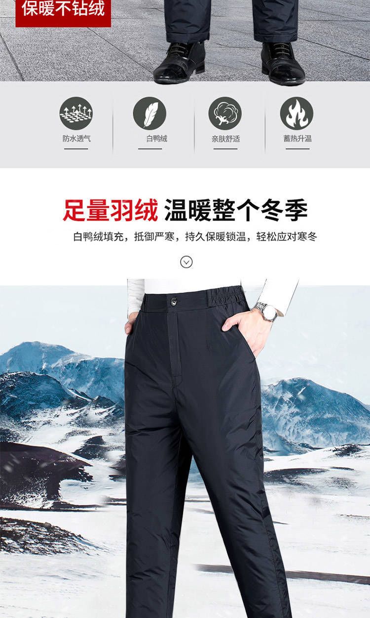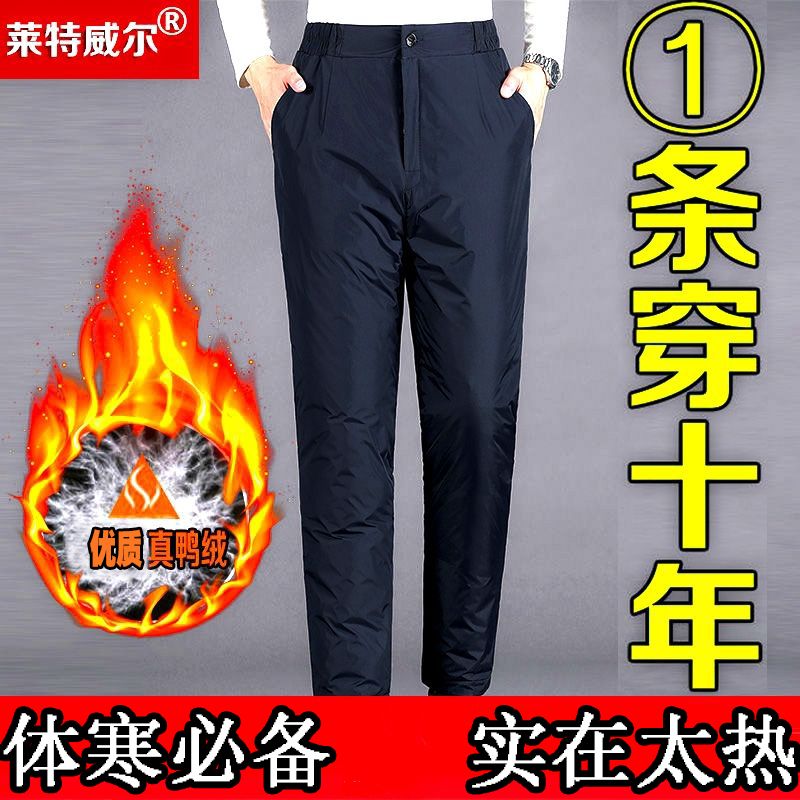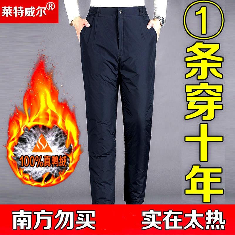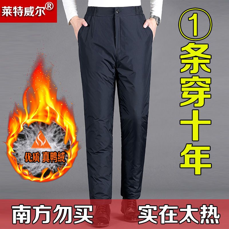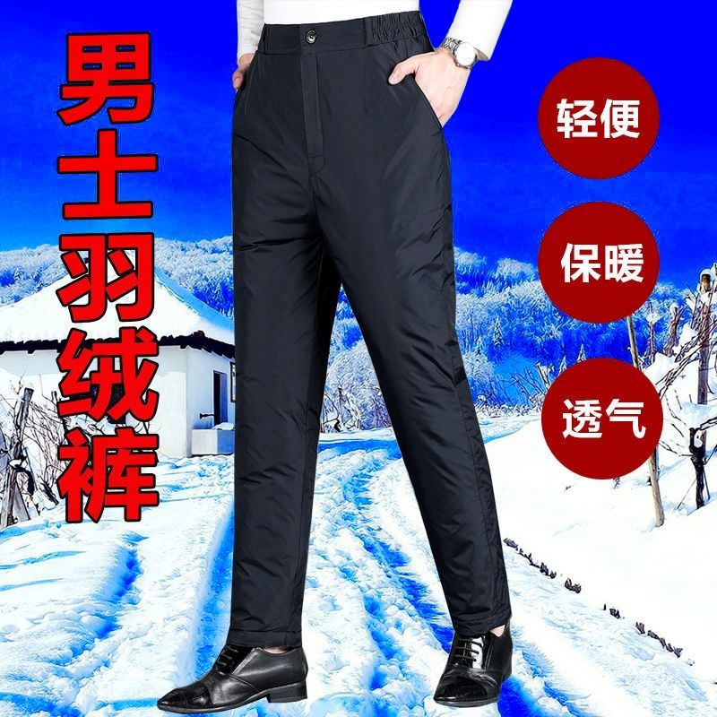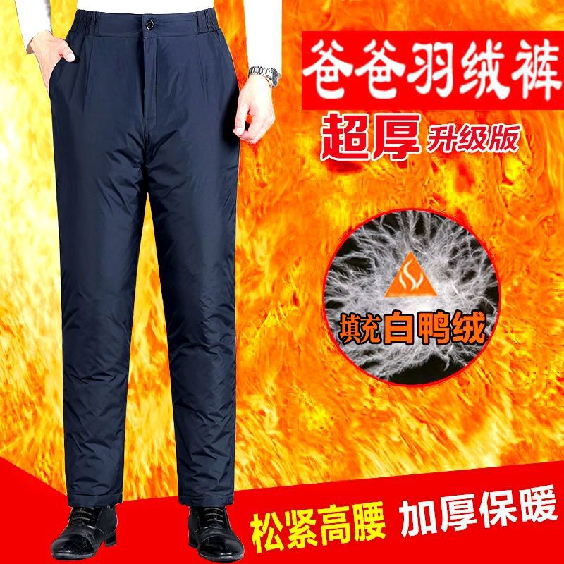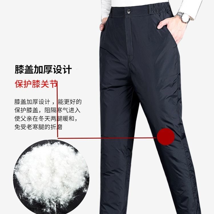 白鸭绒中老年羽绒裤男外穿直筒加厚加肥加大男士高腰新款冬季棉裤