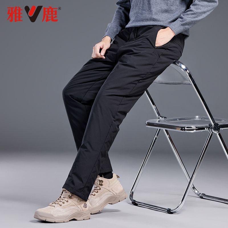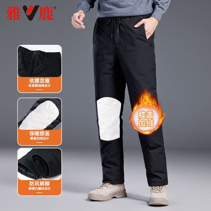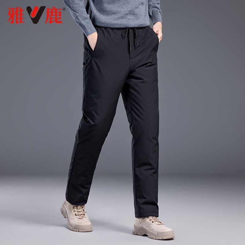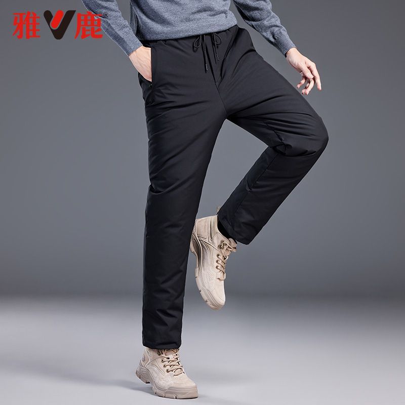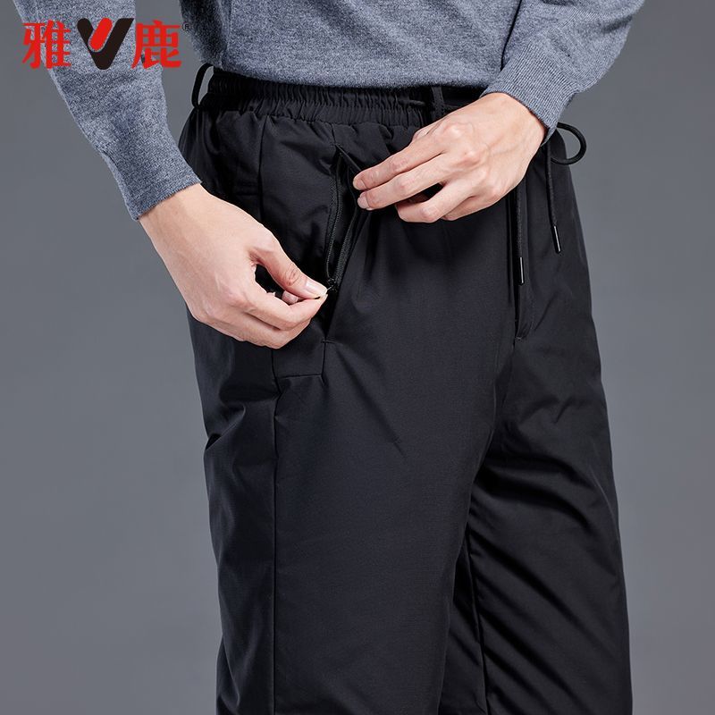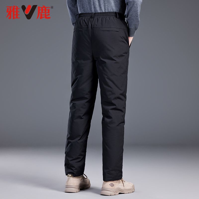 雅鹿羽绒裤男外穿中老年加厚保暖鸭绒防风高腰加长宽松大码棉裤