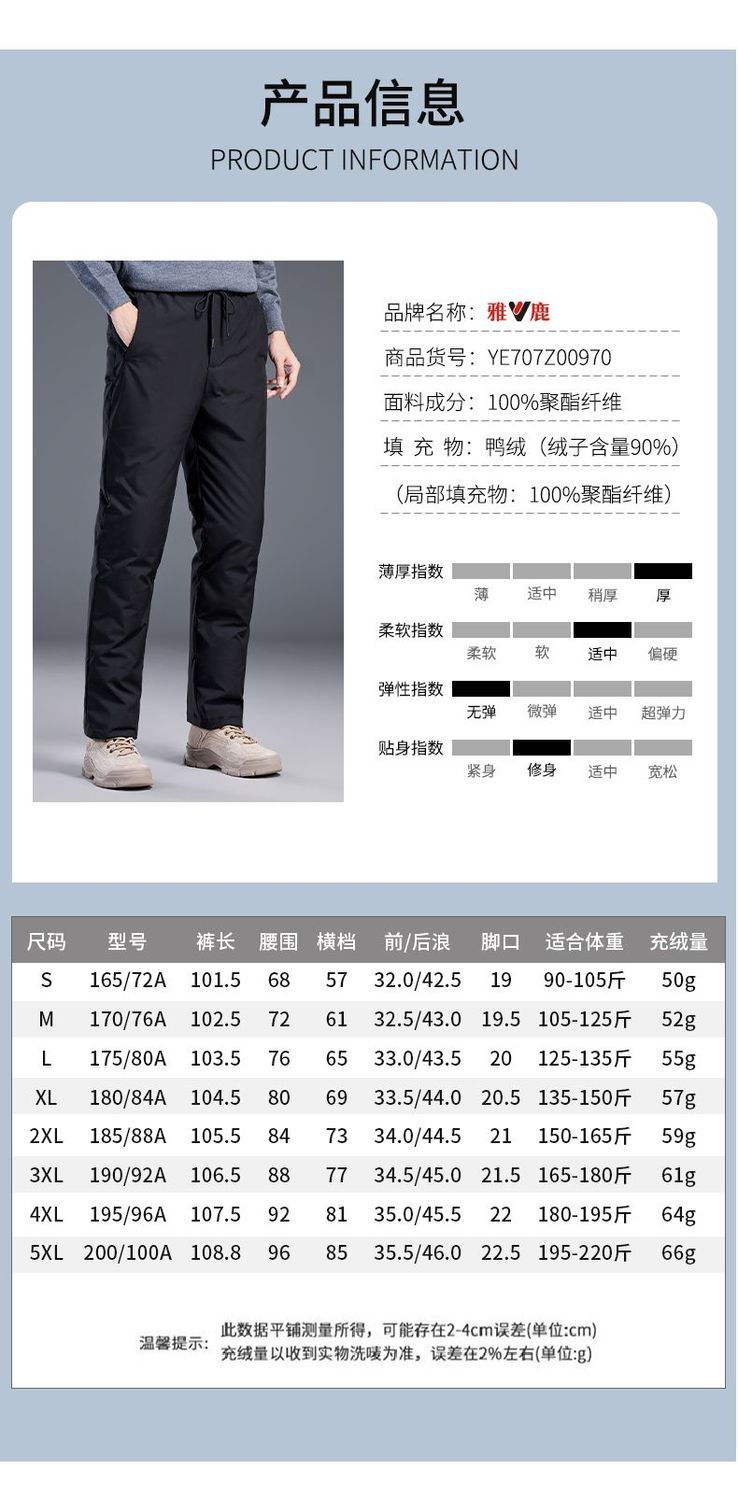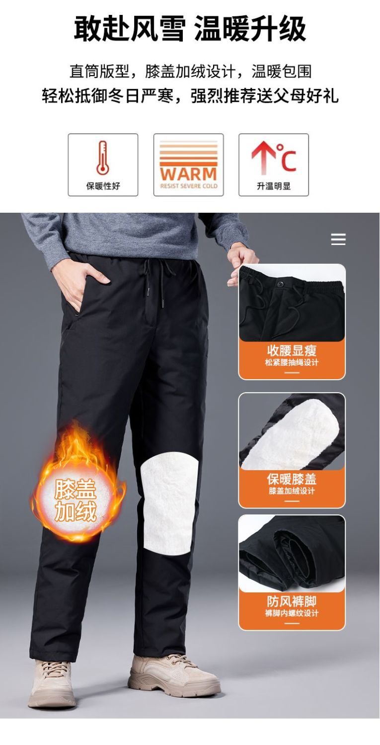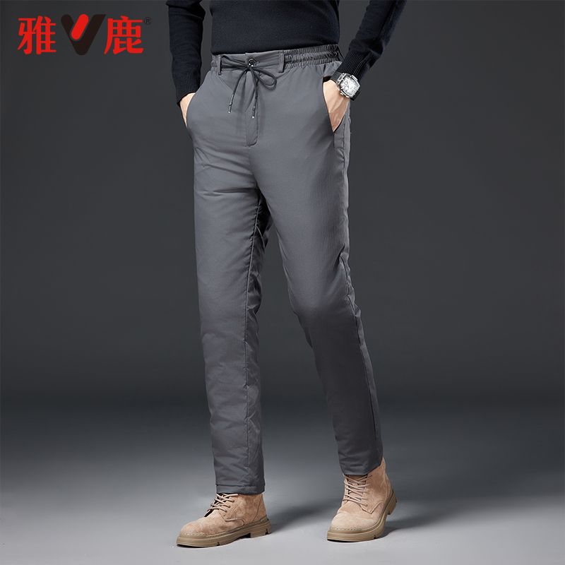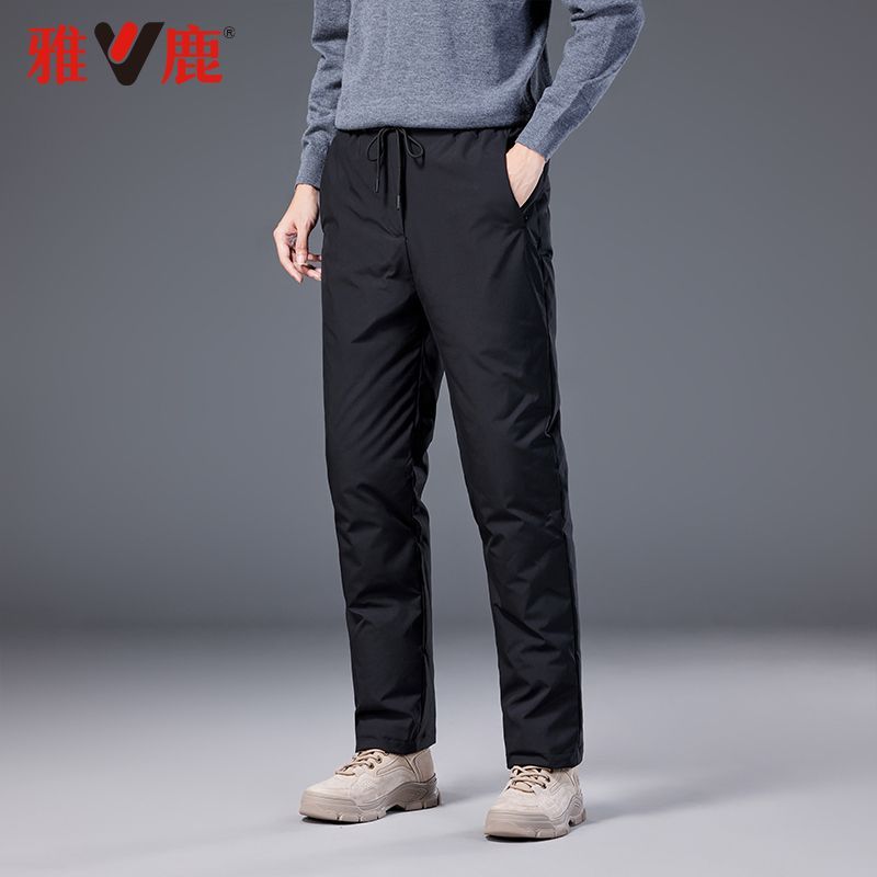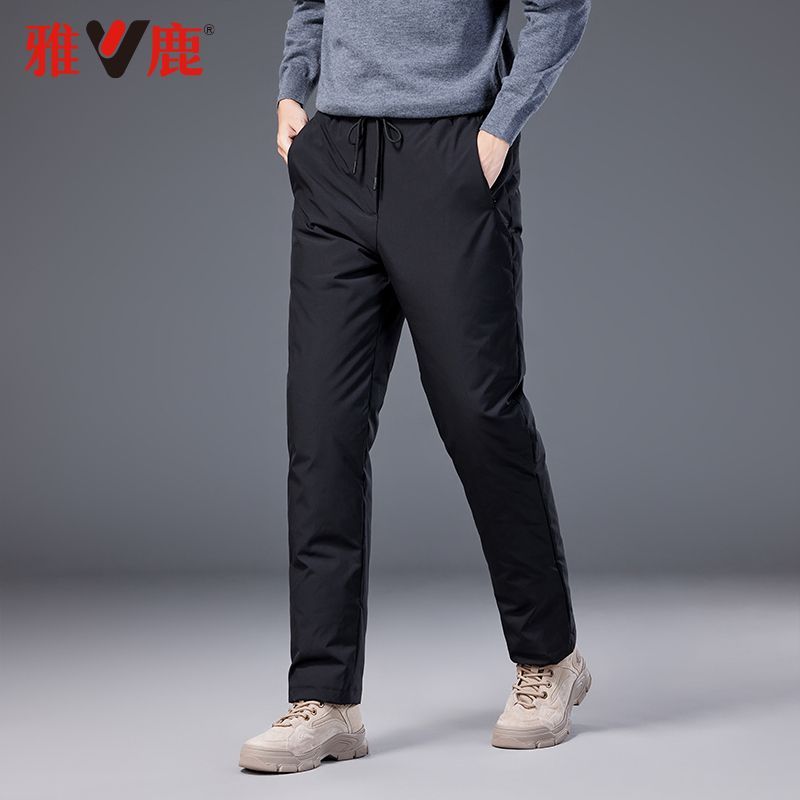 雅鹿羽绒裤男外穿中老年加厚保暖鸭绒防风高腰加长宽松大码棉裤