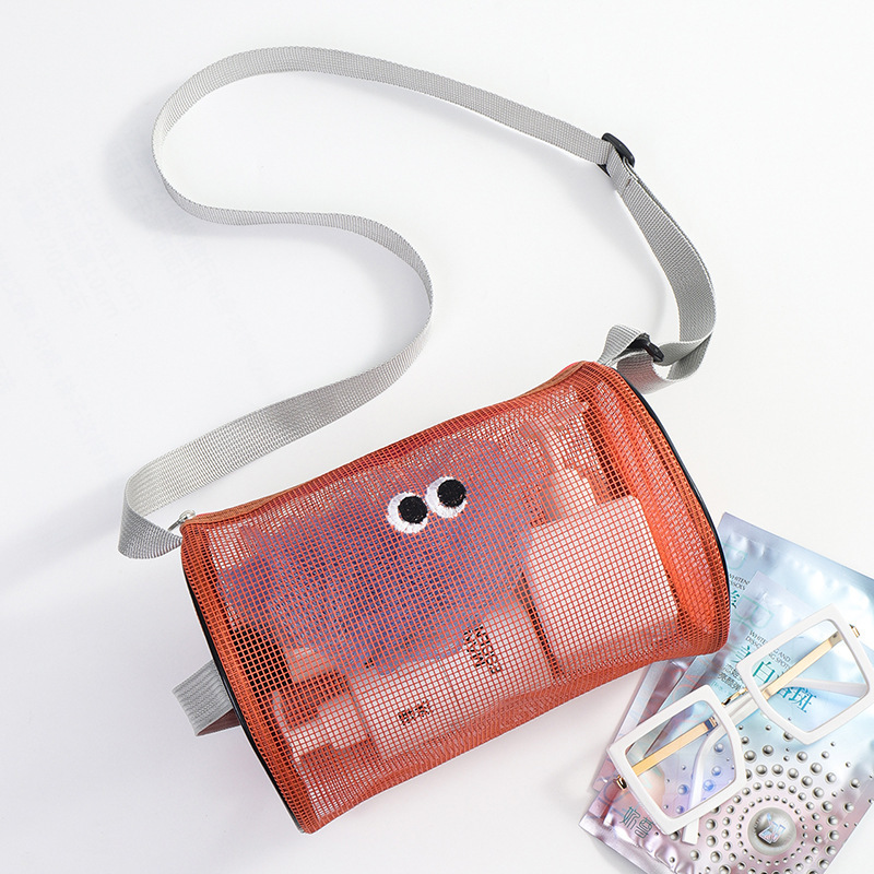韩国livework大容量透气网眼单肩圆筒包旅行沙滩游泳洗漱收纳拎包