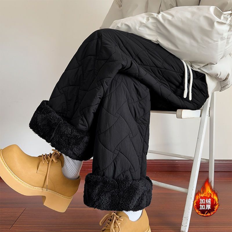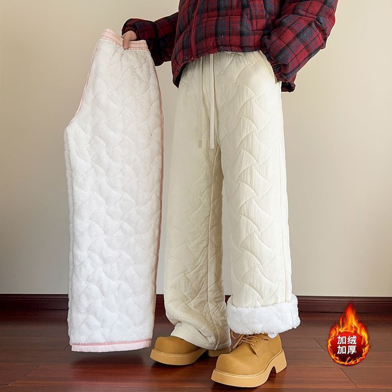 东北防寒滑雪地羽绒棉服男女冬季加厚羊羔毛裤子哈尔滨外穿保暖裤