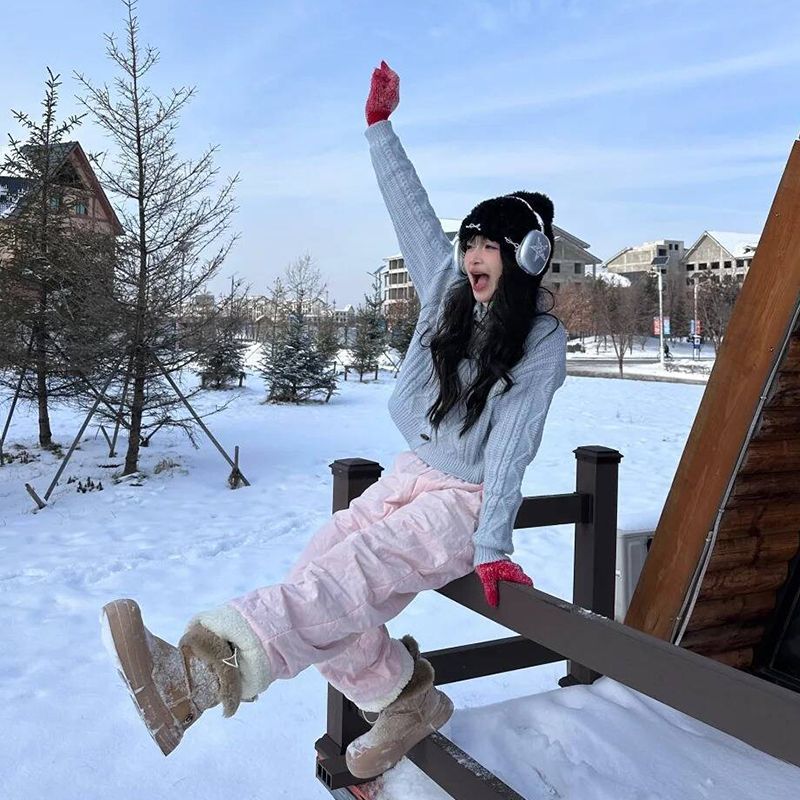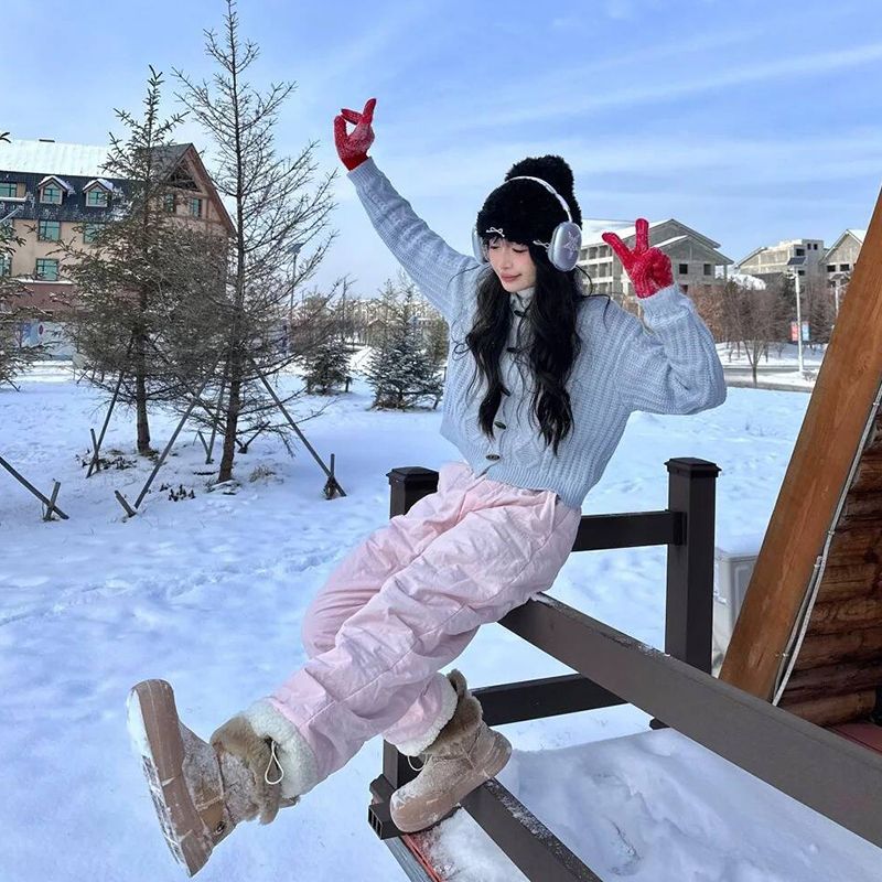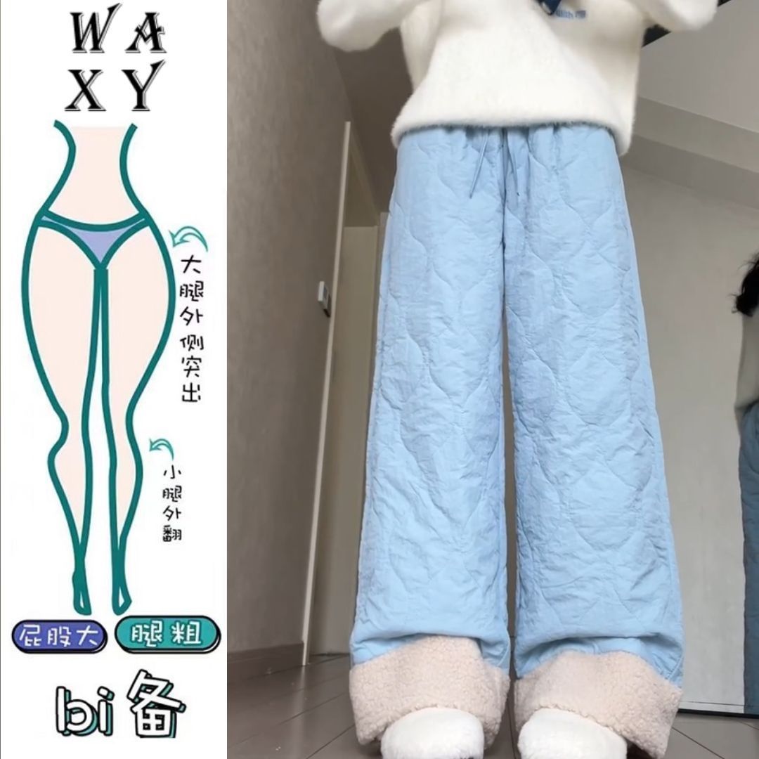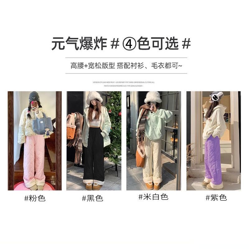 东北防寒滑雪地羽绒棉服男女冬季加厚羊羔毛裤子哈尔滨外穿保暖裤