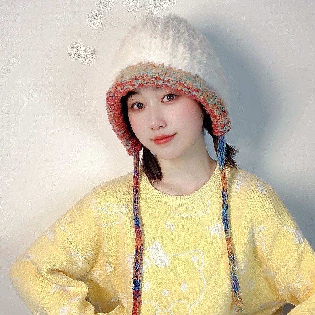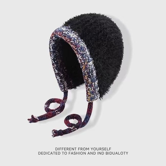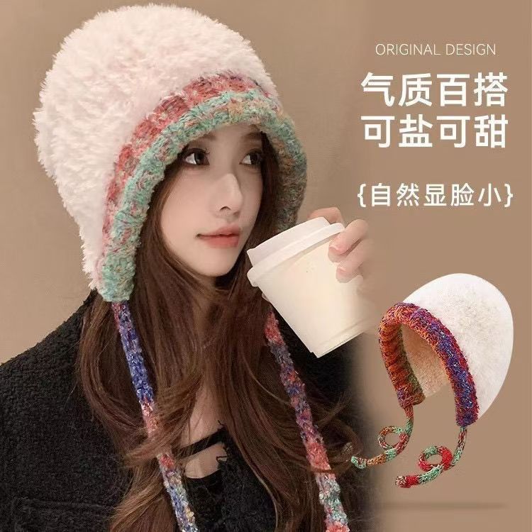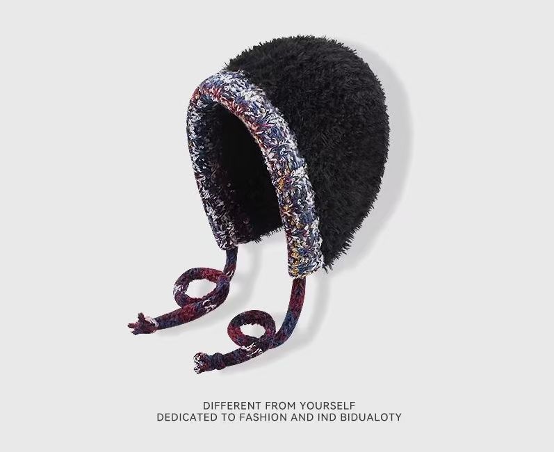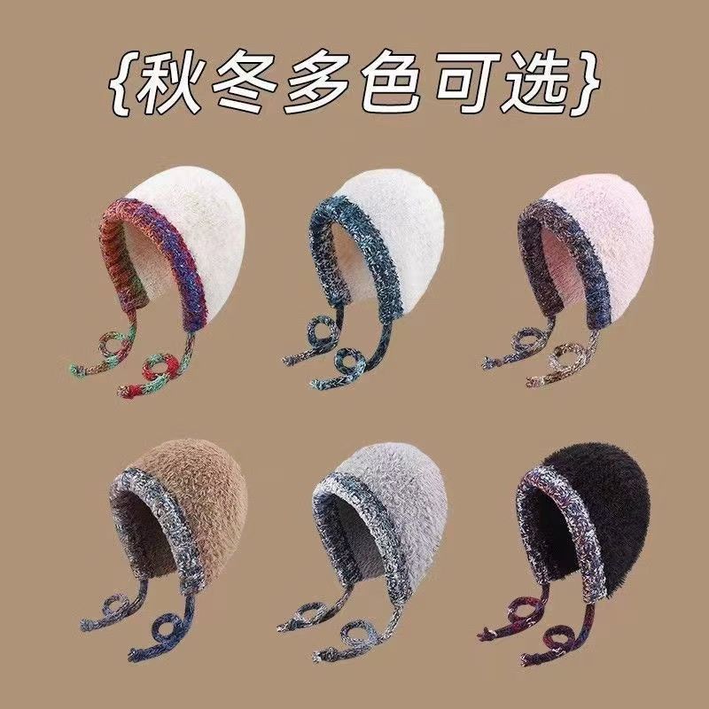 民族风韩版大头毛绒新款针织帽子秋冬加厚保暖护耳显脸毛线帽包头