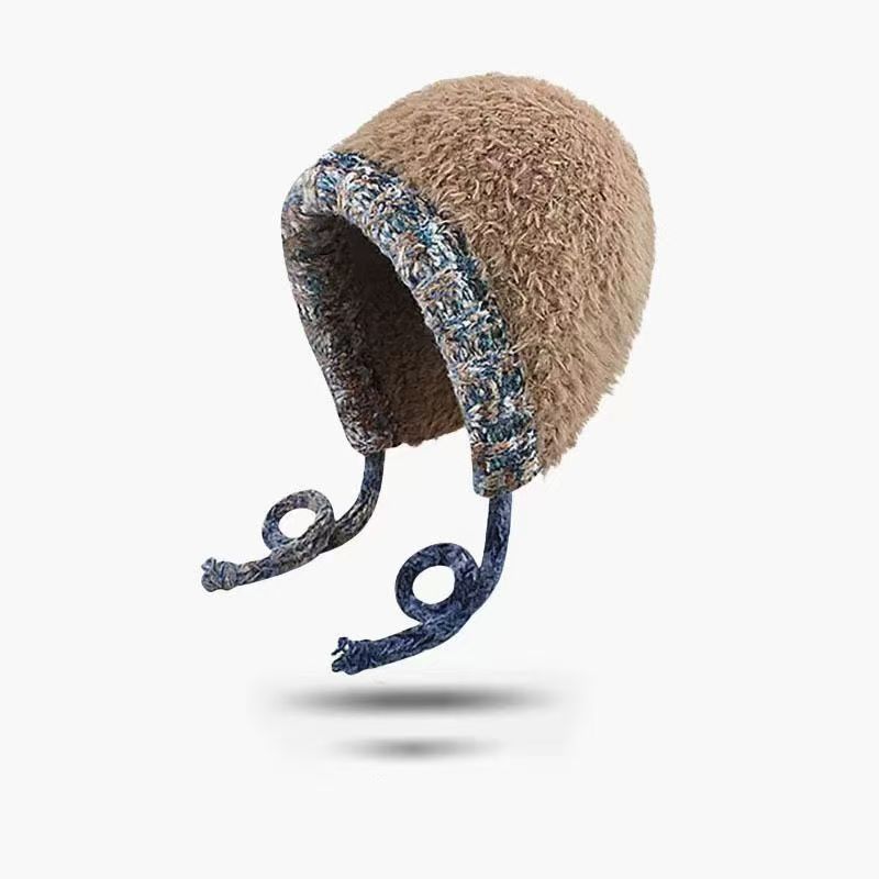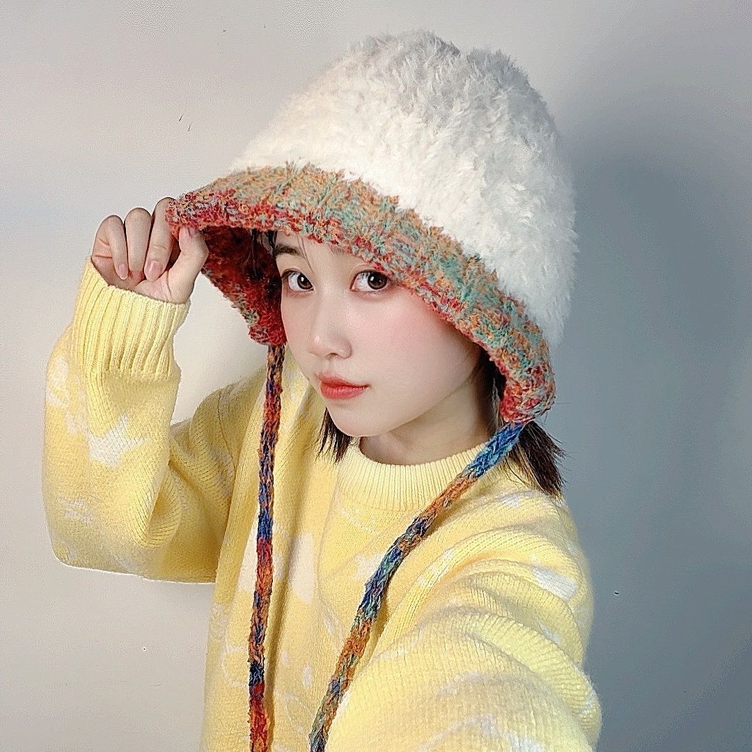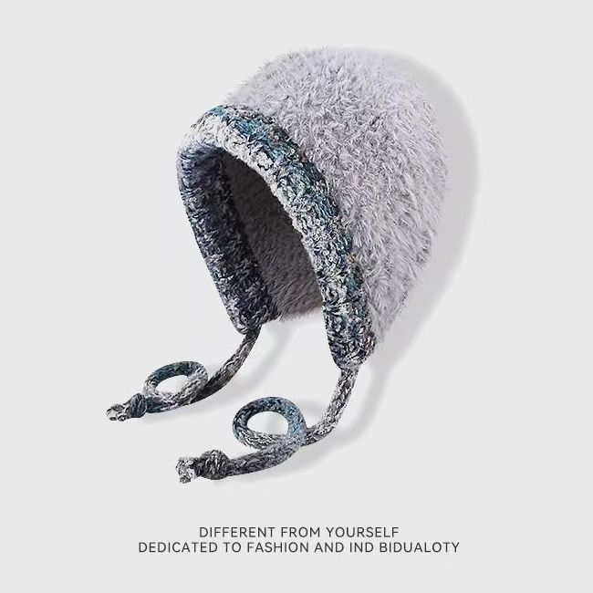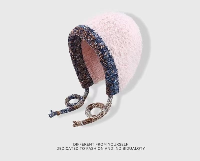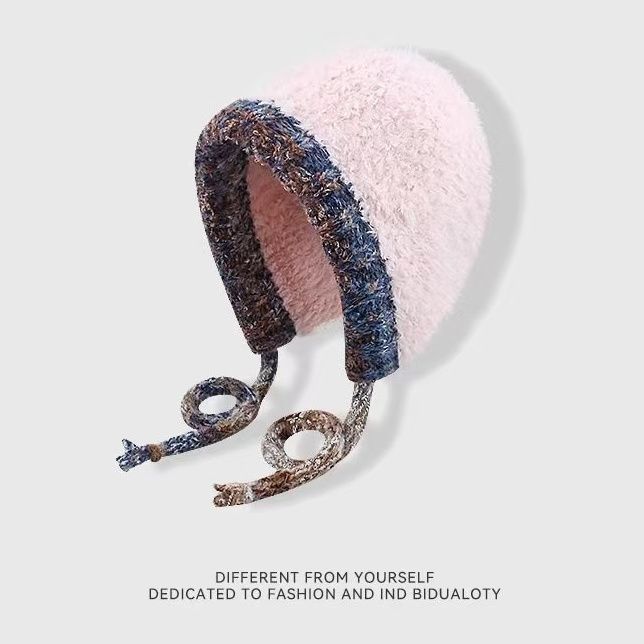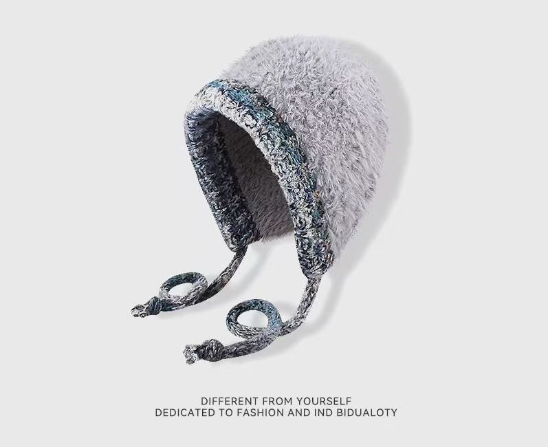民族风韩版大头毛绒新款针织帽子秋冬加厚保暖护耳显脸毛线帽包头