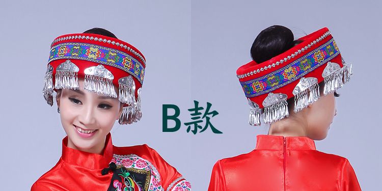 云南苗族演出服头饰土家族瑶族成人帽子少数民族舞蹈演出配饰女帽