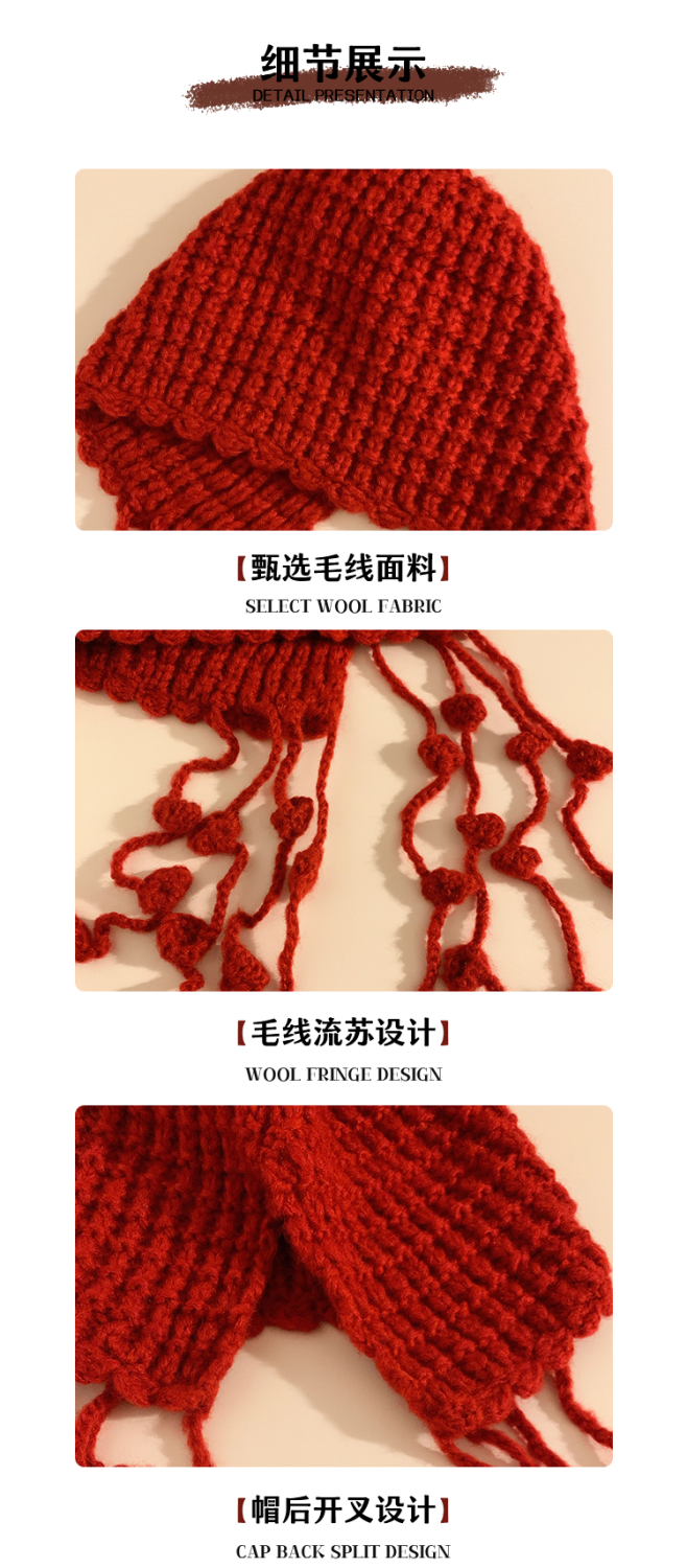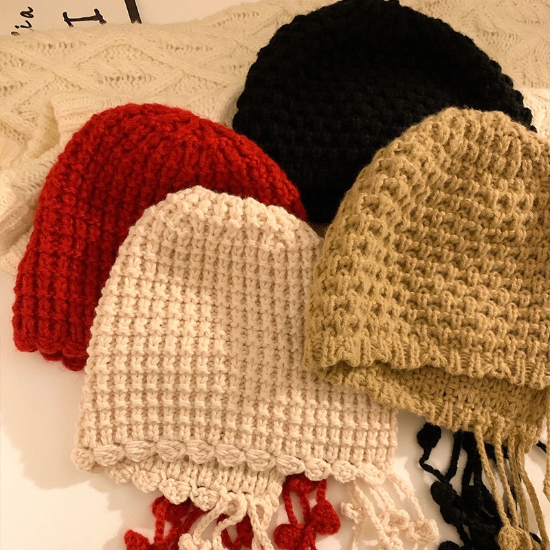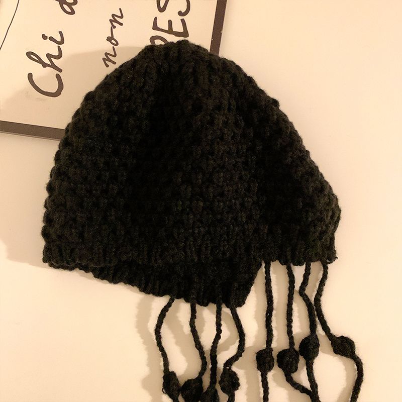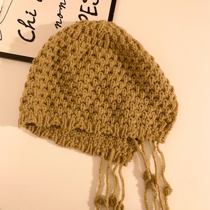 川西旅游针织镂空包头帽子女秋冬季流苏毛线帽套头保暖冷帽民族风