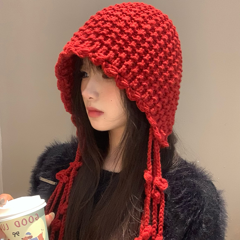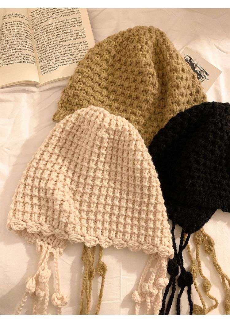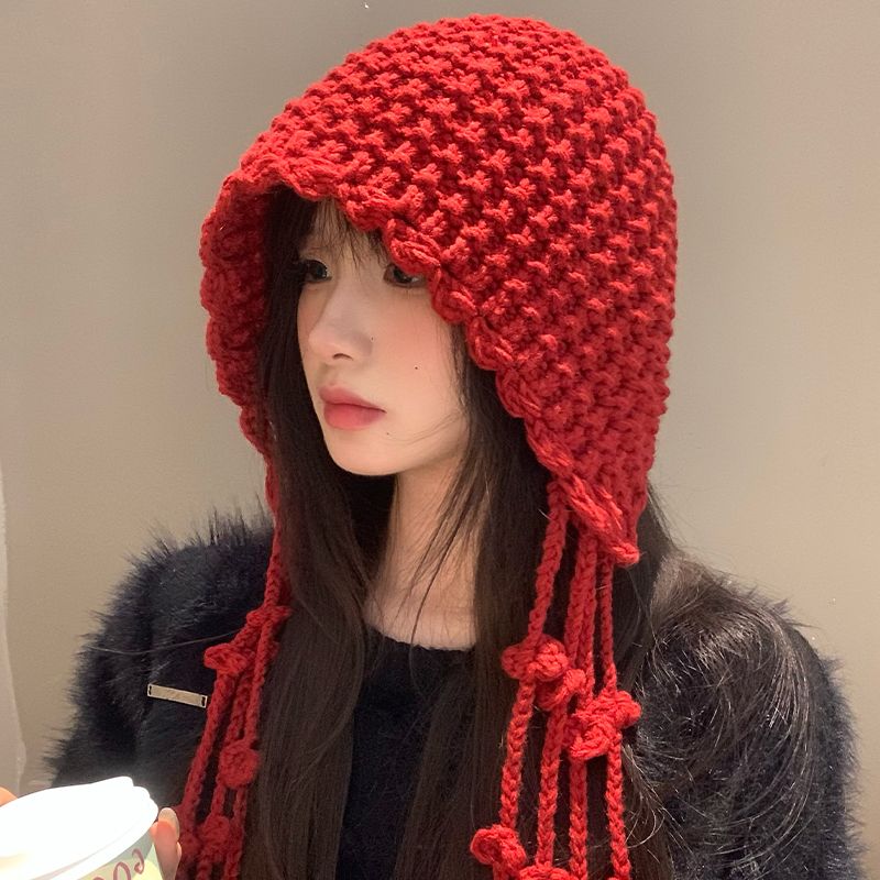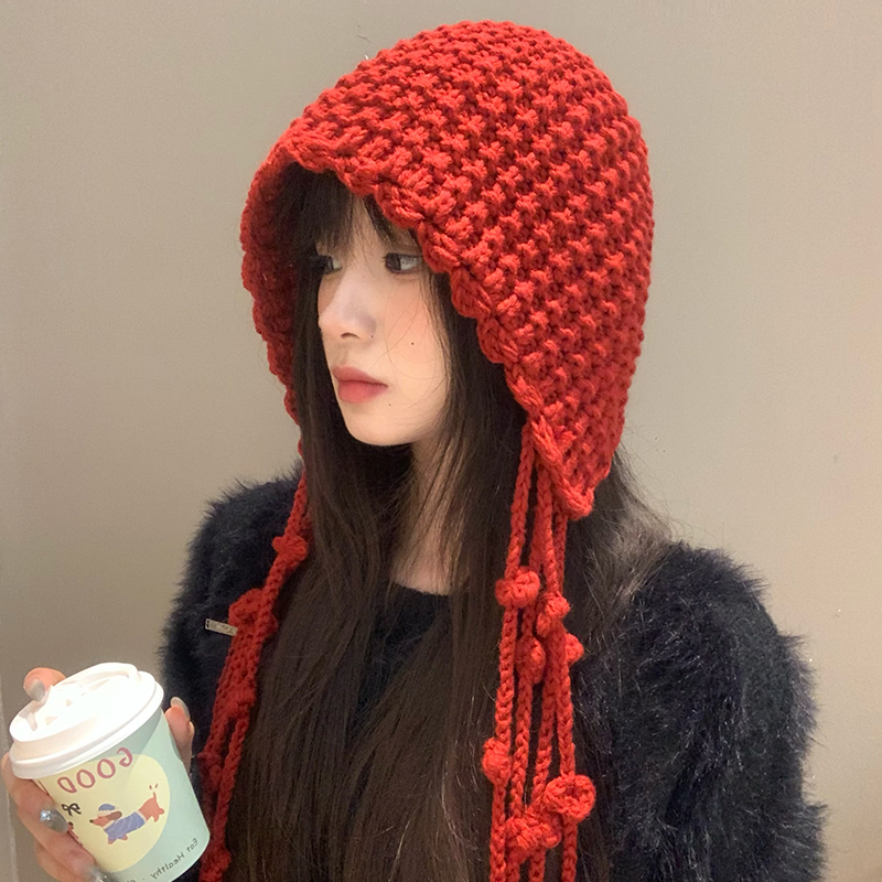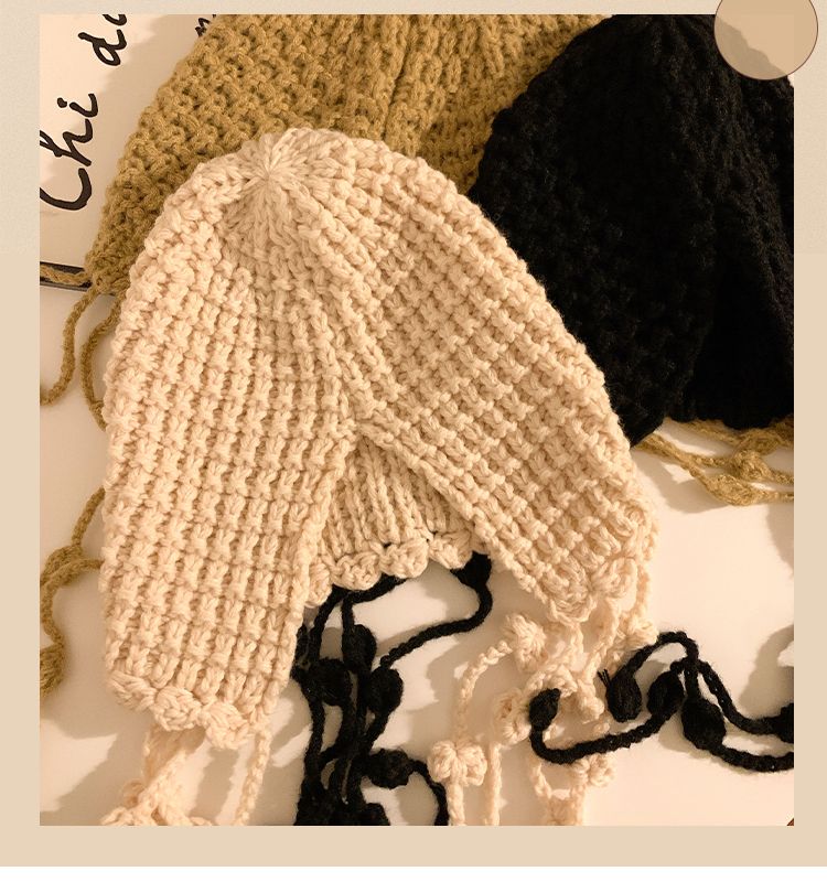 川西旅游针织镂空包头帽子女秋冬季流苏毛线帽套头保暖冷帽民族风