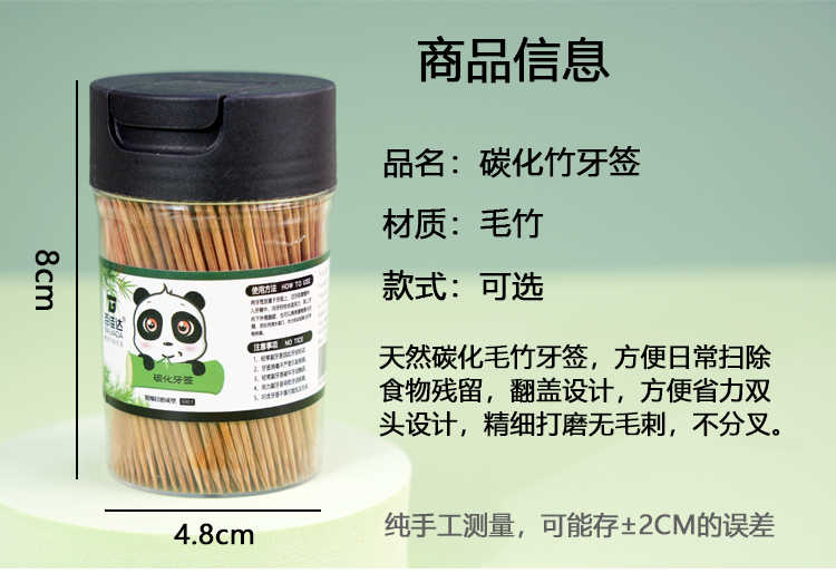 | 3500 single-head carbonized toothpicks with random toothpick tin(3500支单头碳化牙签送随机牙签罐) | USD $2.15 | 999999 piece available |