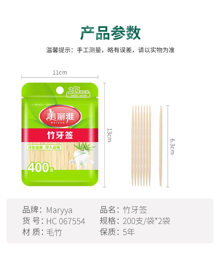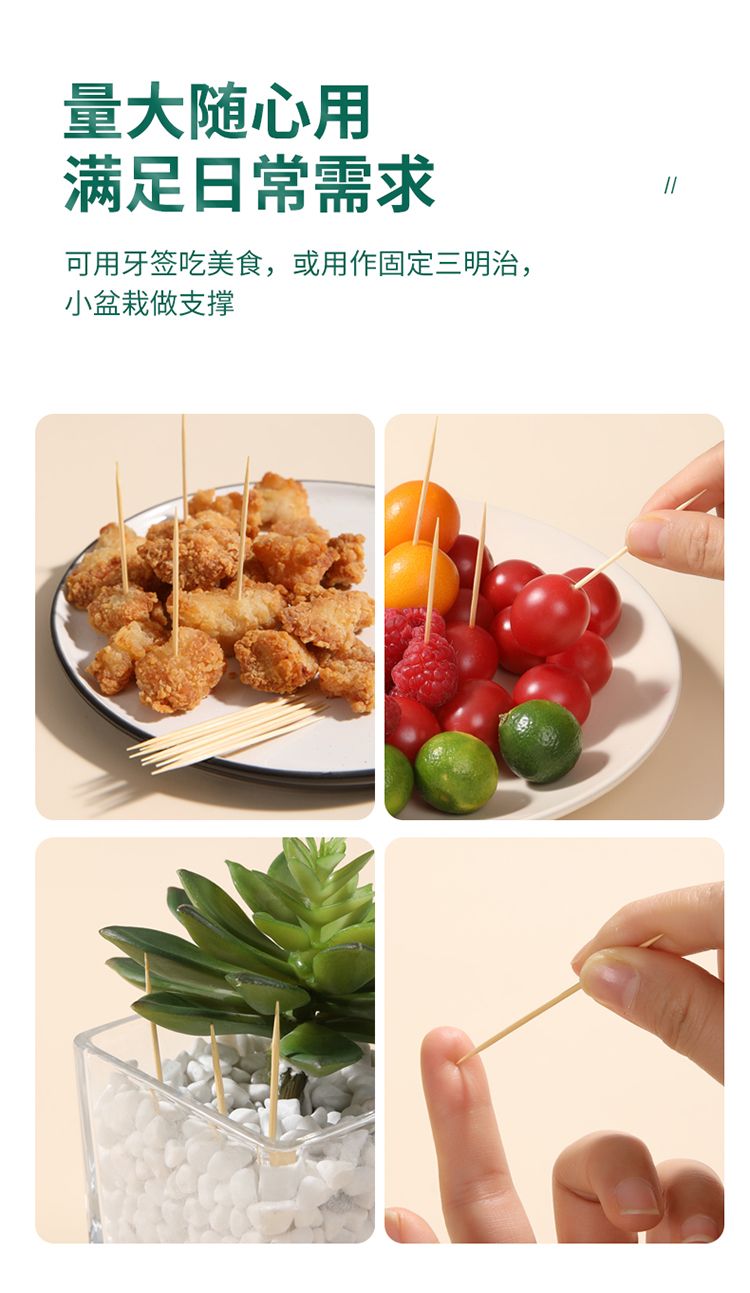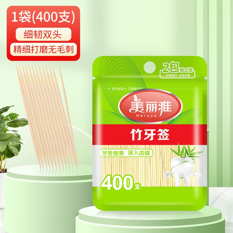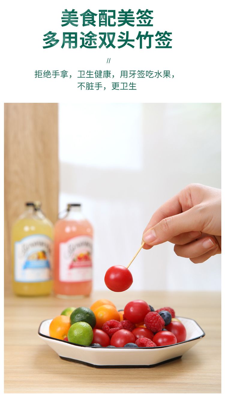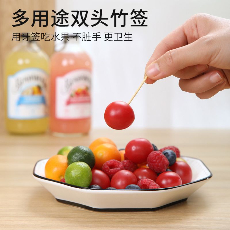 美丽雅竹牙签一次性双头尖细牙签牙齿牙缝清洁家用水果签水果叉