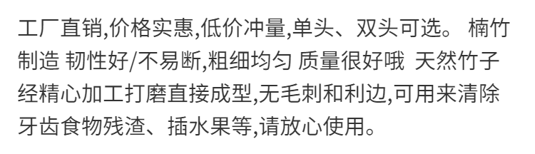 竹牙签特级一等品一次性牙签家用批发双尖单尖酒店餐饮饭店剔牙签
