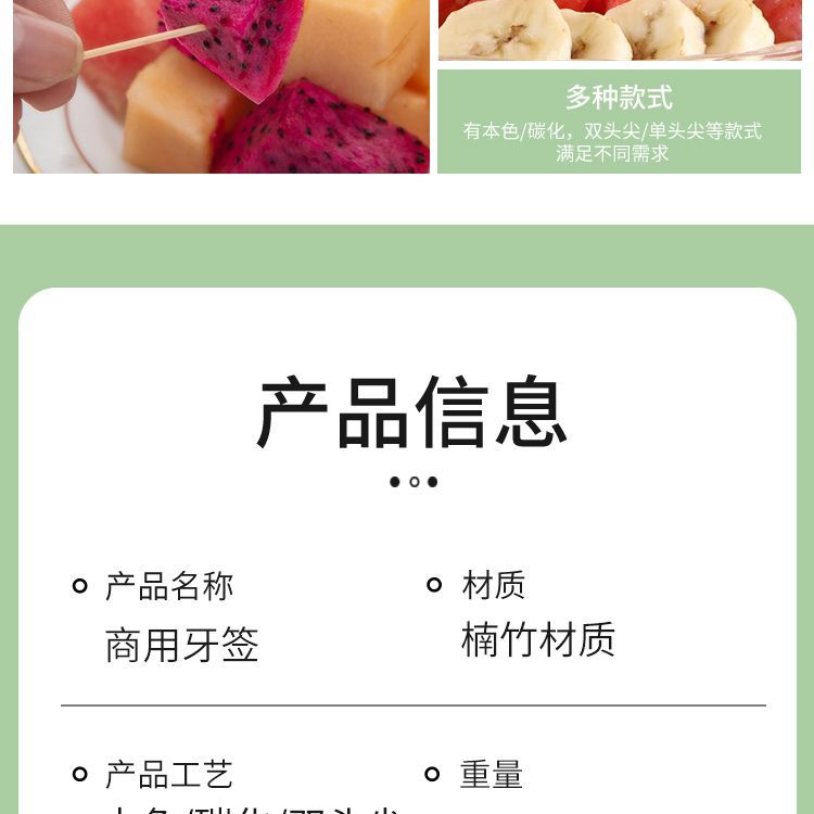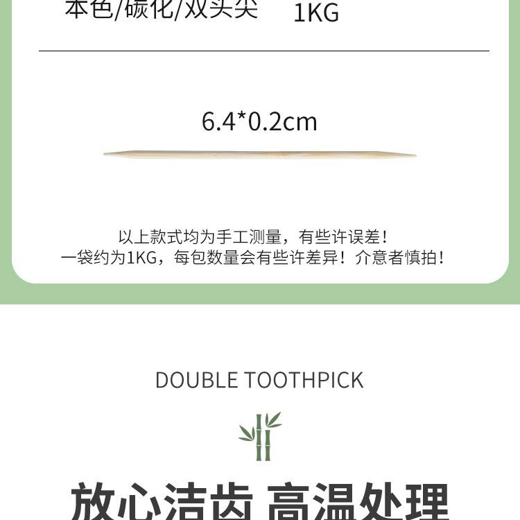 | natural double-headed pointed toothpick 1kg about 10000 pieces(本色双头尖牙签1kg约10000支) | USD $3.5 | 999999 piece available |