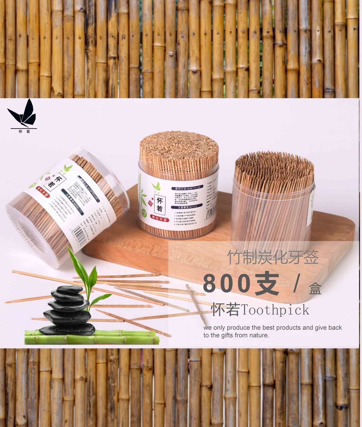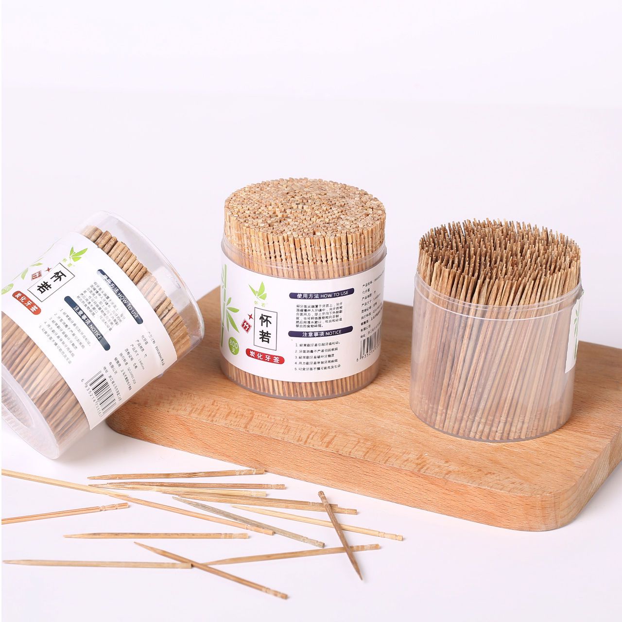 高档竹制炭化牙签单头盒装新款家用饭店水果牙签筒一次性牙签线