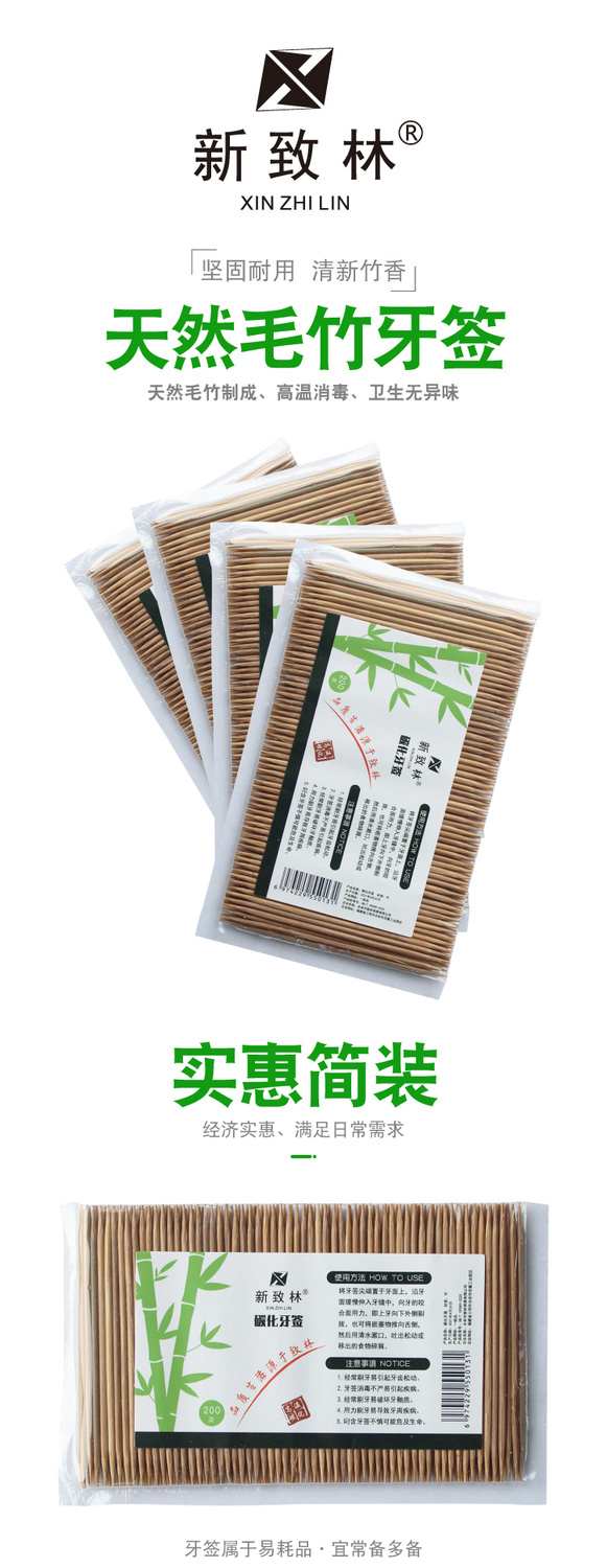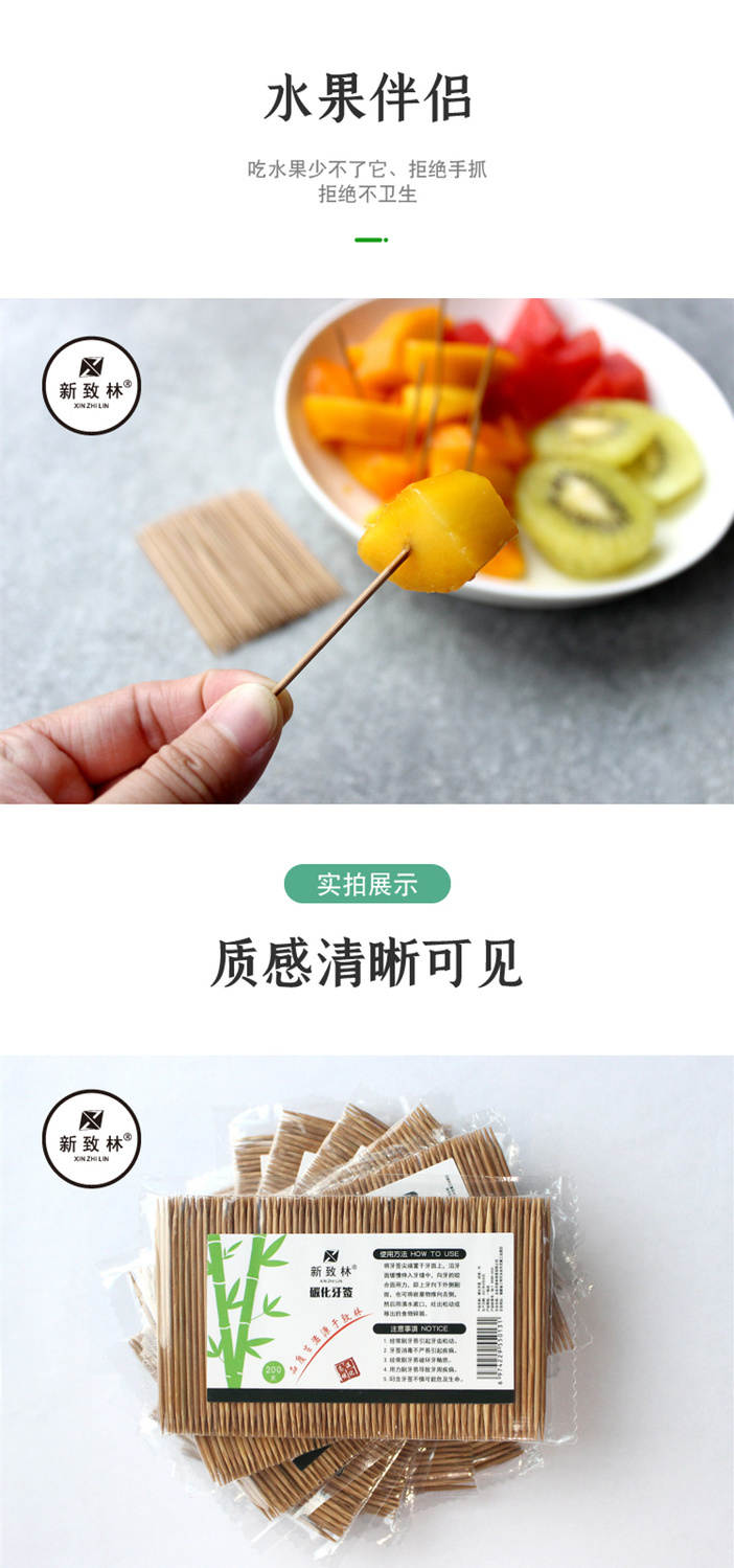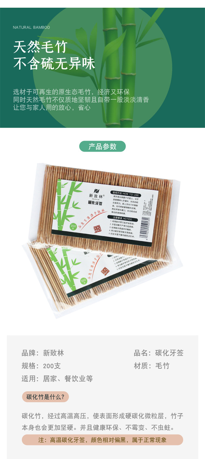 碳化双头尖竹牙签190支坚韧光滑无毛刺高档酒店商用家用支持定制