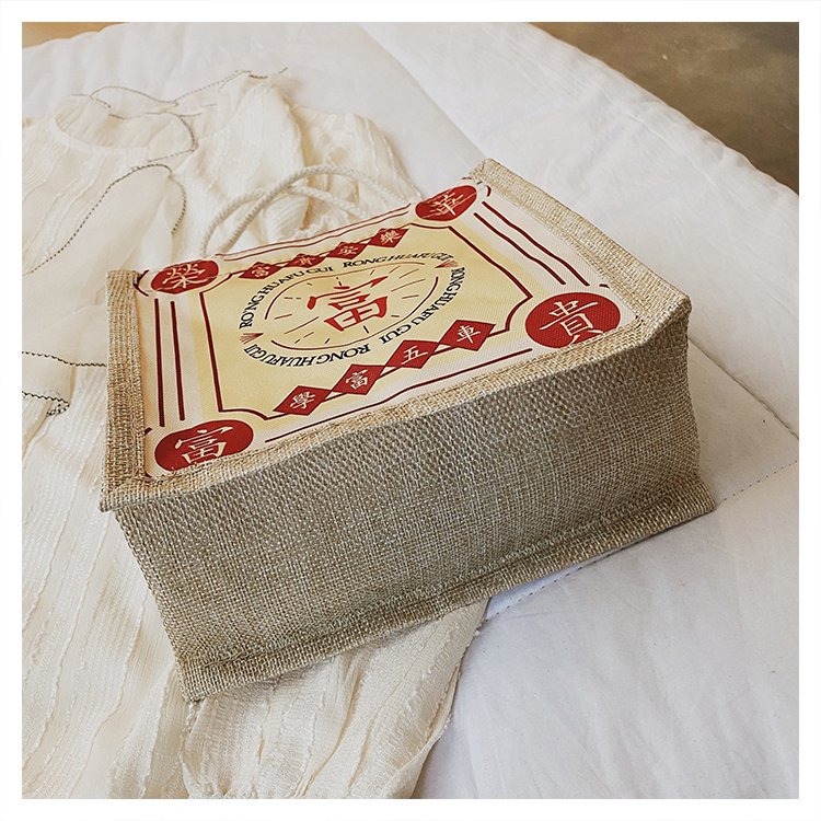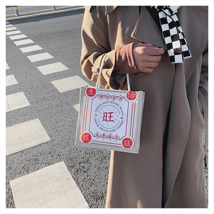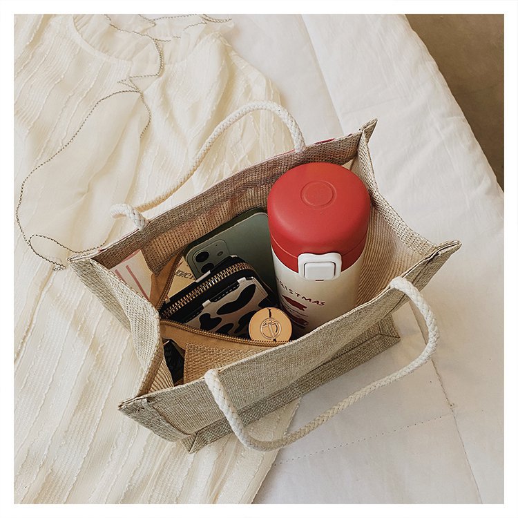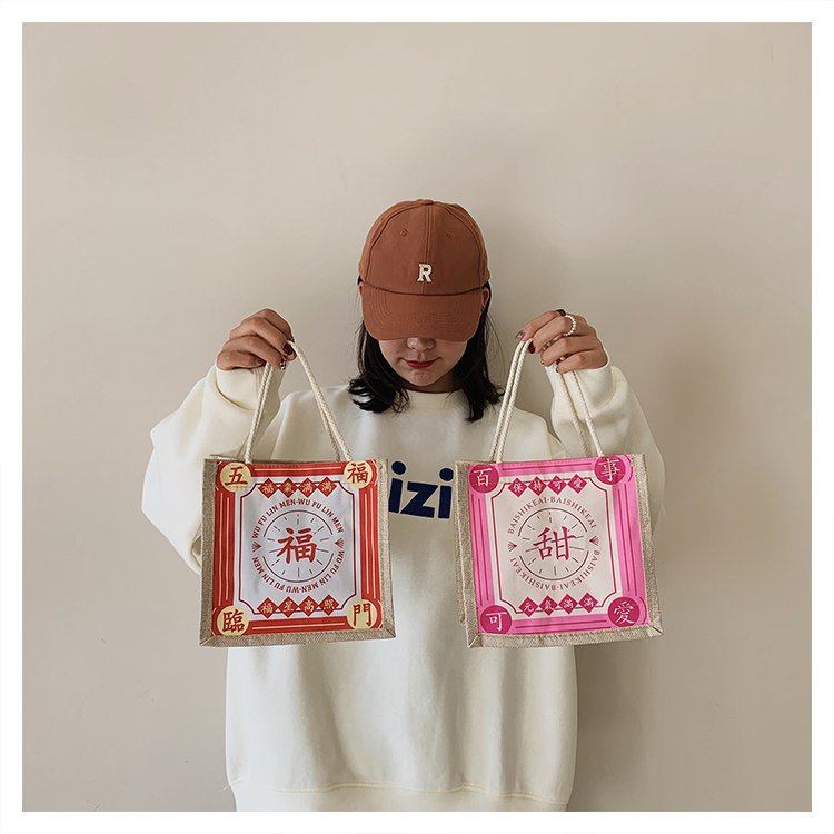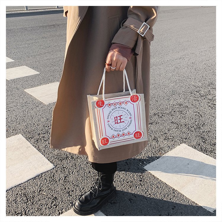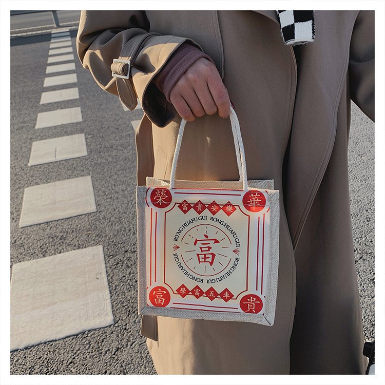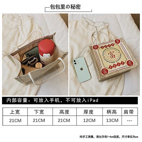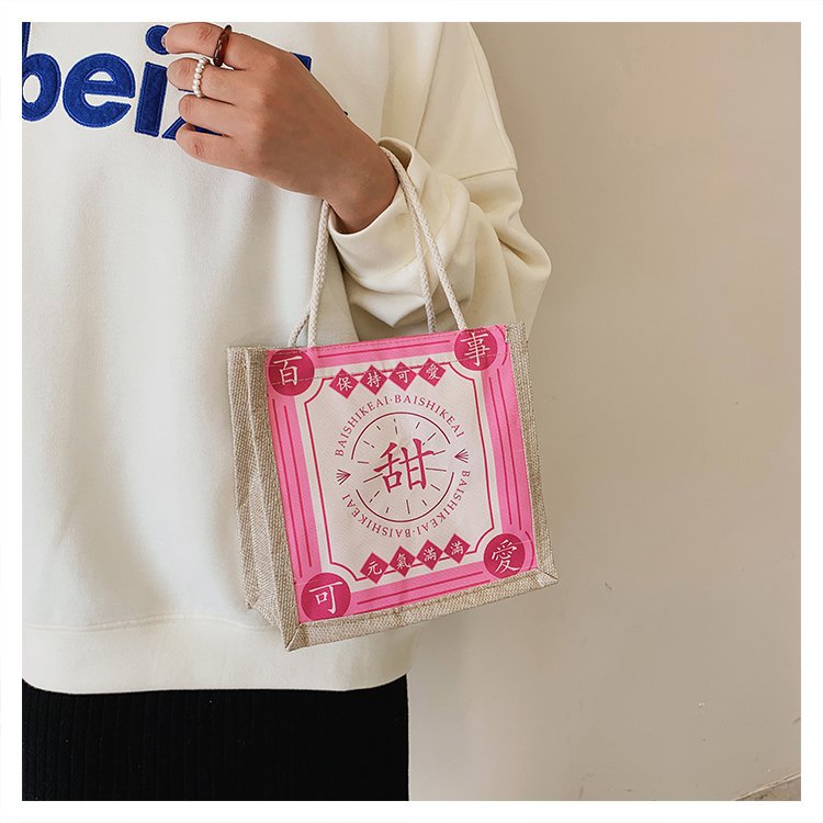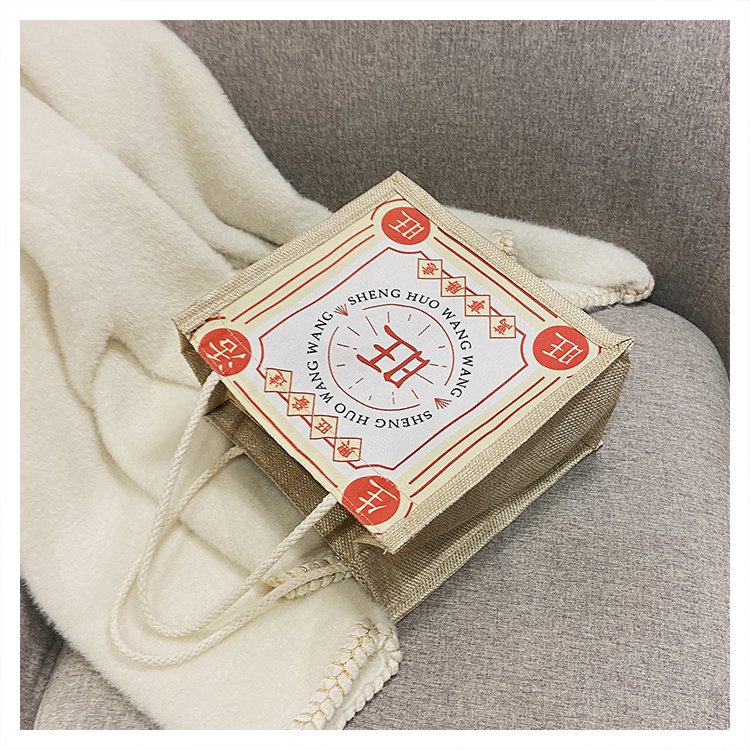 迷你简约麻布包日韩女手提包潮流卡通文艺手拎零食袋小饭盒便当包