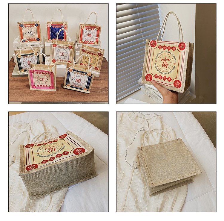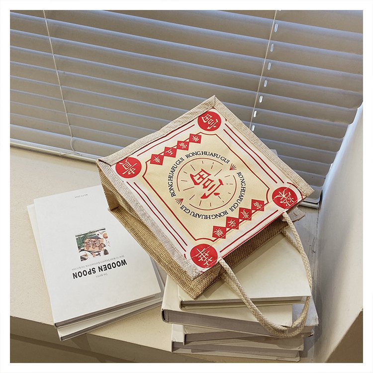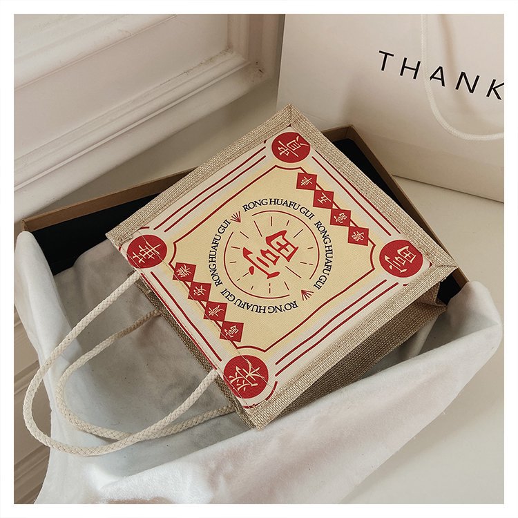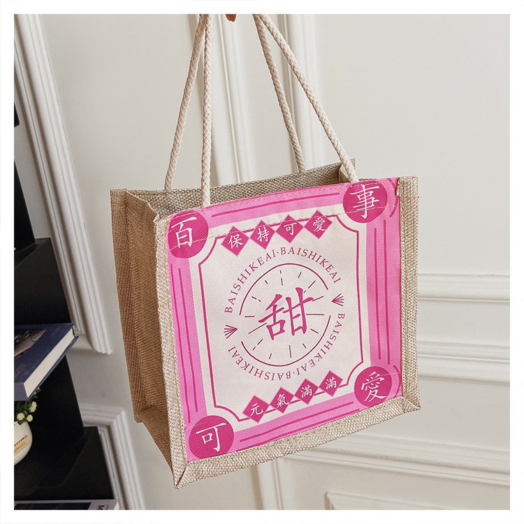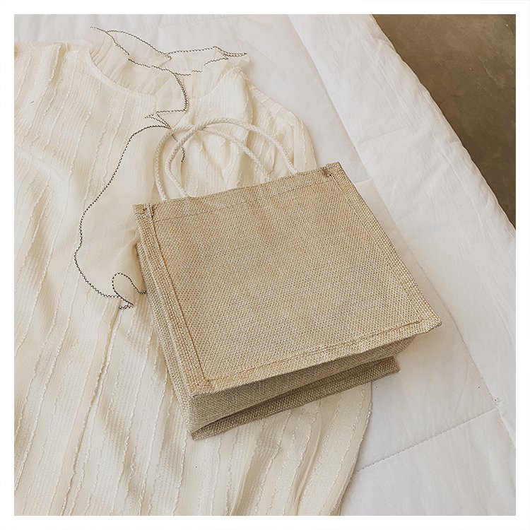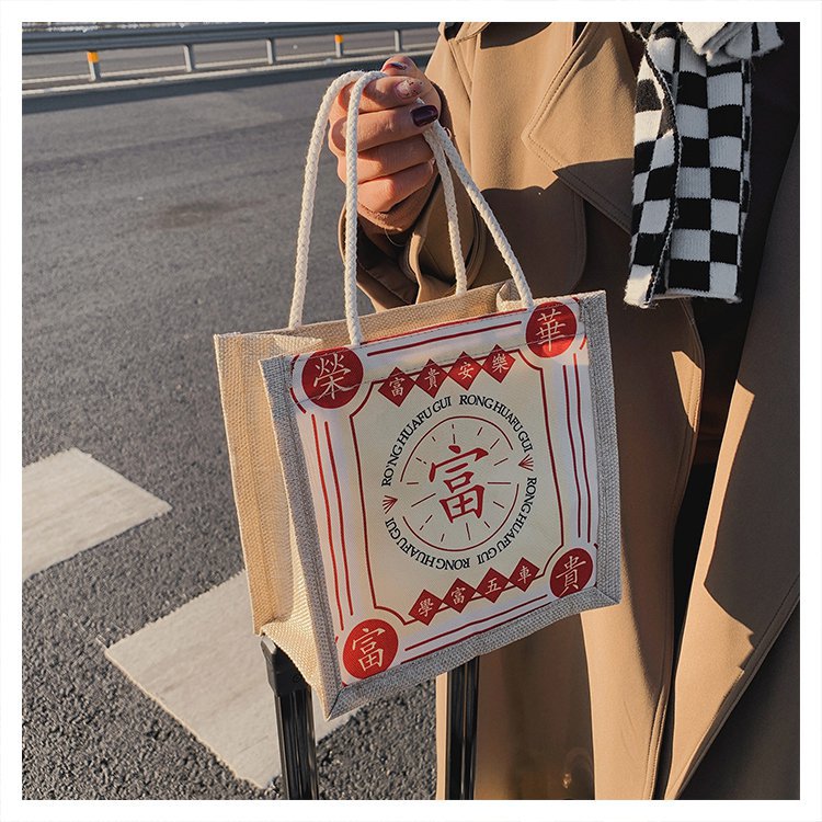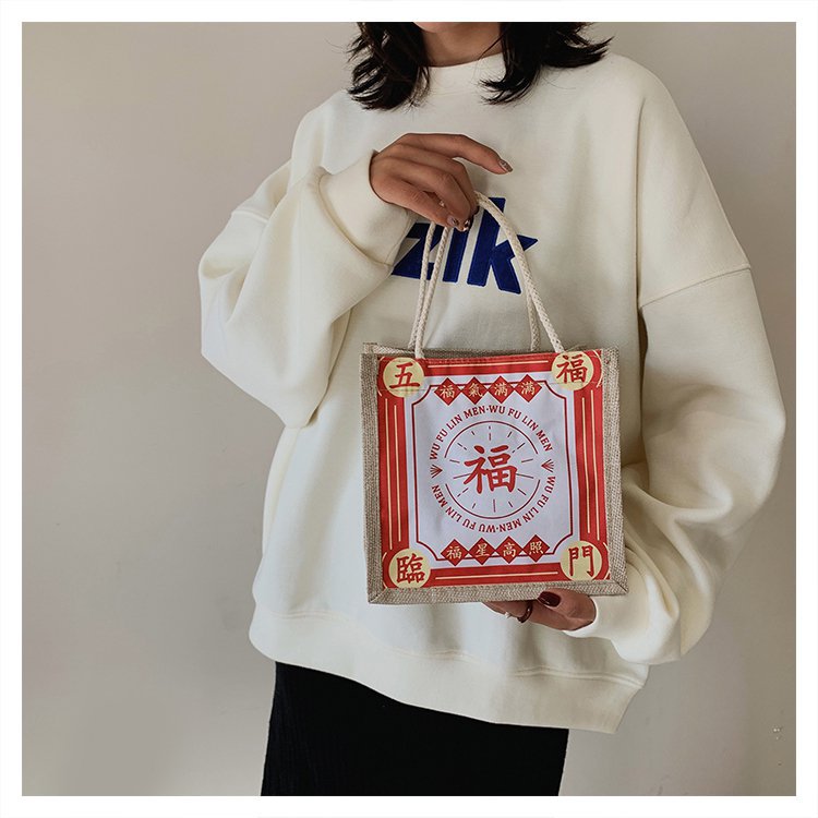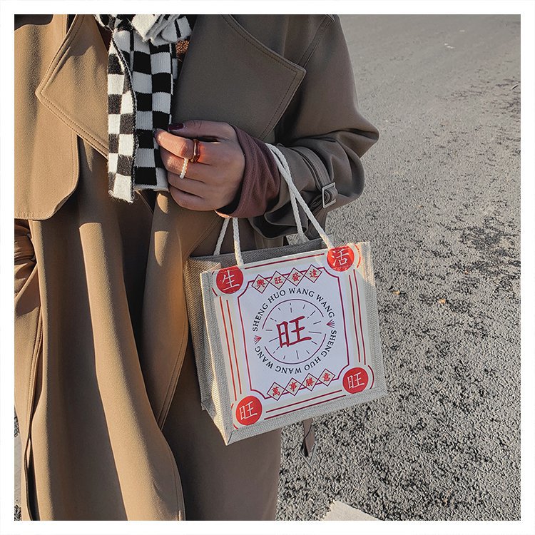 迷你简约麻布包日韩女手提包潮流卡通文艺手拎零食袋小饭盒便当包