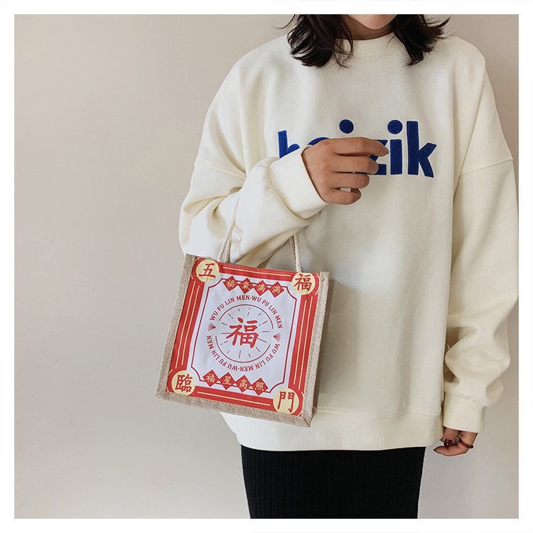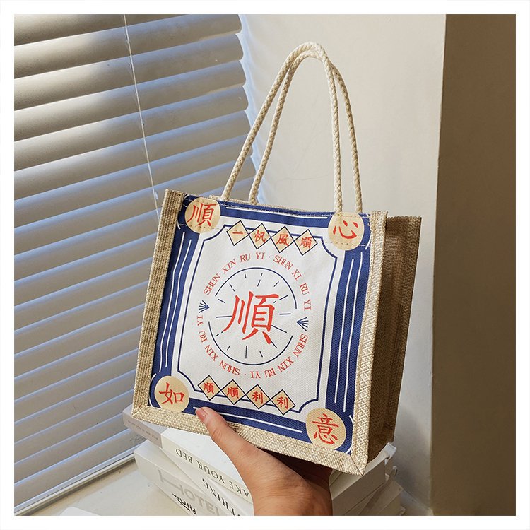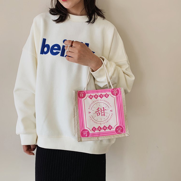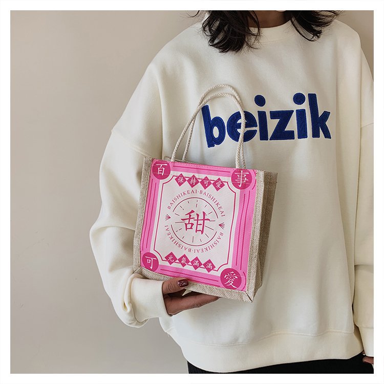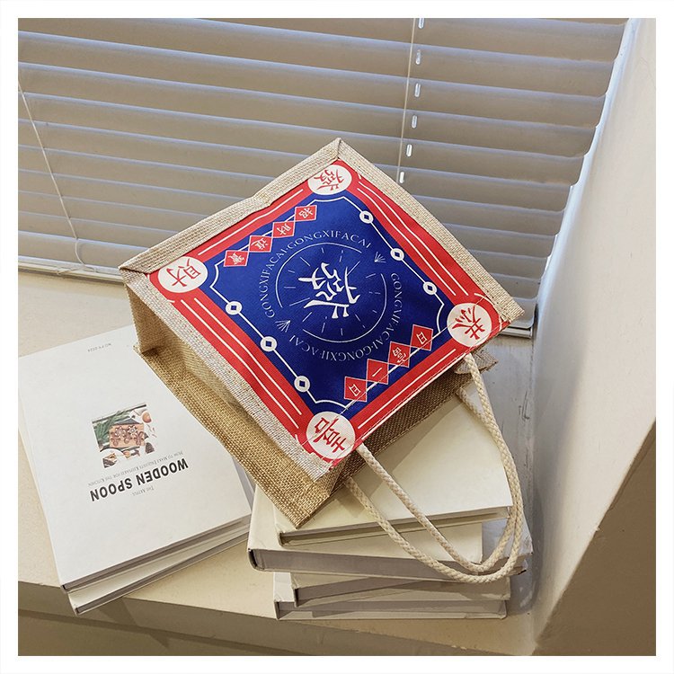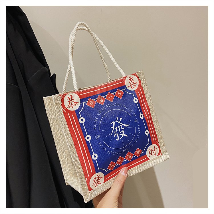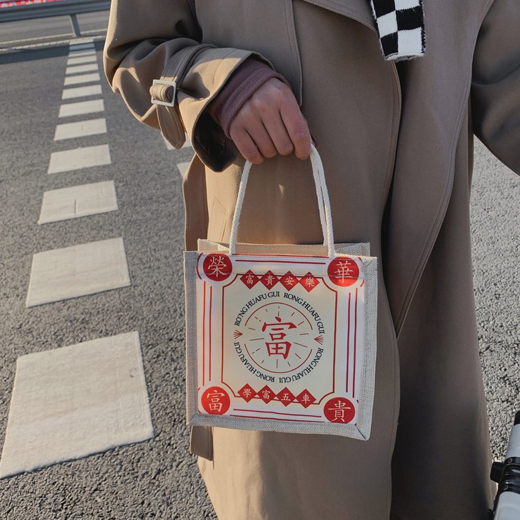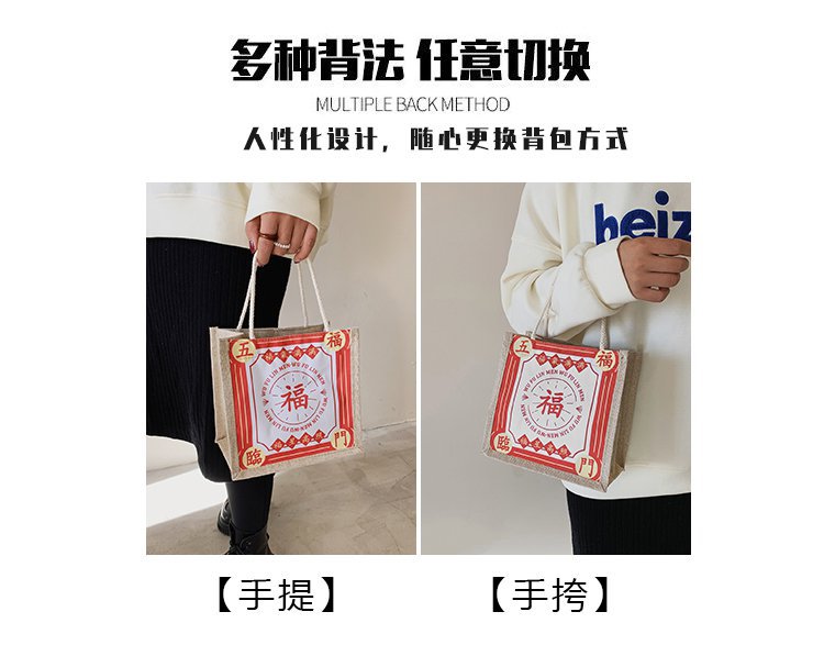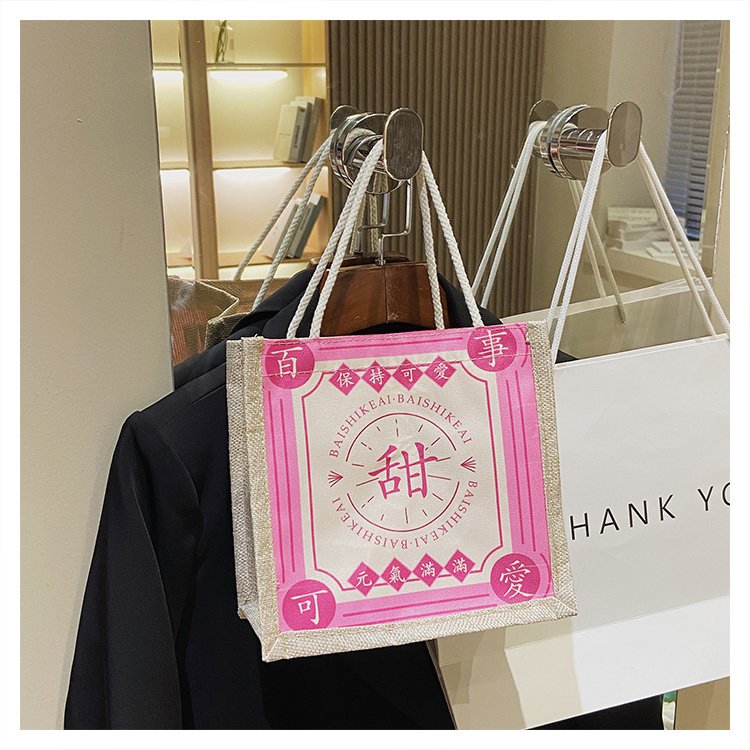 迷你简约麻布包日韩女手提包潮流卡通文艺手拎零食袋小饭盒便当包