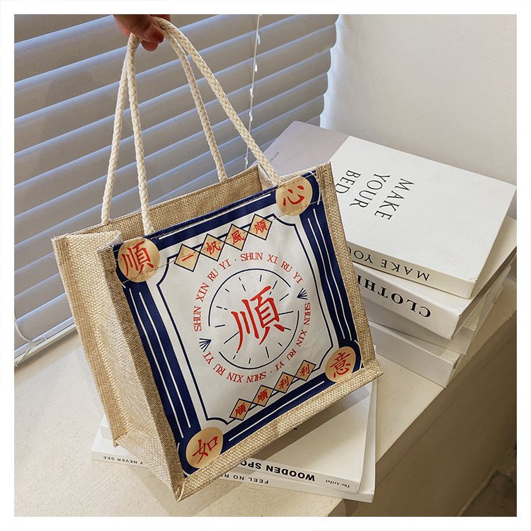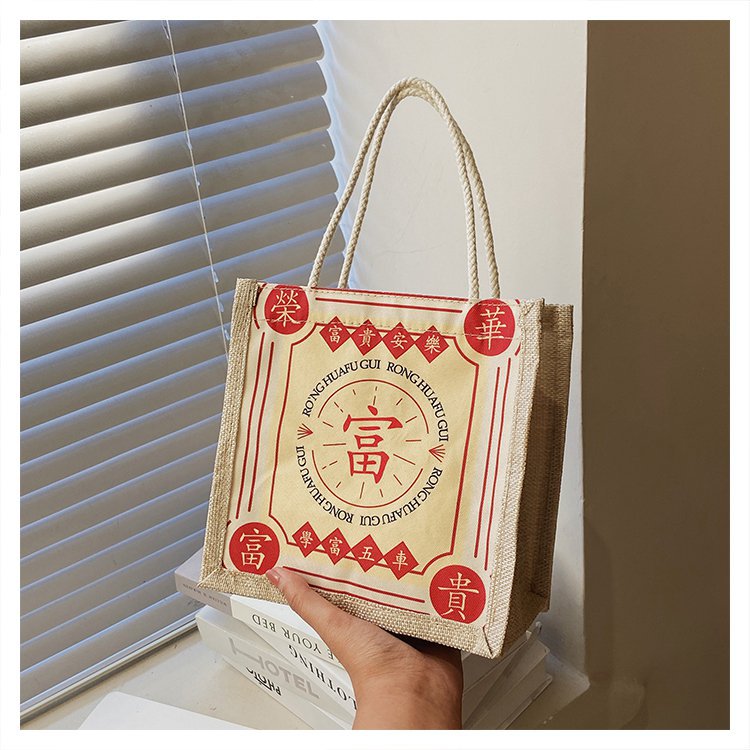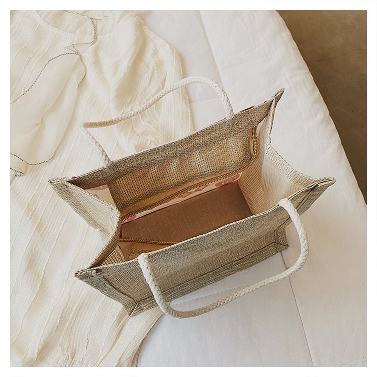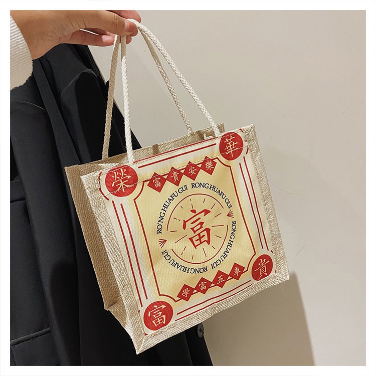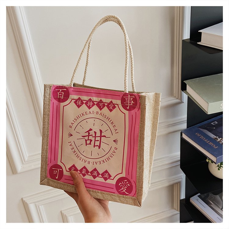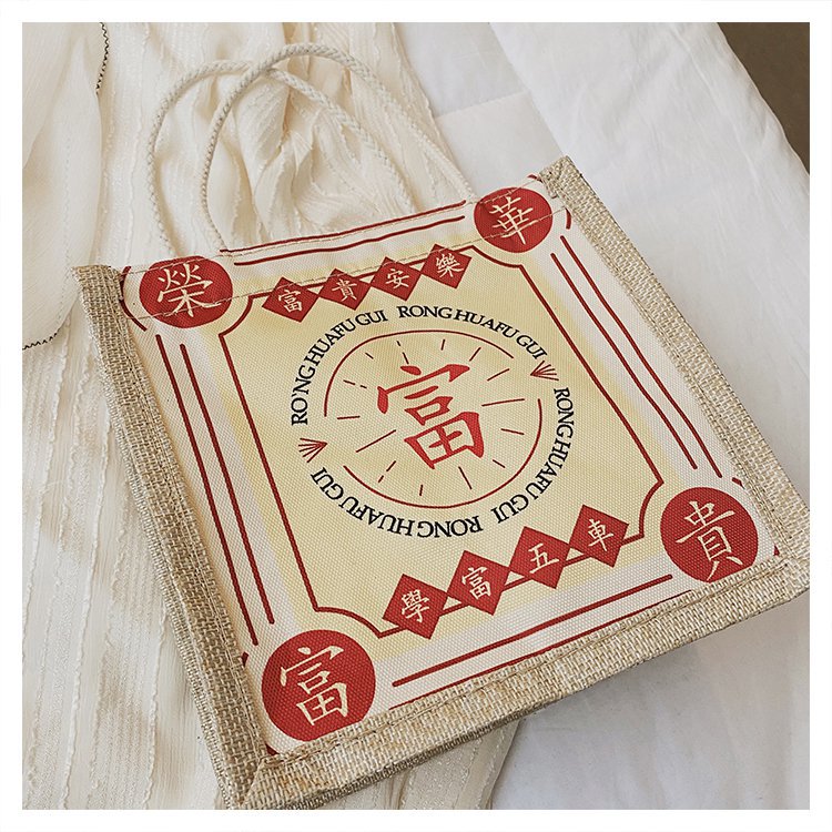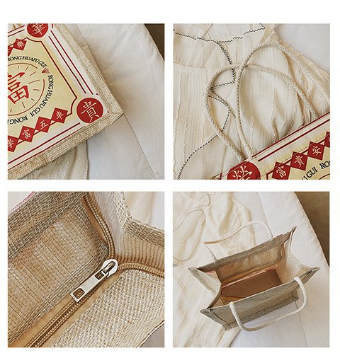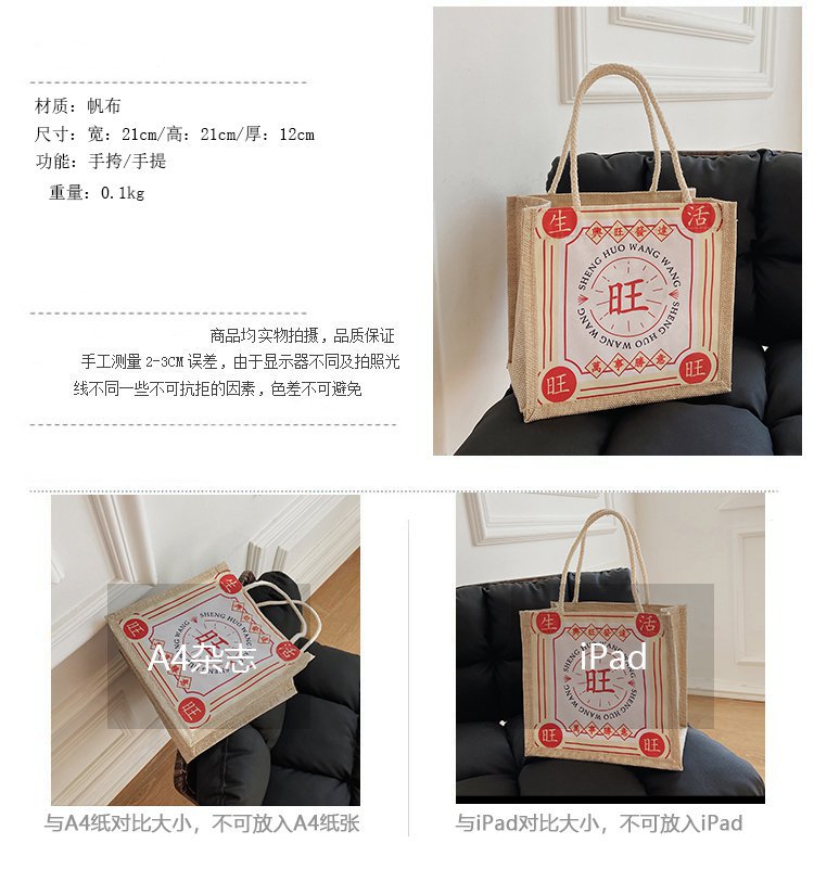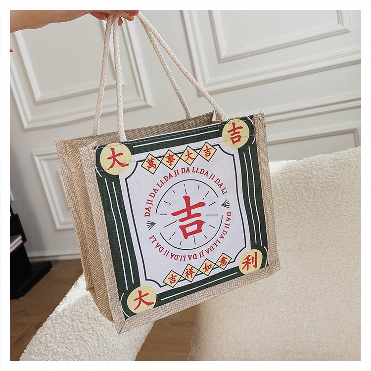迷你简约麻布包日韩女手提包潮流卡通文艺手拎零食袋小饭盒便当包