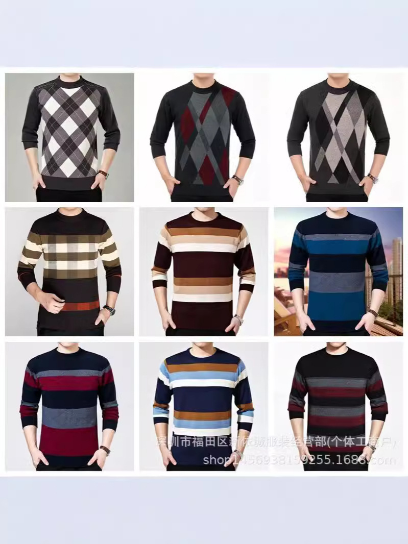 秋冬中老年男装毛衣批发宽松圆领杂款爸爸套头针织打底衫地摊货源