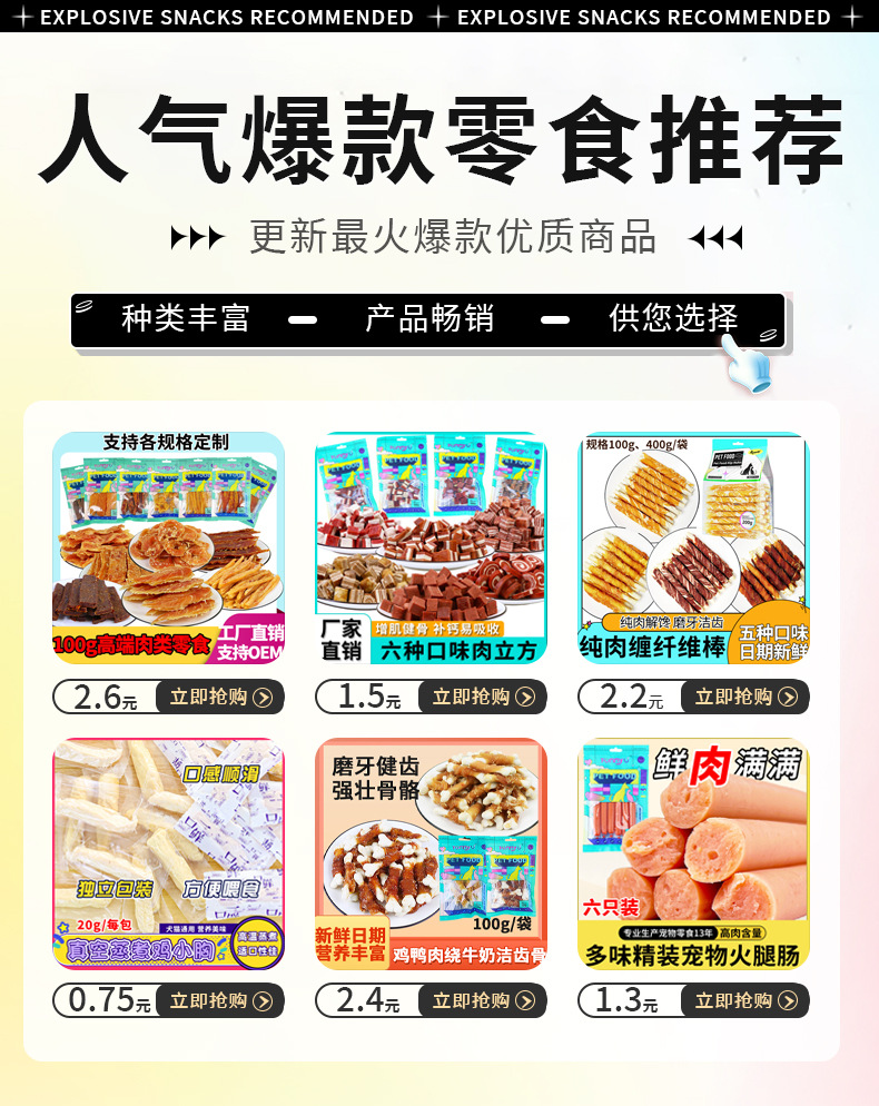 | chicken around nutrition bar(鸡肉绕营养棒) | USD $0.0 | 6703 bag available |