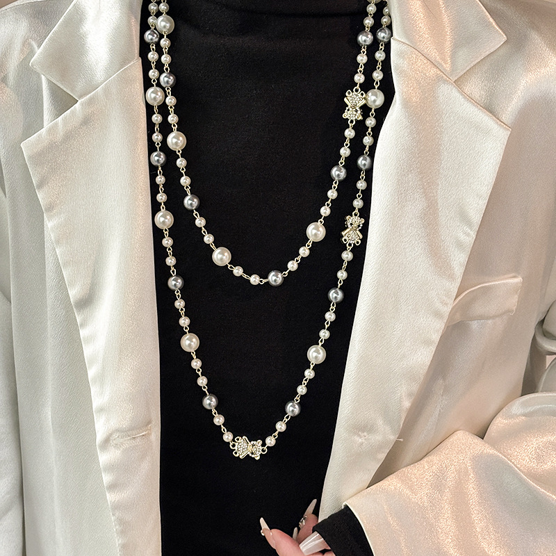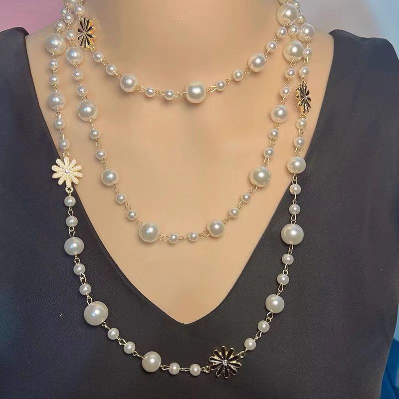 轻奢高级感秋冬长款珍珠项链时尚百搭毛衣链多层项链合金饰品配饰