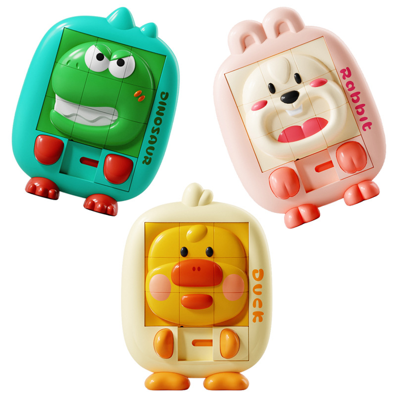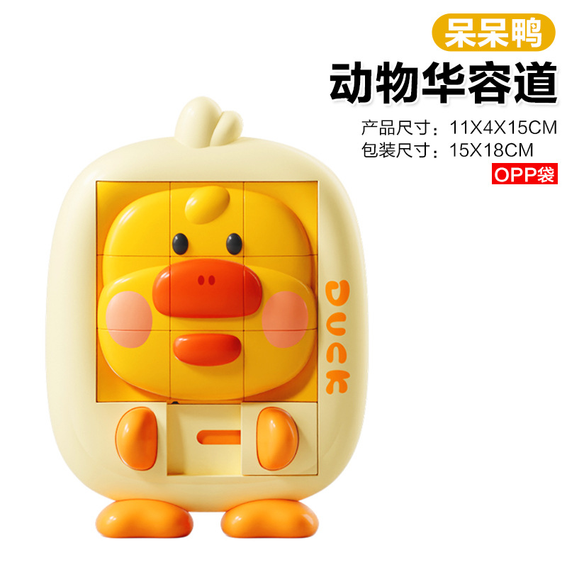 卡通动物华容道儿童益智立体拼图滑动恐龙小黄鸭启蒙 拼图玩具