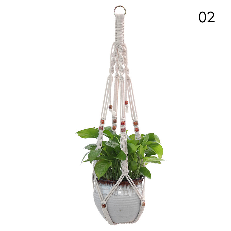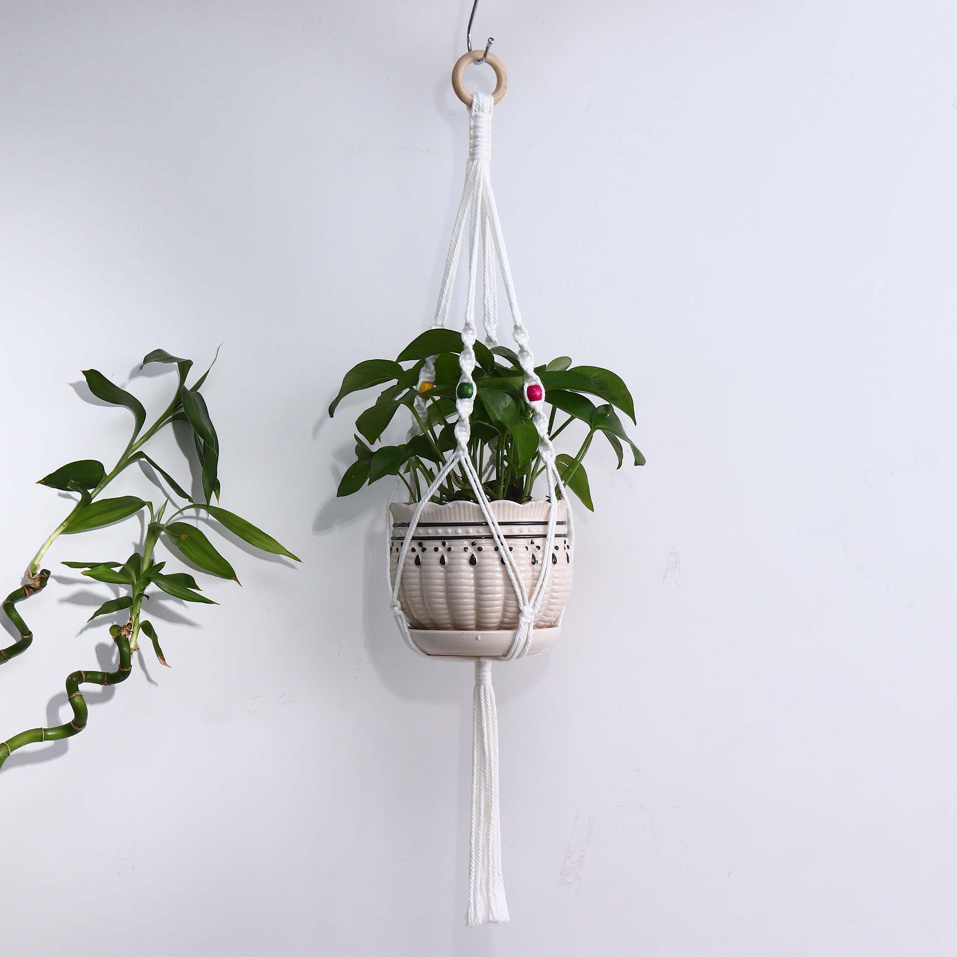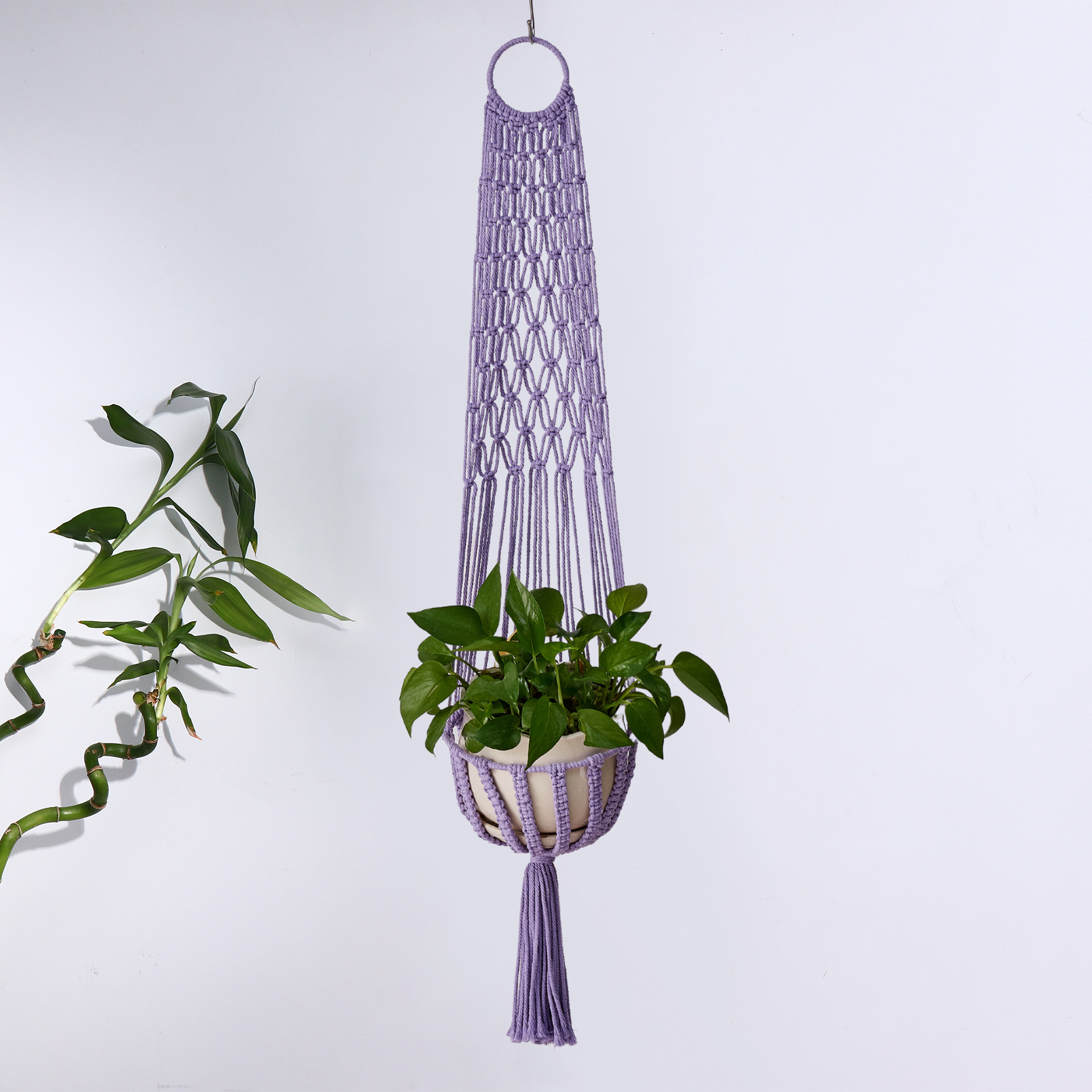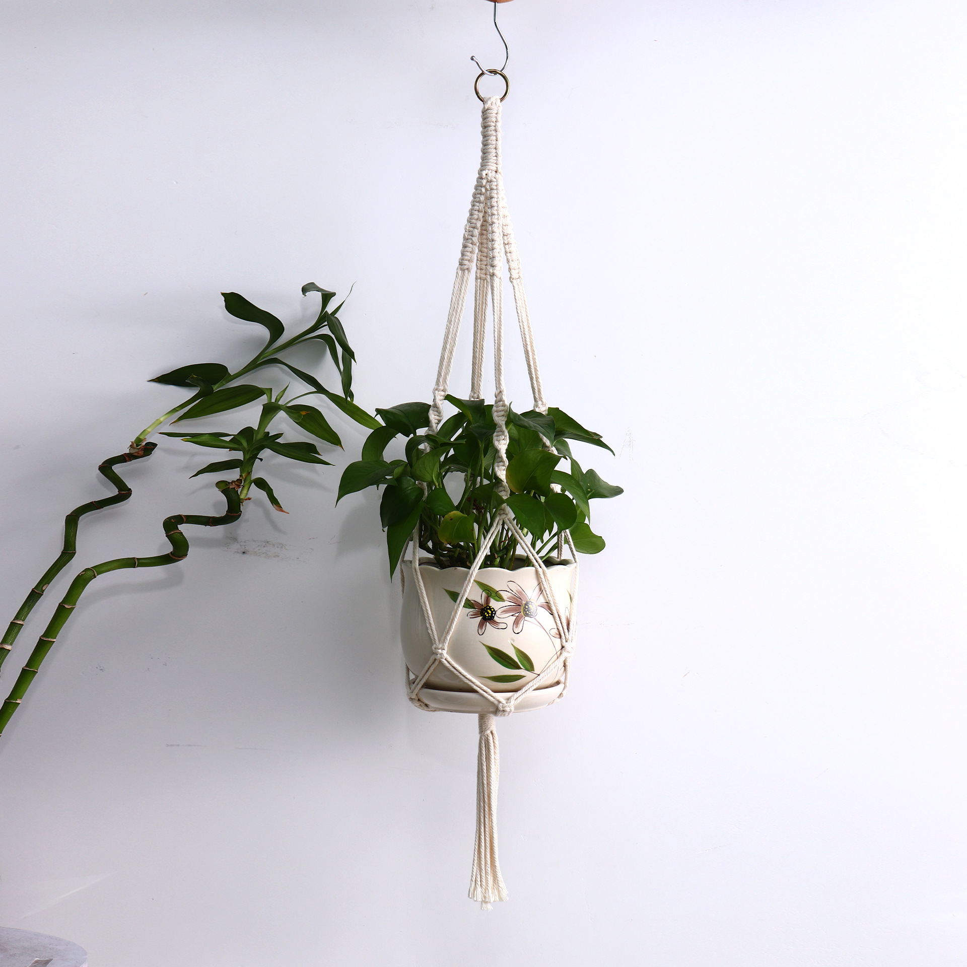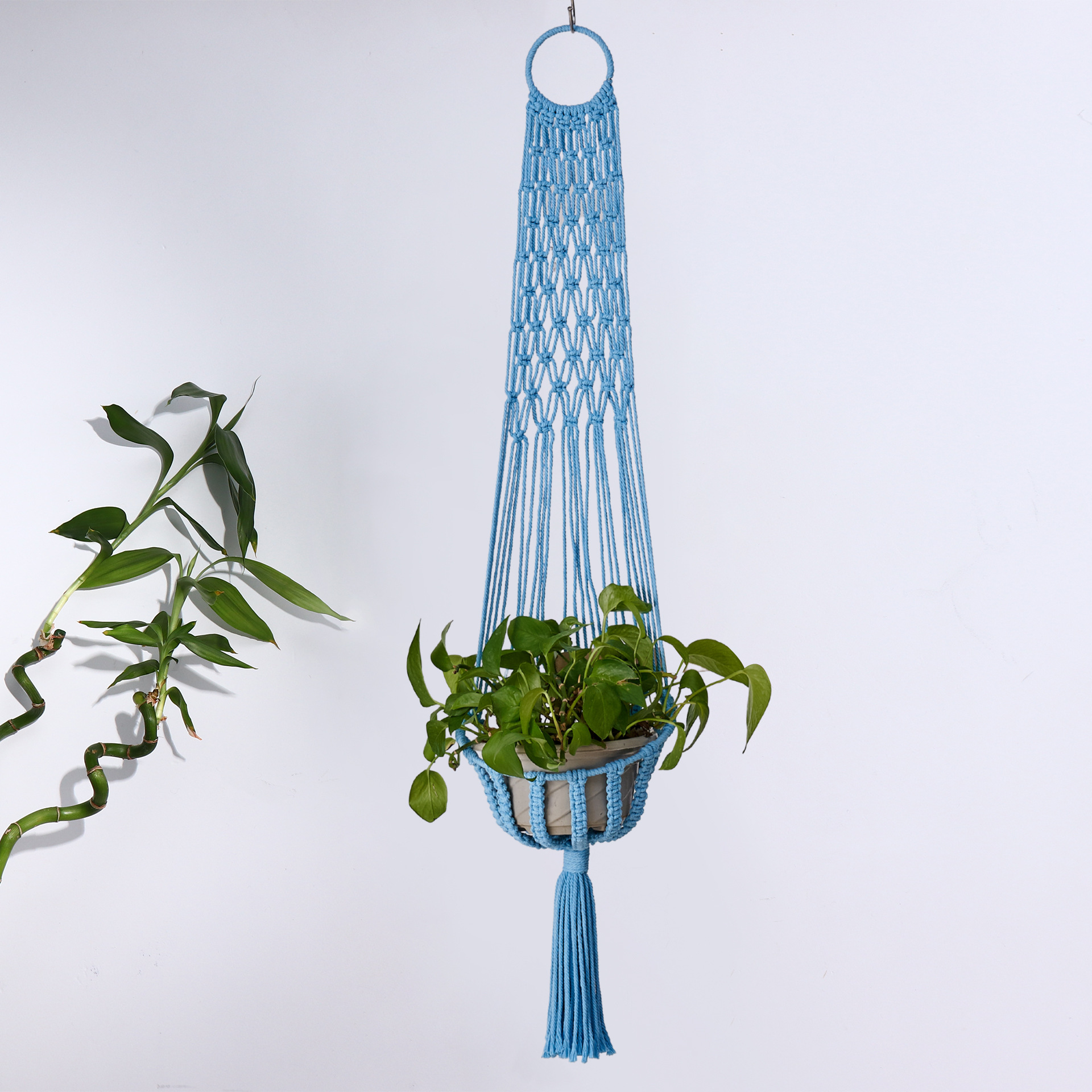 手工悬挂式植物支架篮架装饰花盆架波西米亚棉绳流苏吊篮花盆网兜