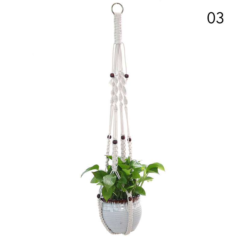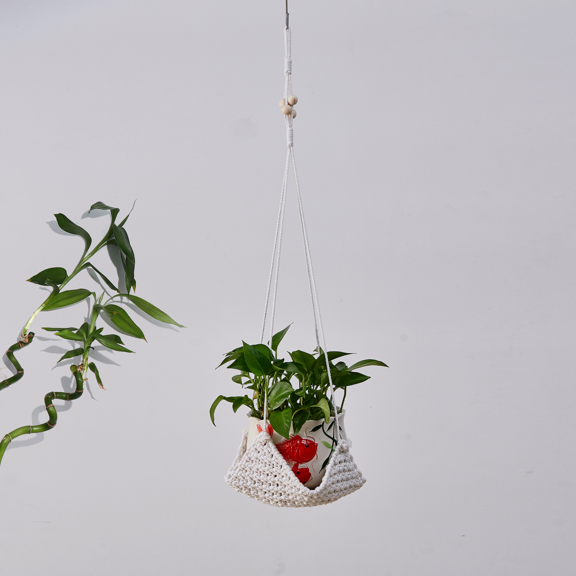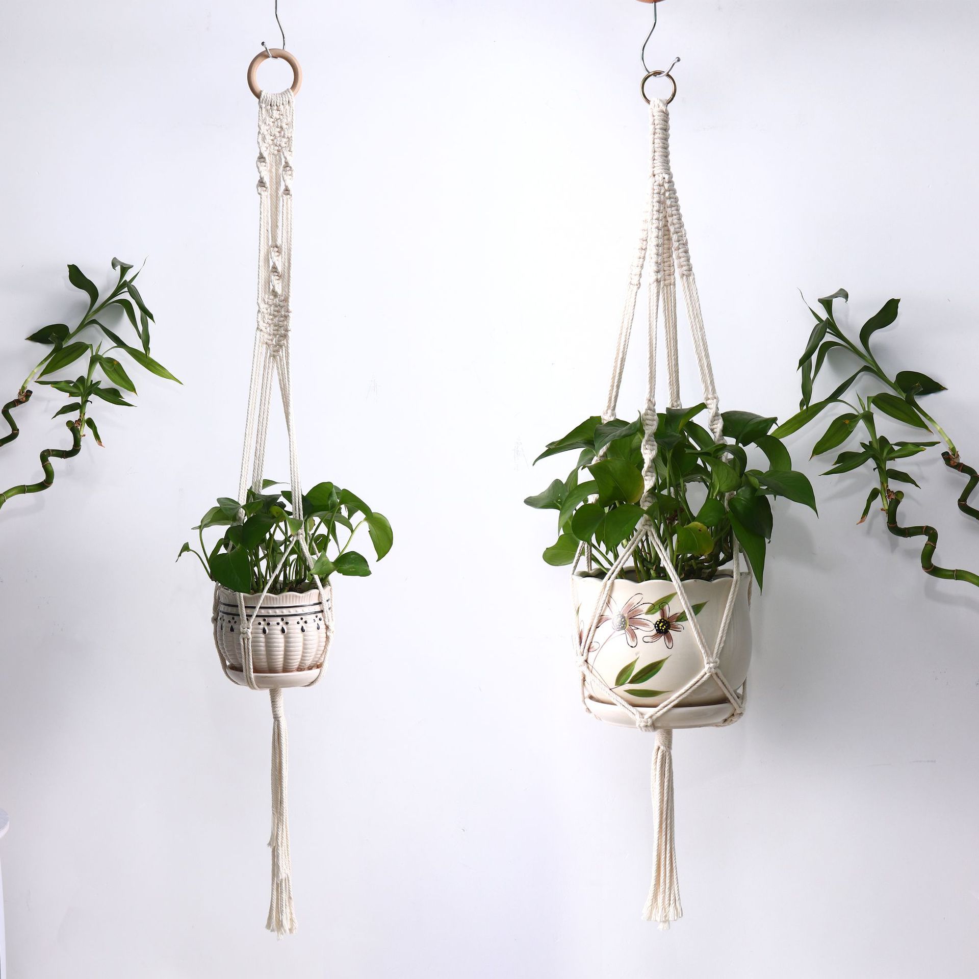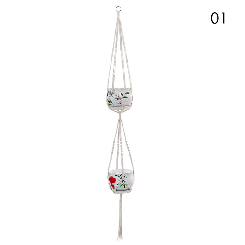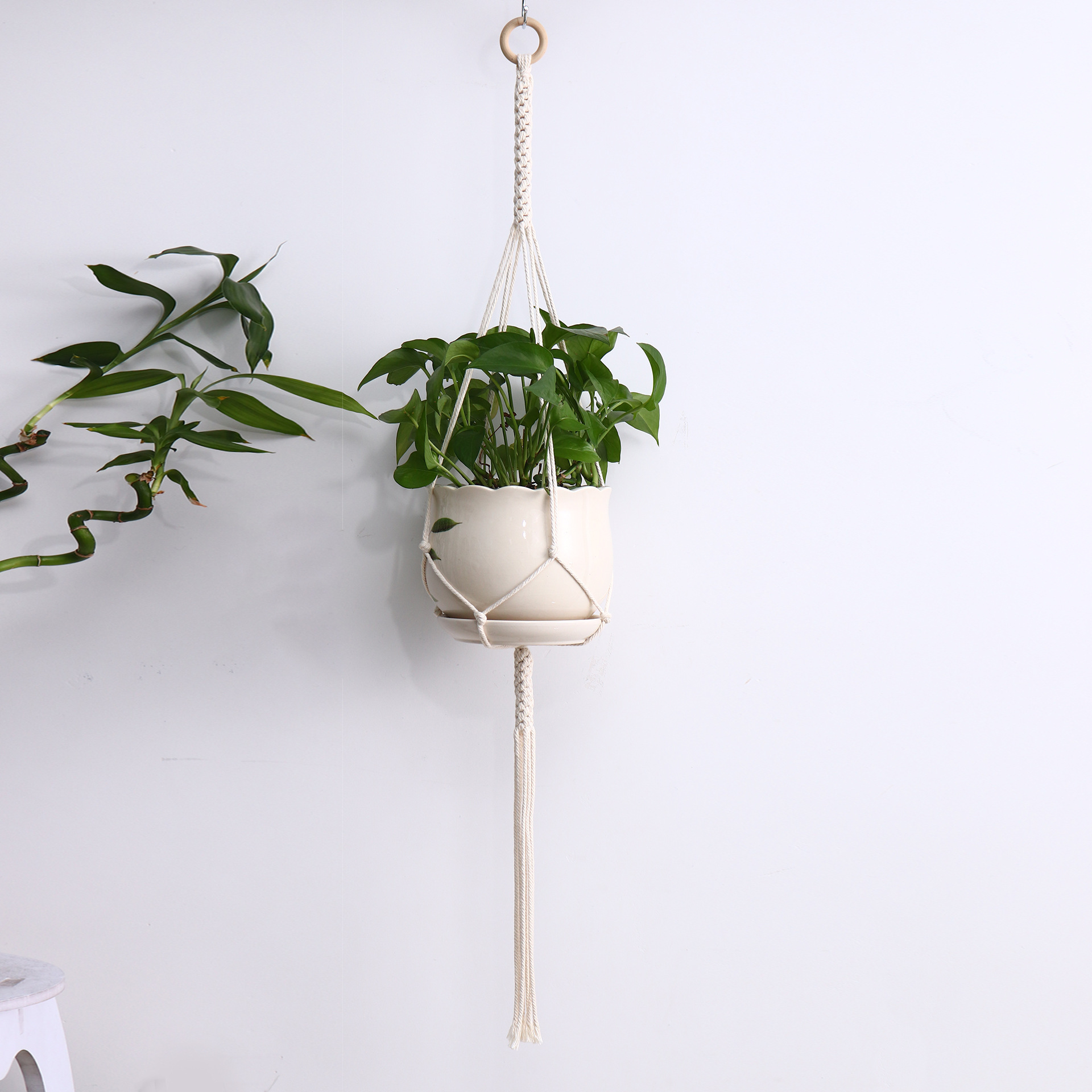 手工悬挂式植物支架篮架装饰花盆架波西米亚棉绳流苏吊篮花盆网兜