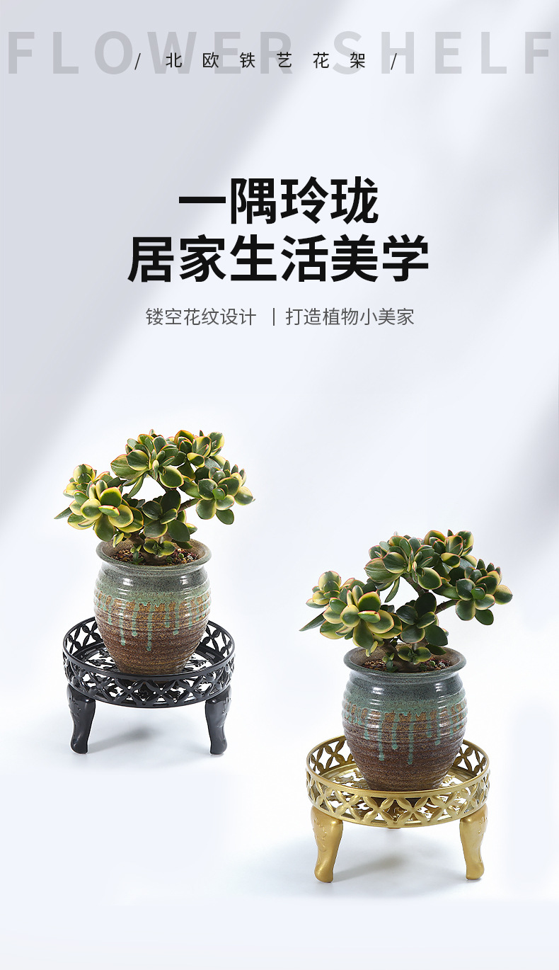 跨境直供新款高低层铁艺花盆置物架绿萝多肉盆栽架客厅阳台落地式