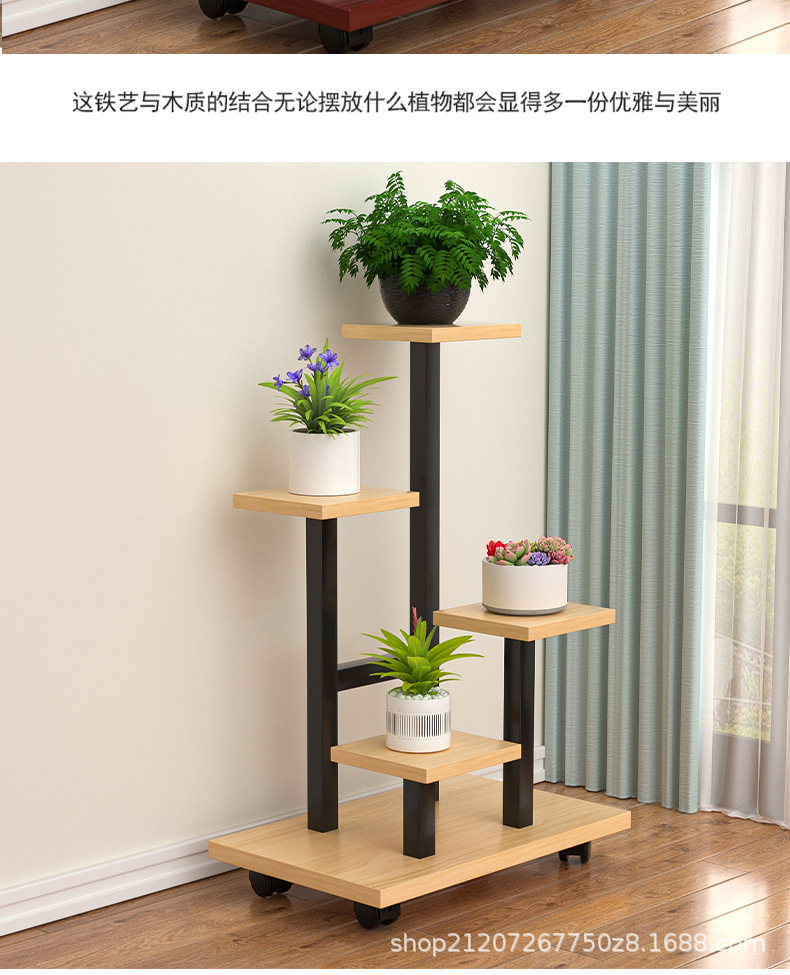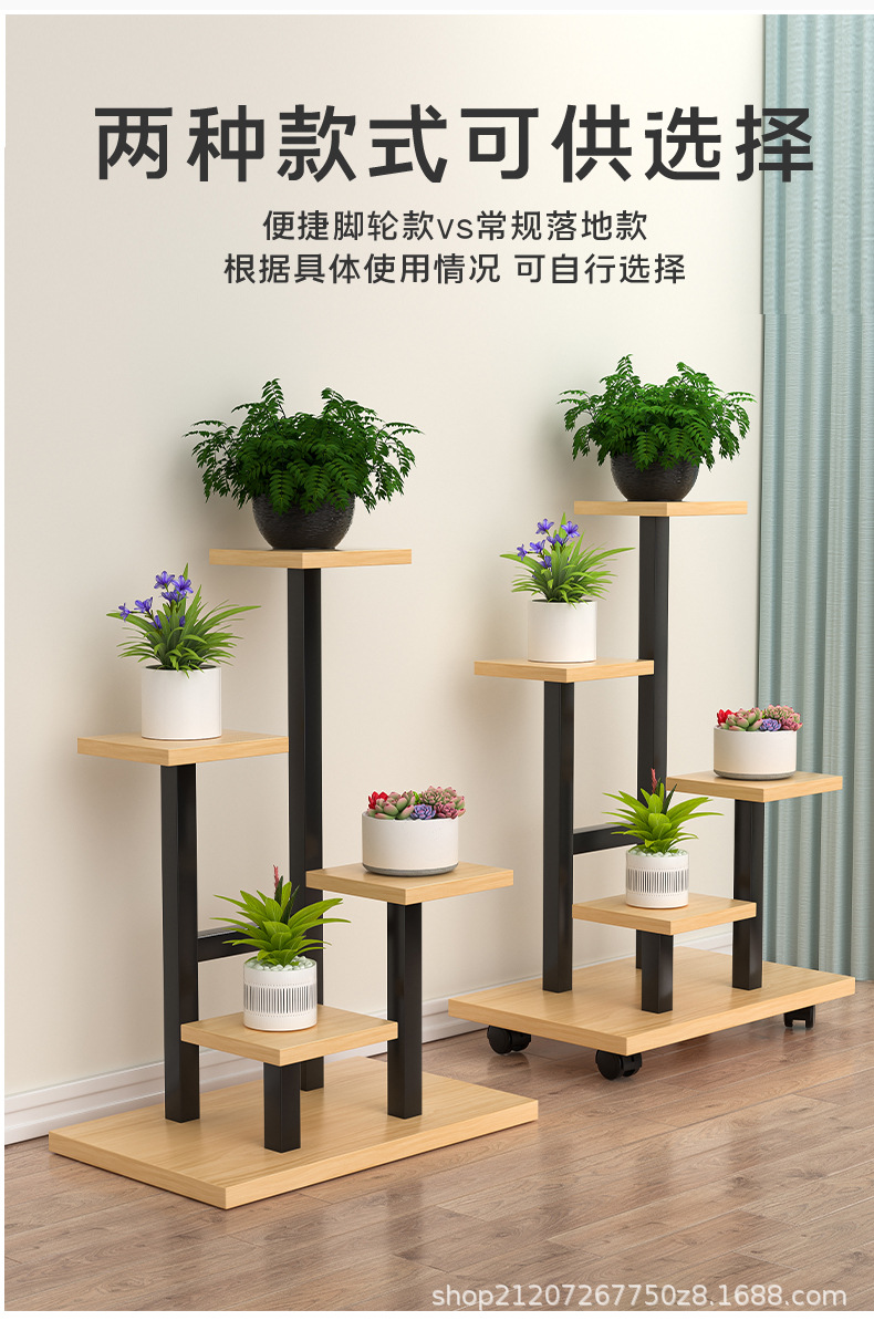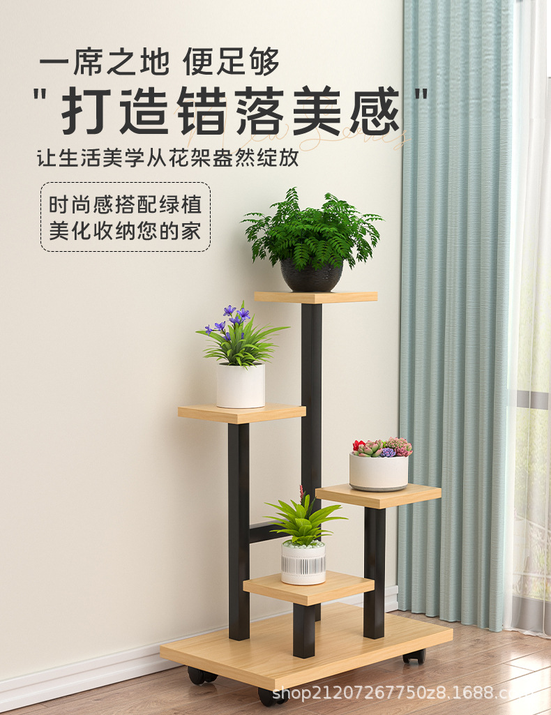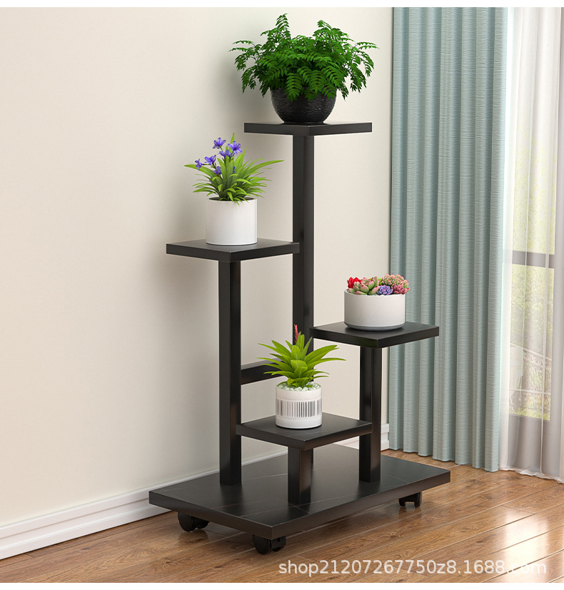 铁艺花架子带轮可移动新款家用客厅阳台落地花盆架多层养花置物架