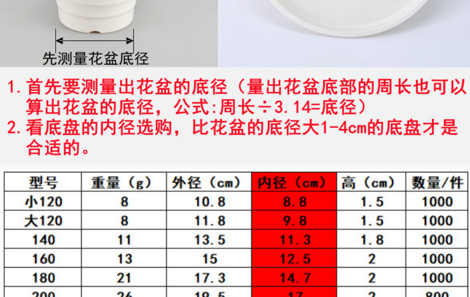 批发塑料花盆托底盘圆行白色花盆底托架接水盘花盆底座盆垫托盘