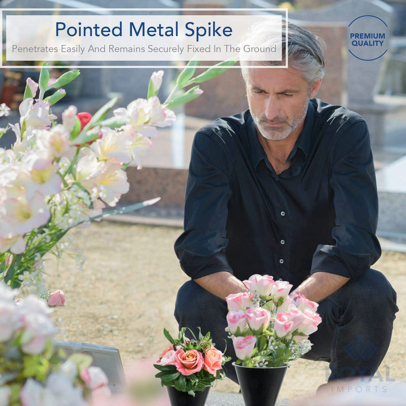 PP锥形花瓶牢固祭祀扫墓塑料花盆墓地圆锥花架带金属地面钉