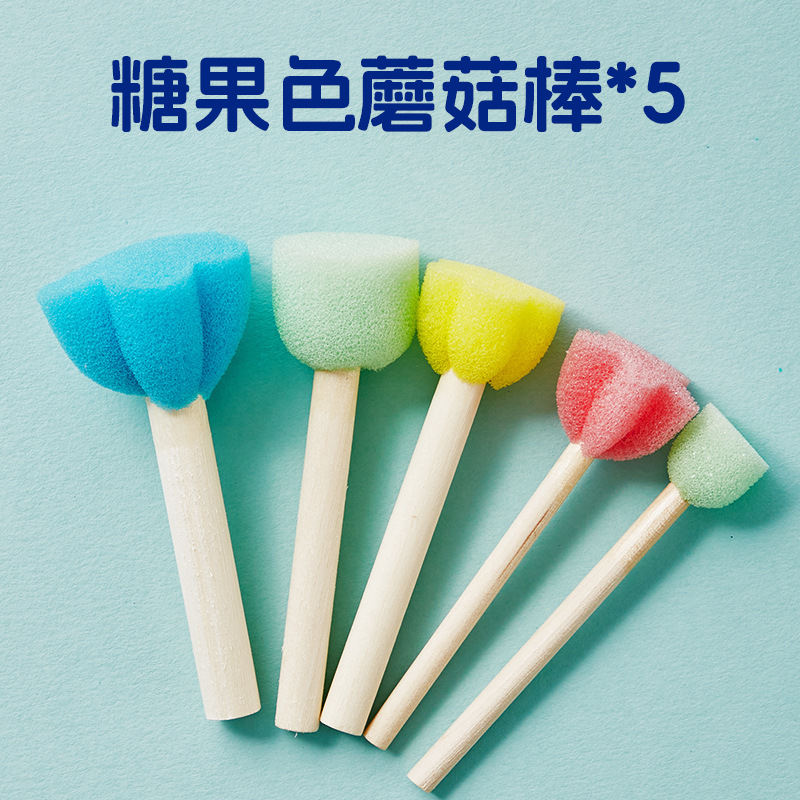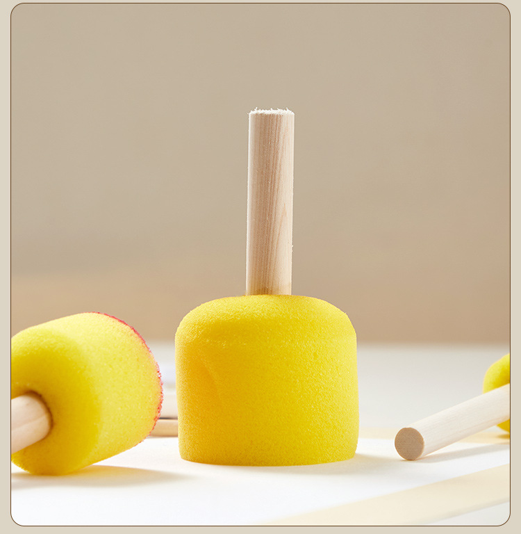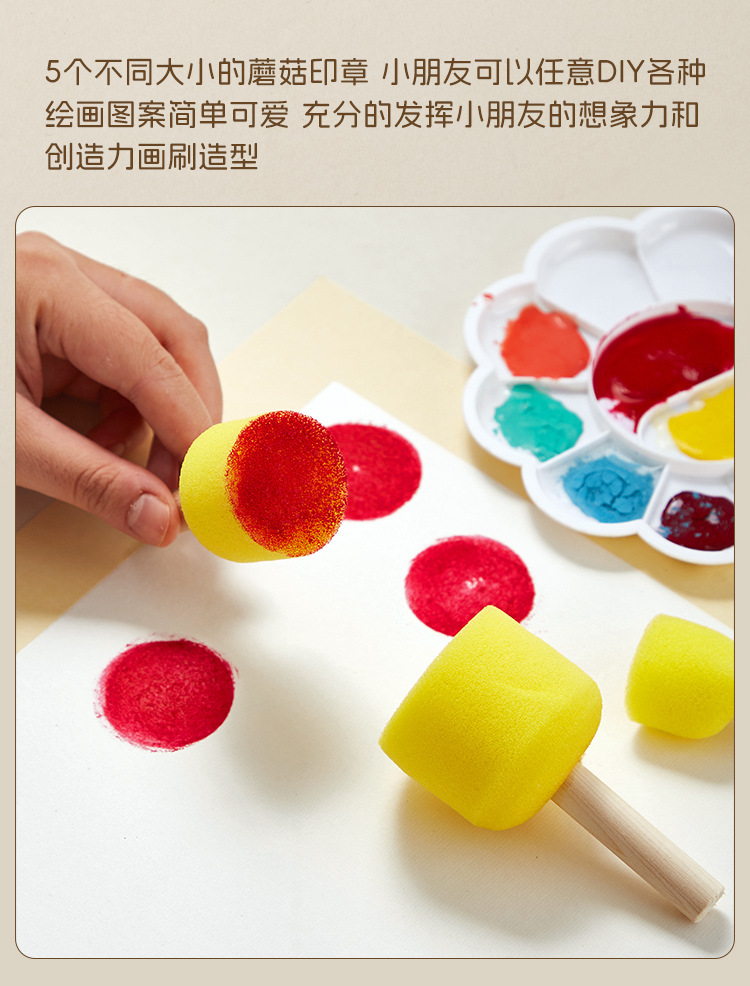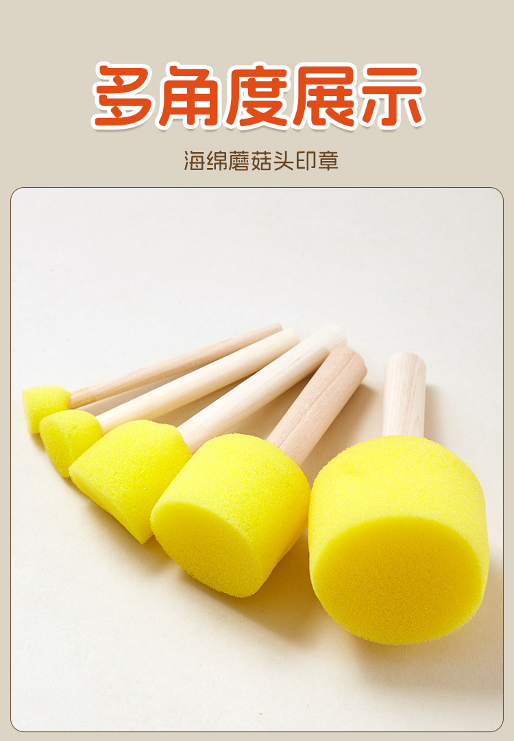 厂家批发木柄蘑菇头海绵刷儿童diy绘画海绵印章 颜料涂鸦美术刷