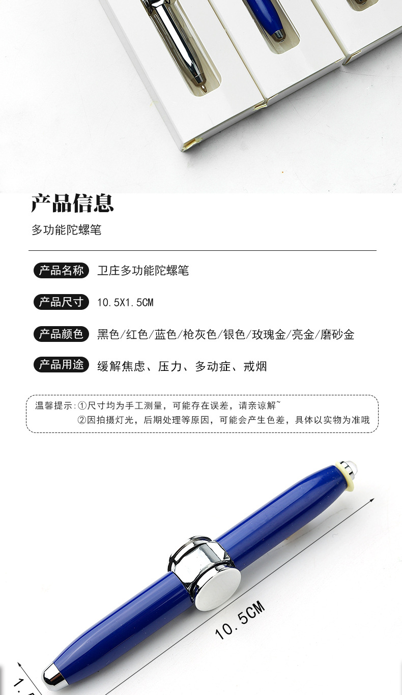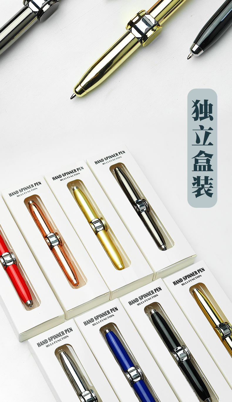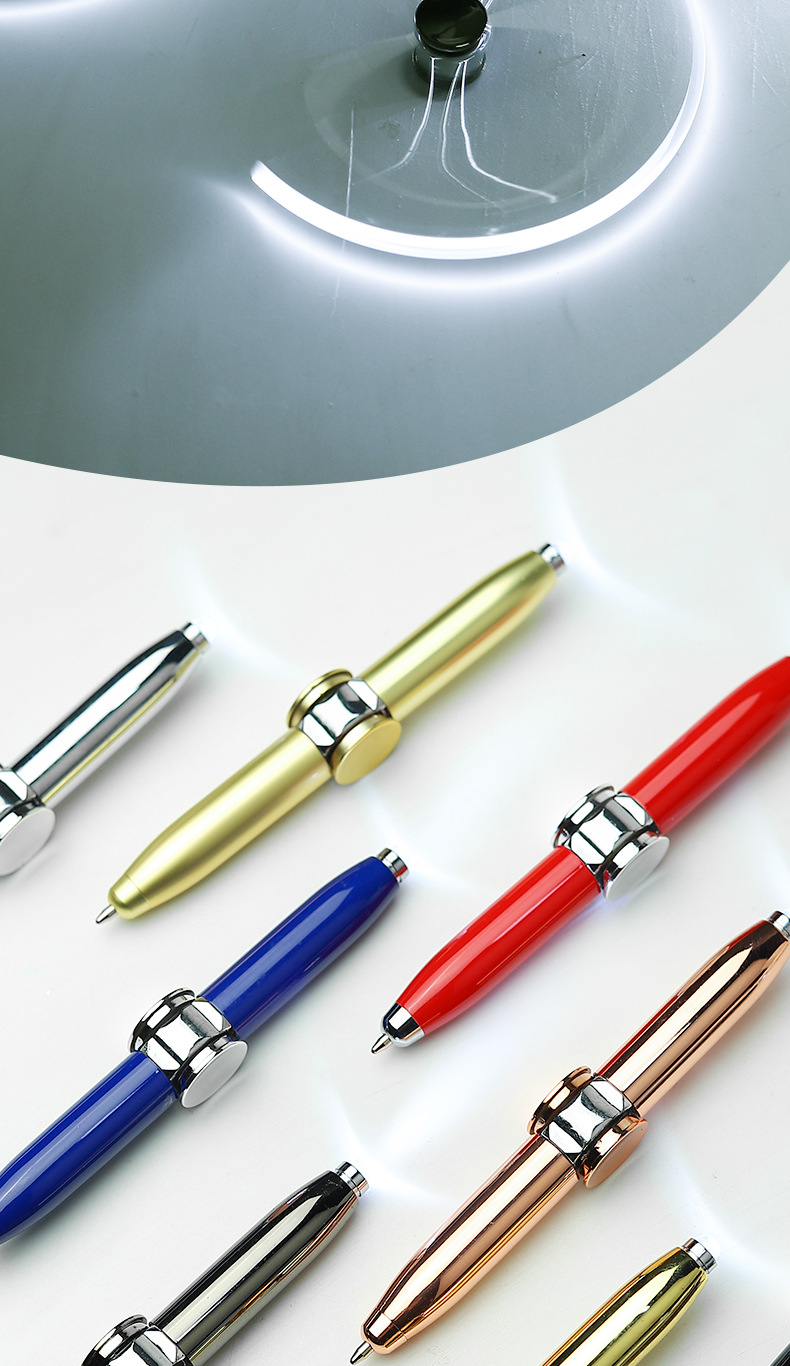 批发指尖陀螺笔发光带灯旋转手指减压创意金属多功能转动转转解压