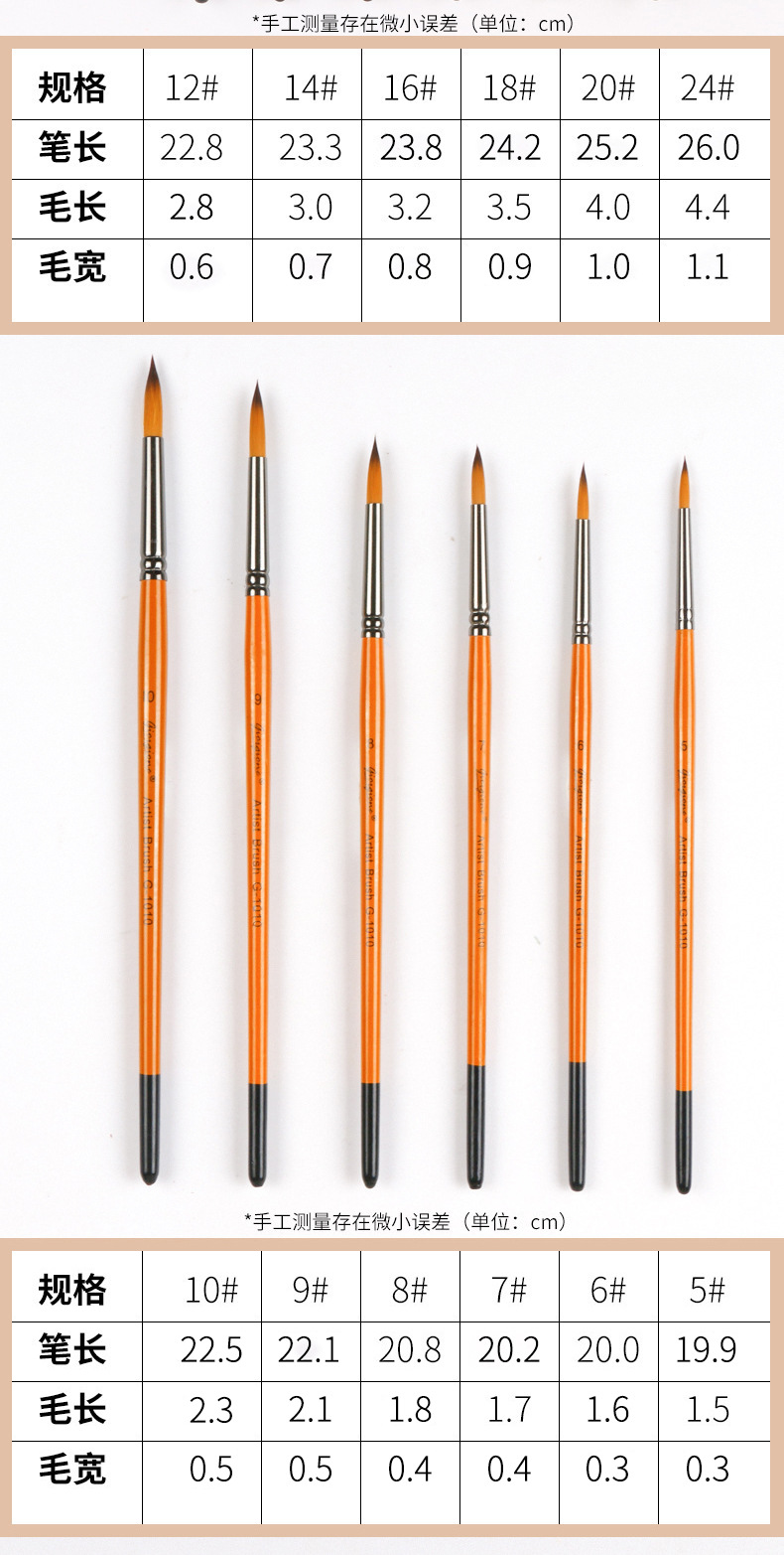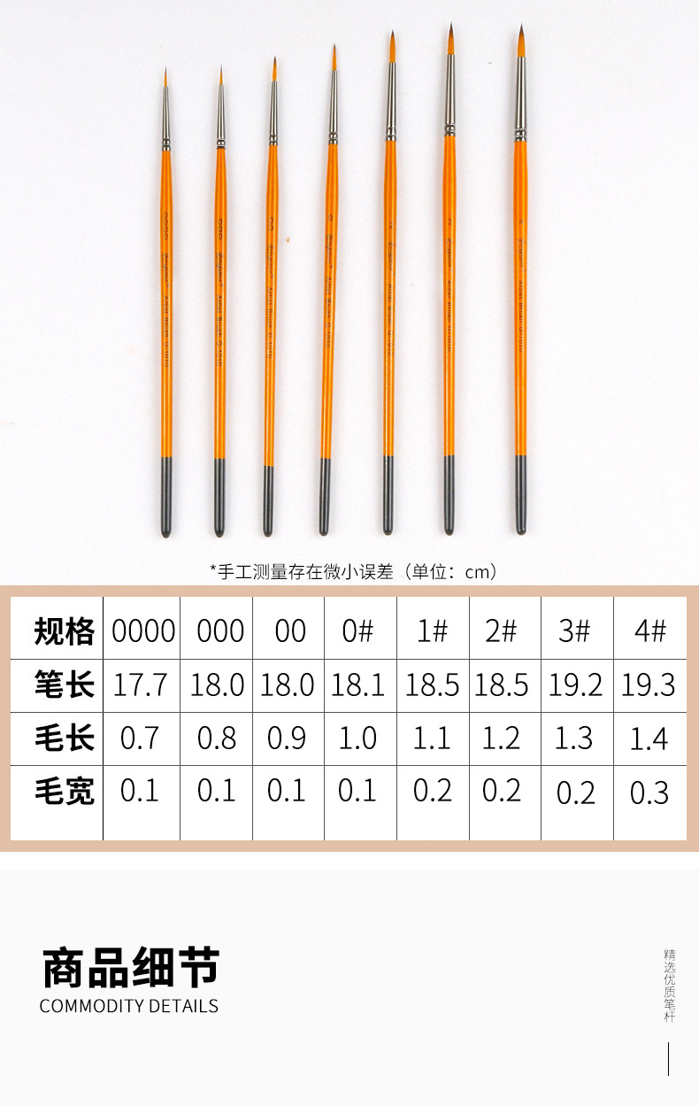 乔尔乔内单支尼龙毛橙光画笔圆头勾线水粉水彩笔刷数字油画笔专业