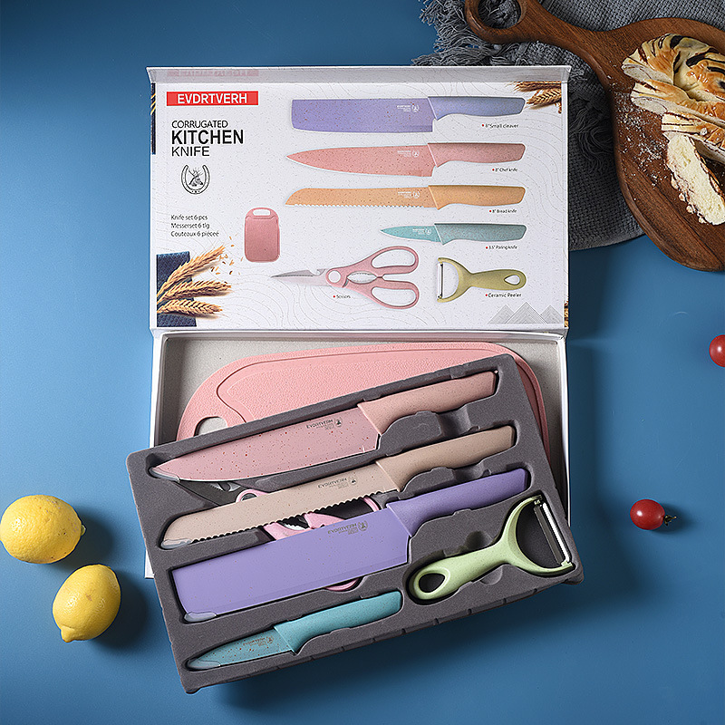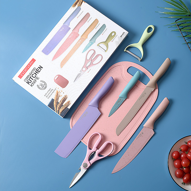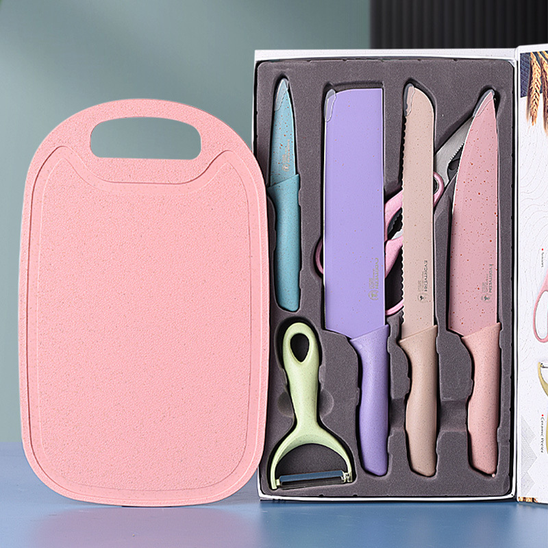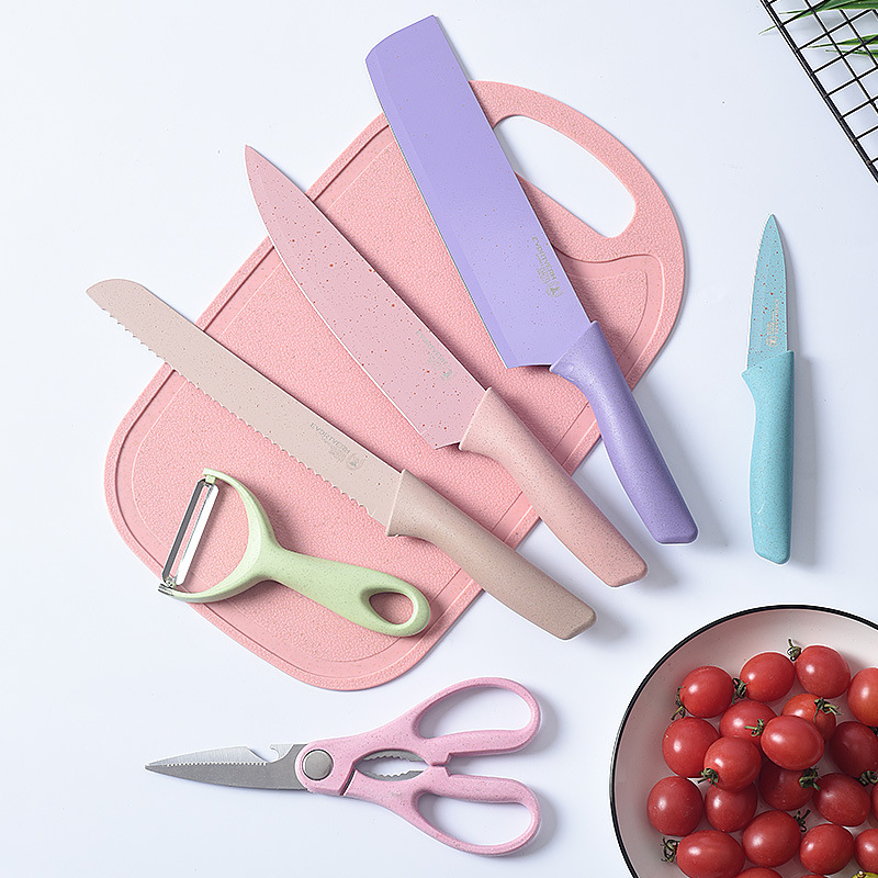 马卡龙彩色厨房刀具套装不锈钢家用菜刀麦秸杆7件套厨师刀具套装