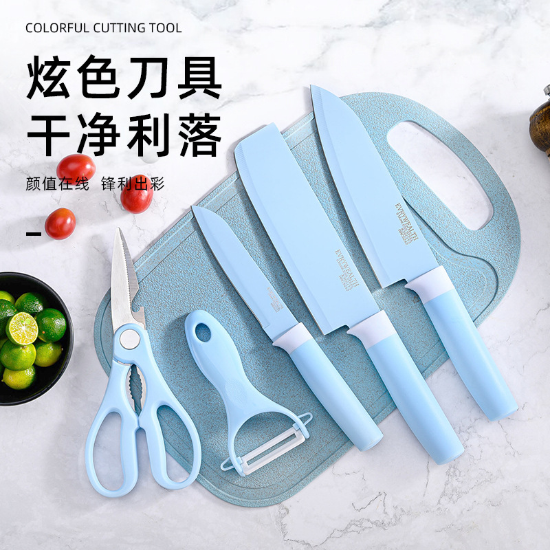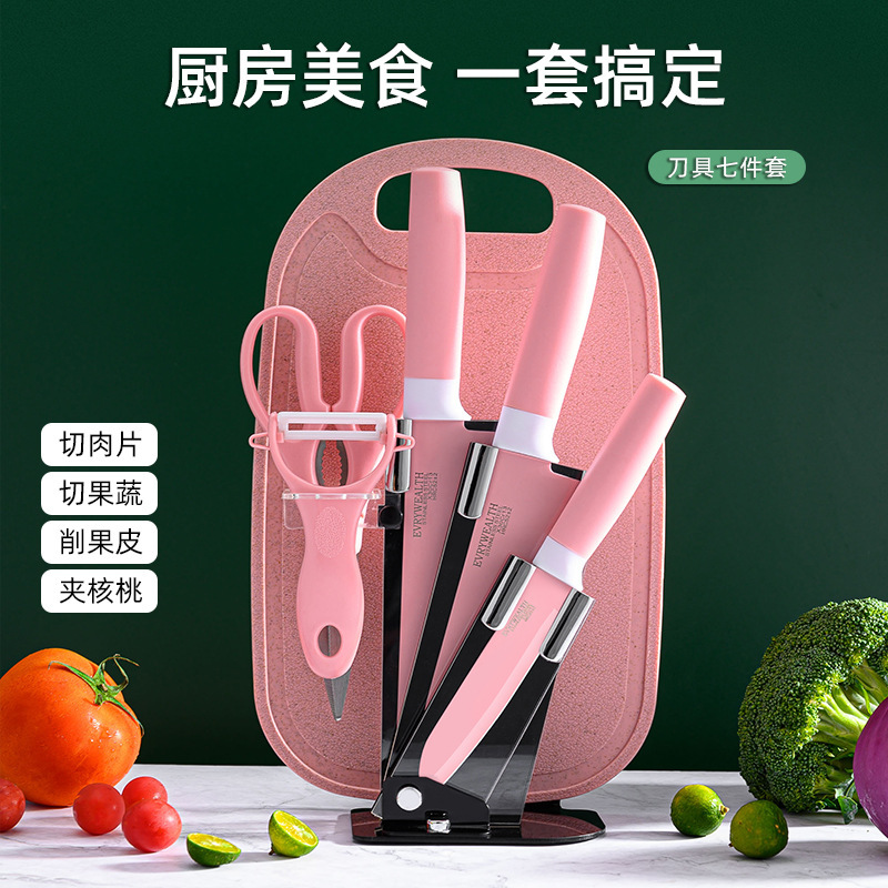 厨房家用刀具套装不锈钢彩色刀具7件套多功能组合商务礼品套刀