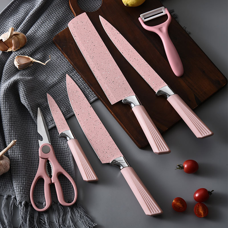 新款彩色波点不粘刀具套装不锈钢厨房礼品刀具套刀