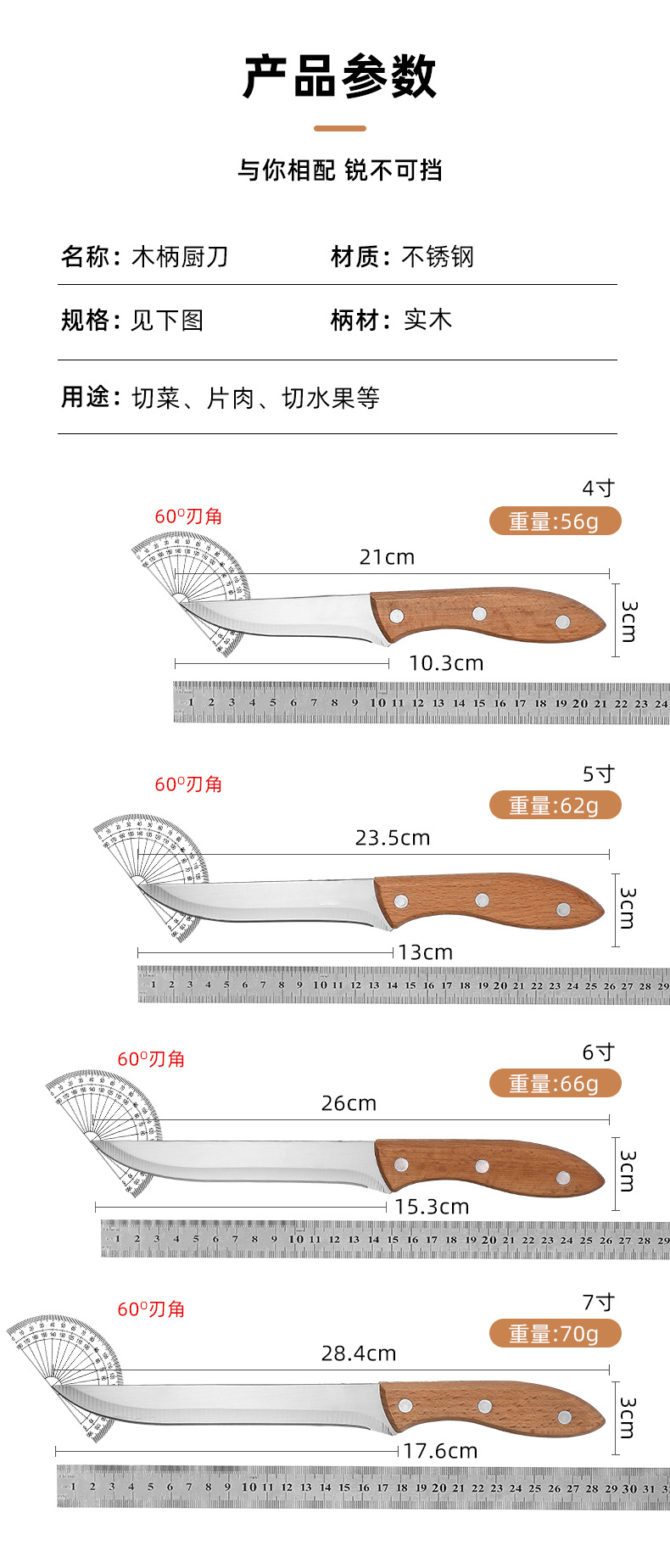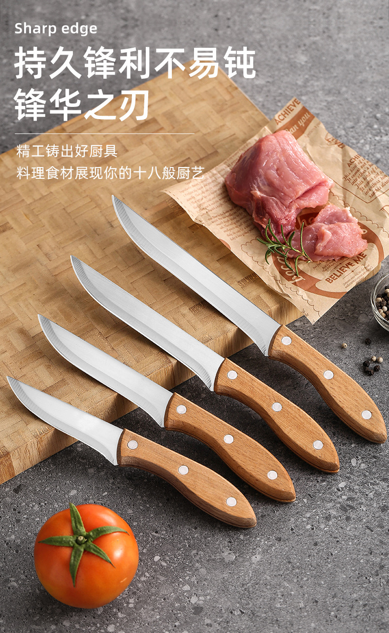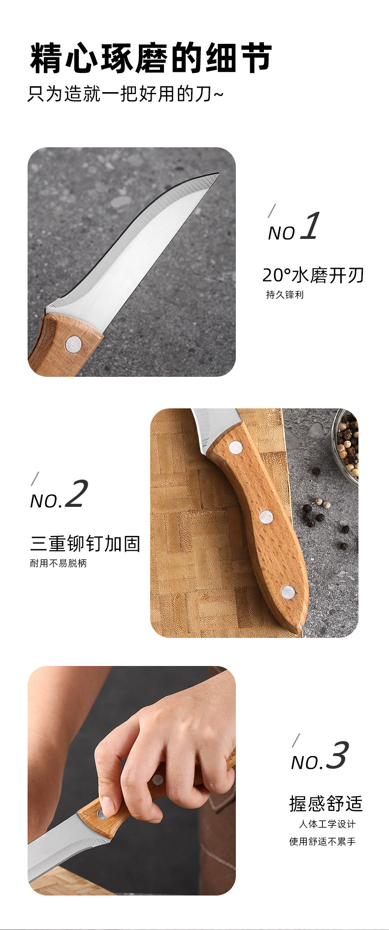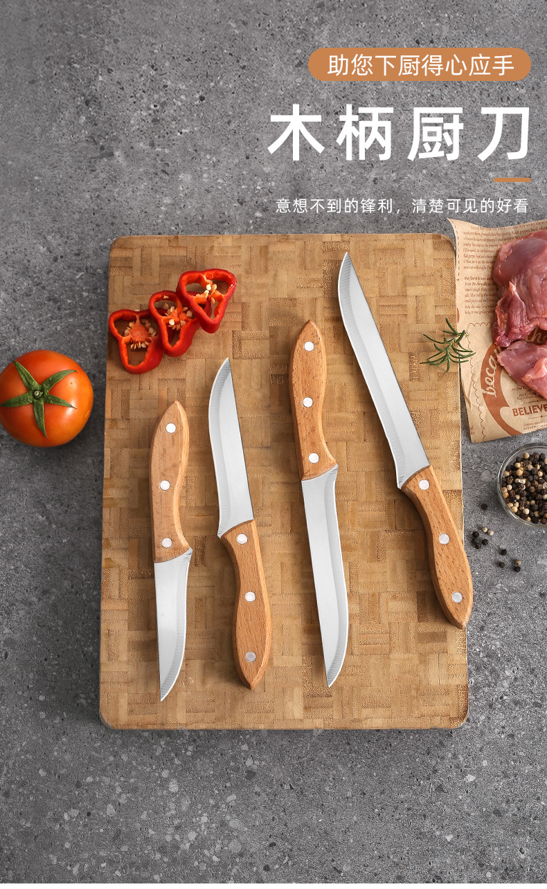 不锈钢木柄厨师刀家用切片刀厨房切肉刀具水果刀菜刀锋利剔骨刀