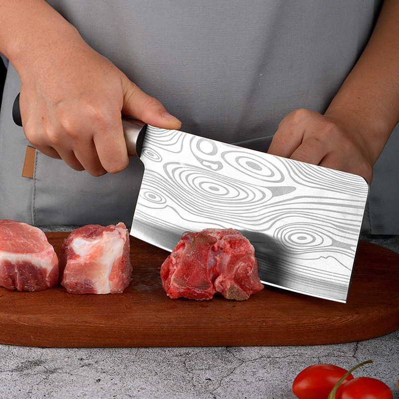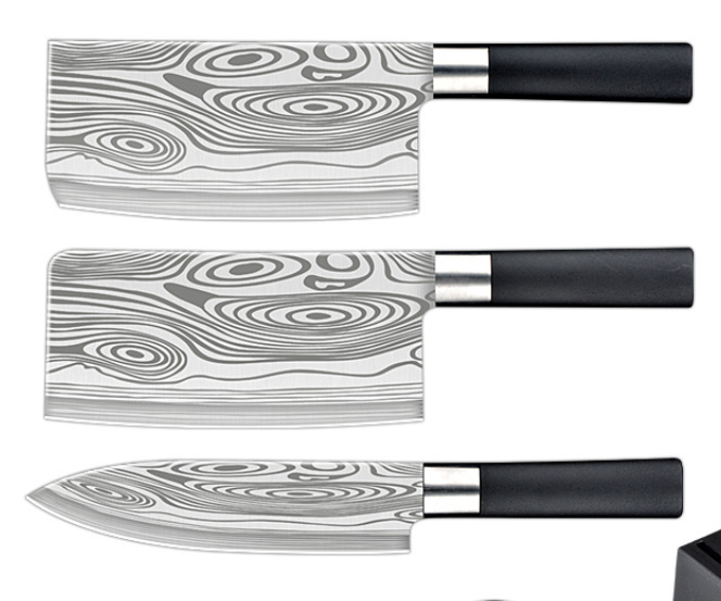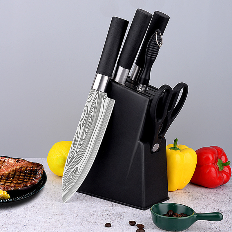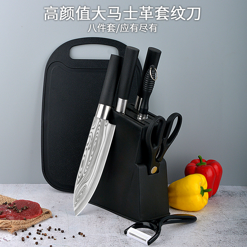 现货不锈钢套刀八件套菜刀礼品套装切片刀大马士革激光纹刀具套装