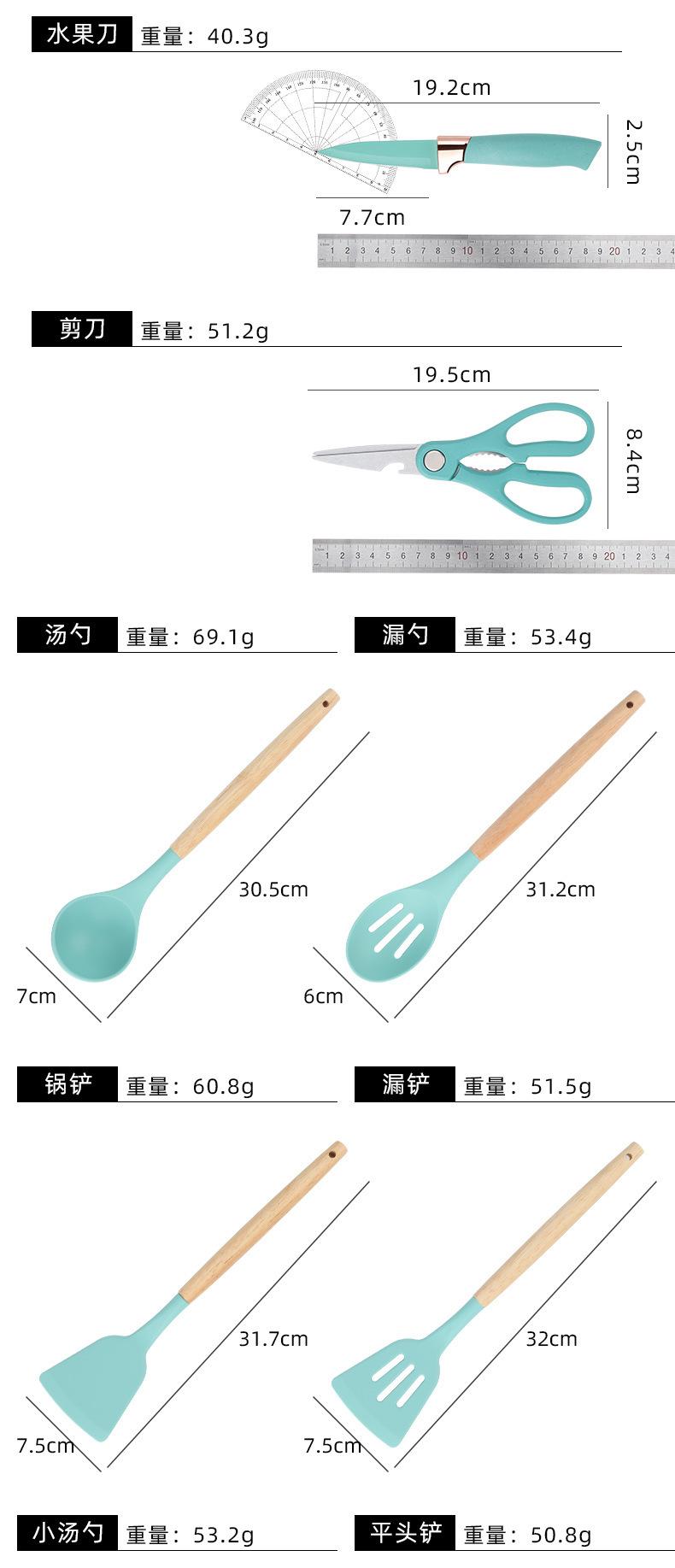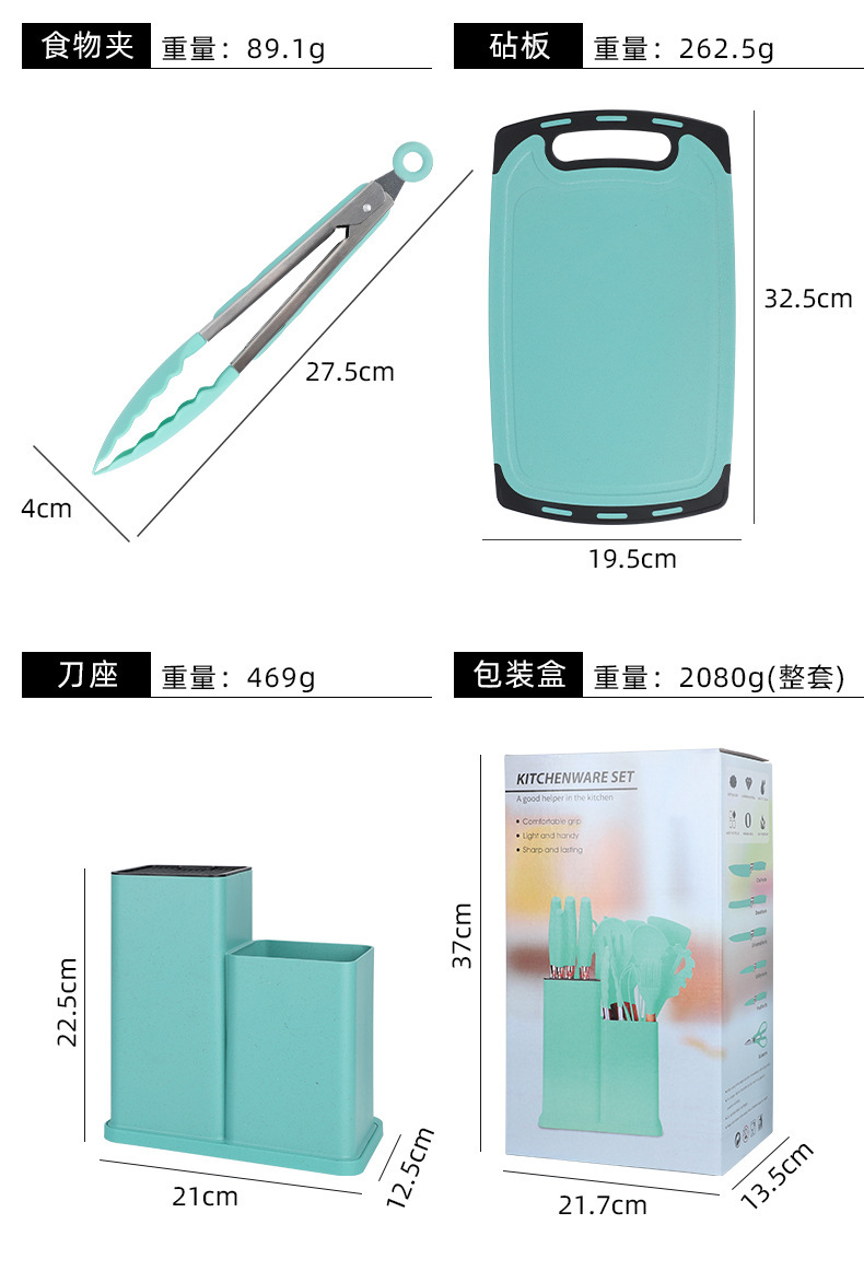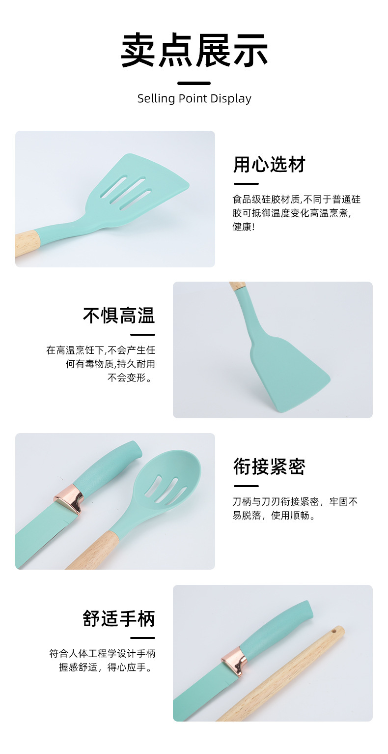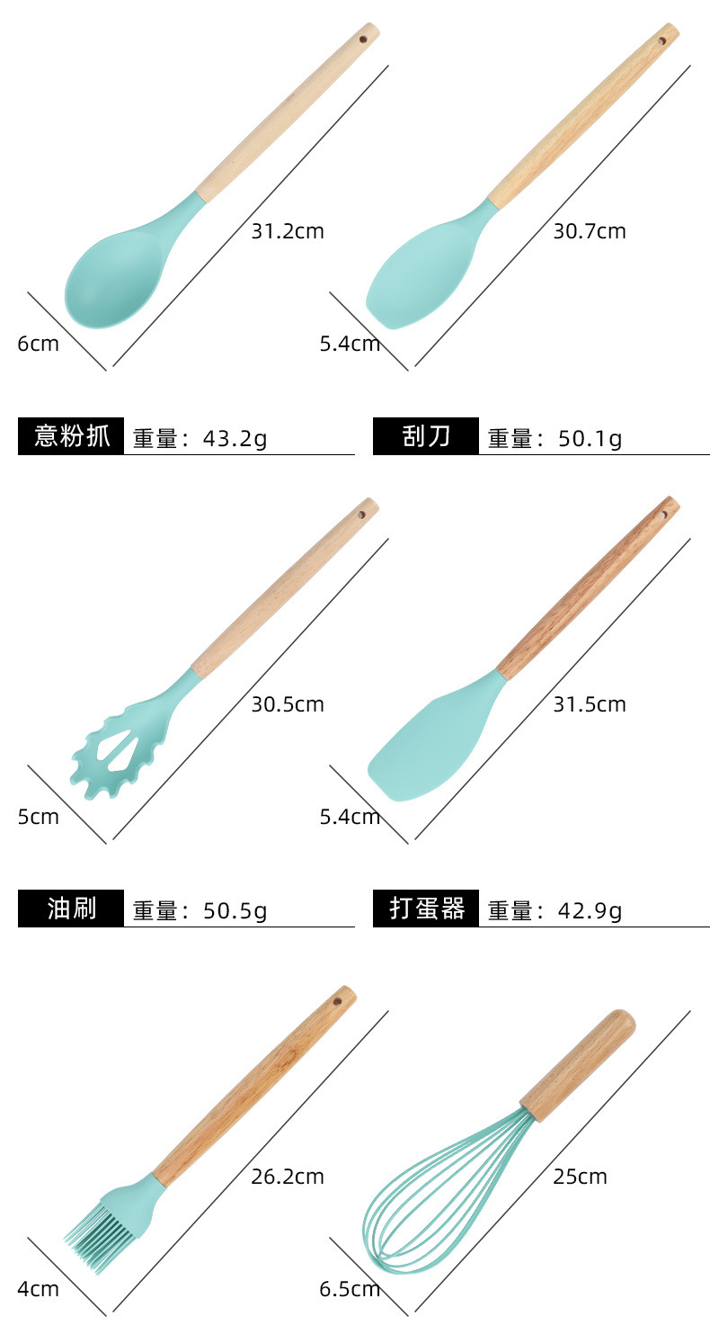 19件套硅胶厨具套装食品级耐高温厨房必备不粘锅铲汤勺漏勺烘焙