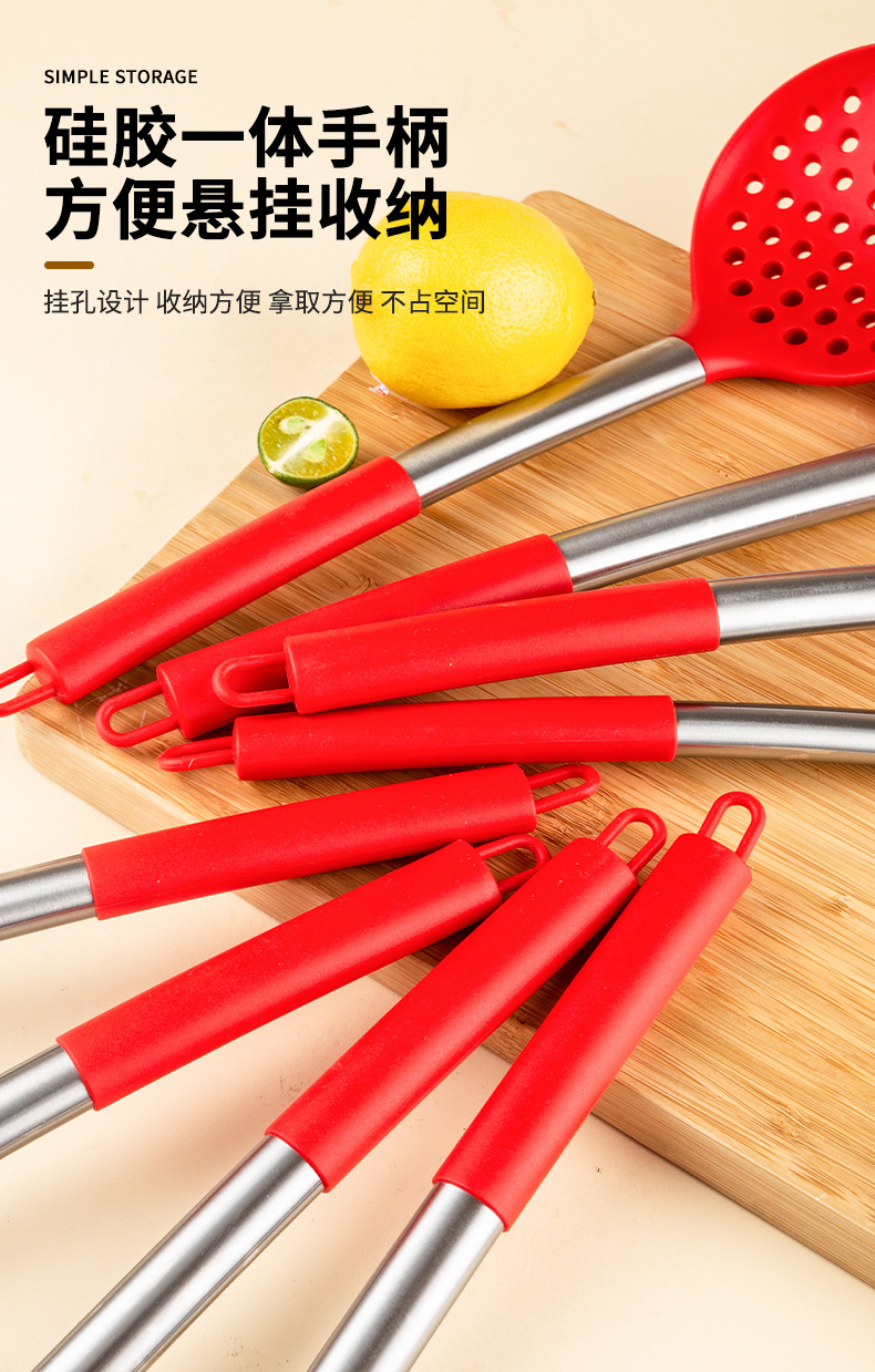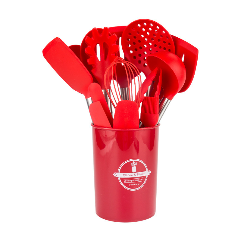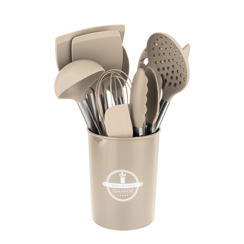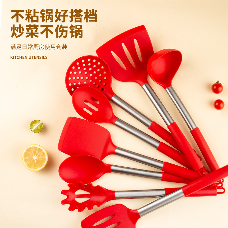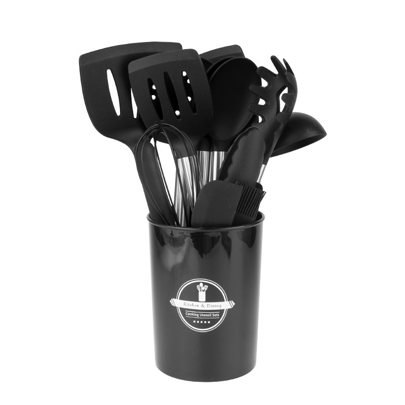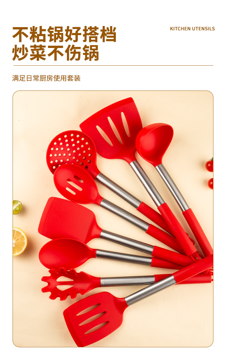 不锈钢管柄硅胶厨具厨房烹饪勺铲烘焙工具收纳桶厨房工具套装厂家