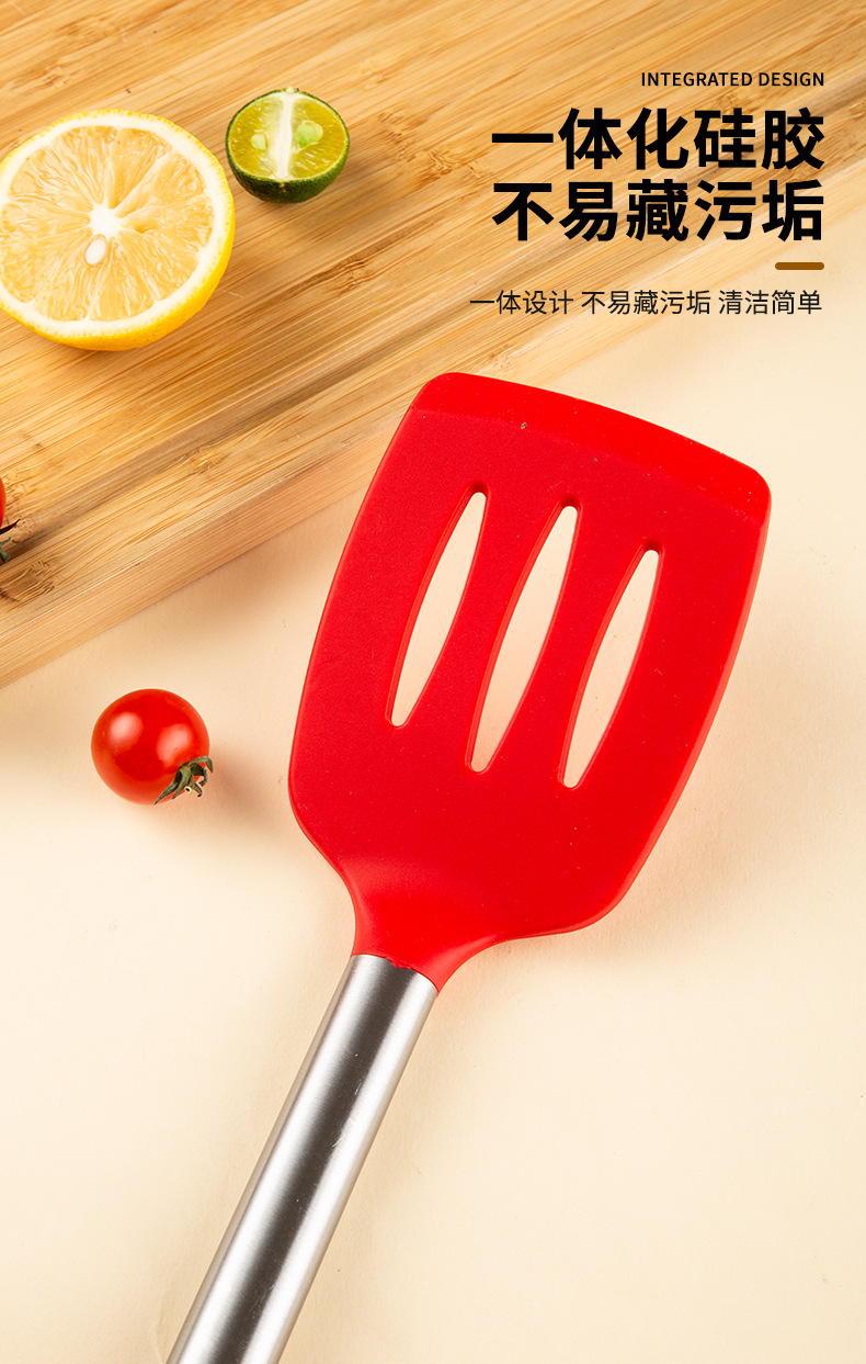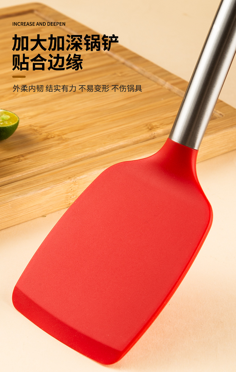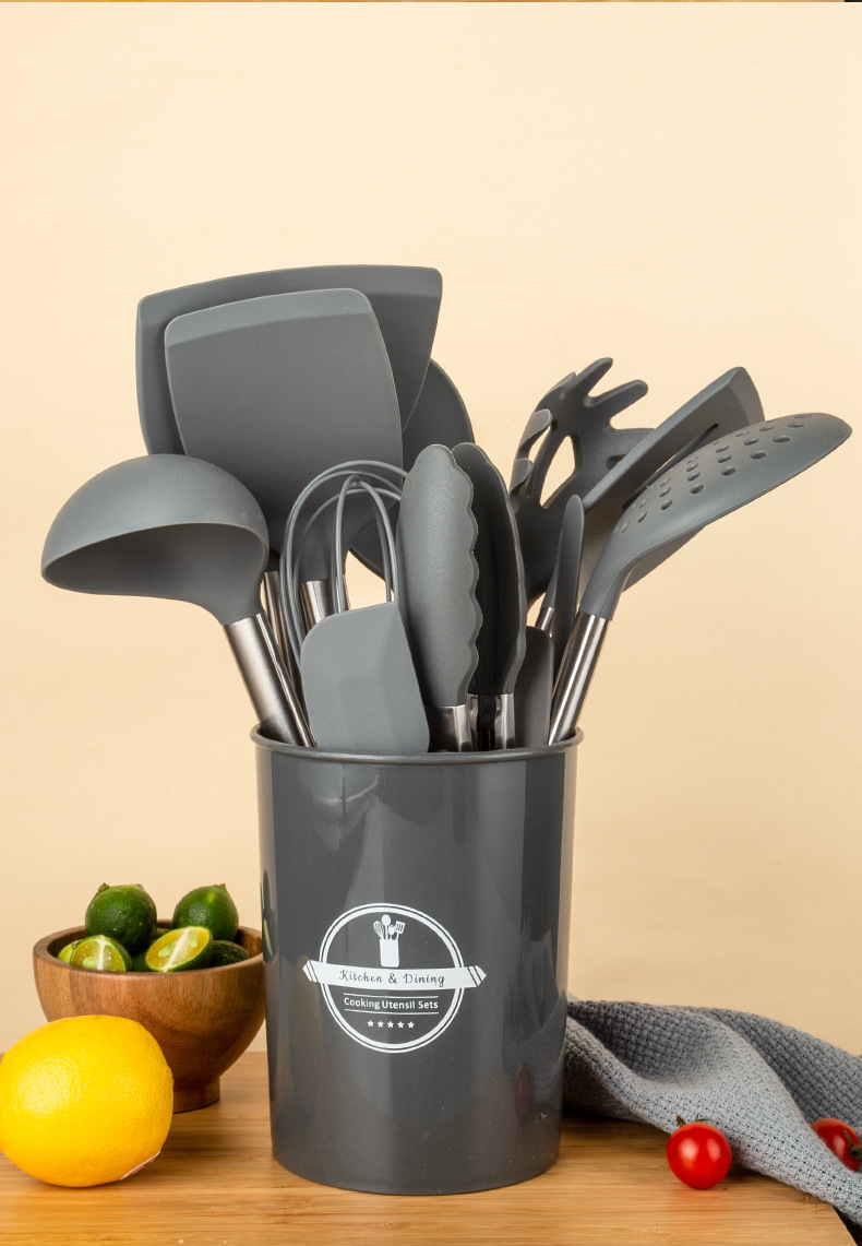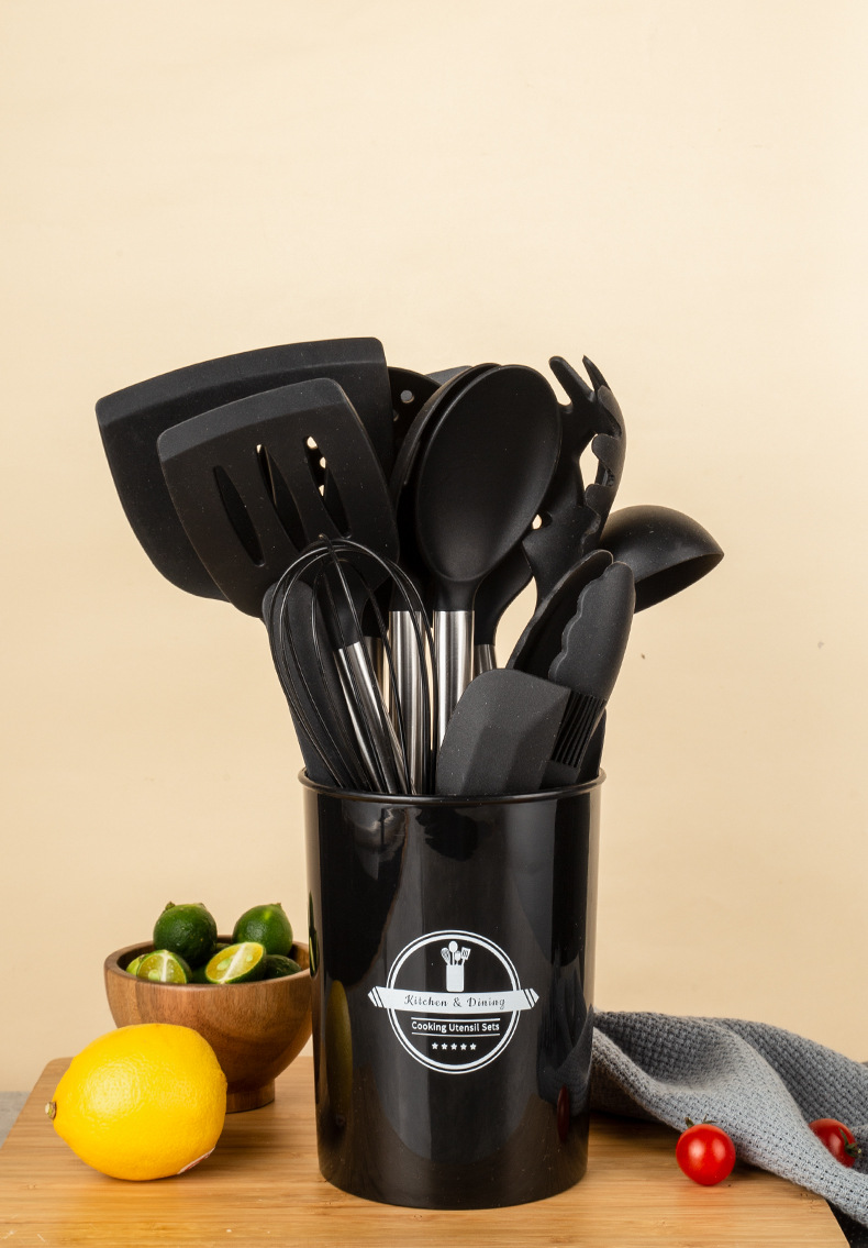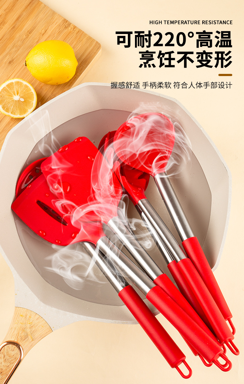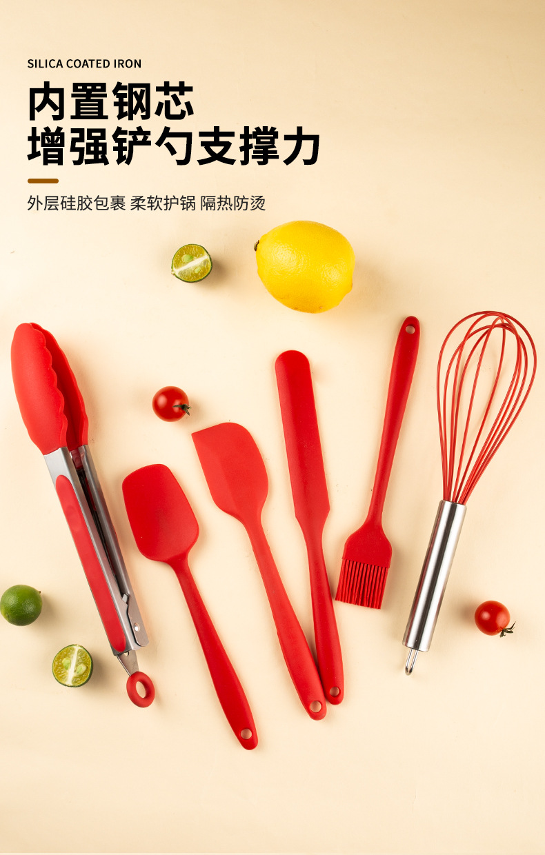 不锈钢管柄硅胶厨具厨房烹饪勺铲烘焙工具收纳桶厨房工具套装厂家