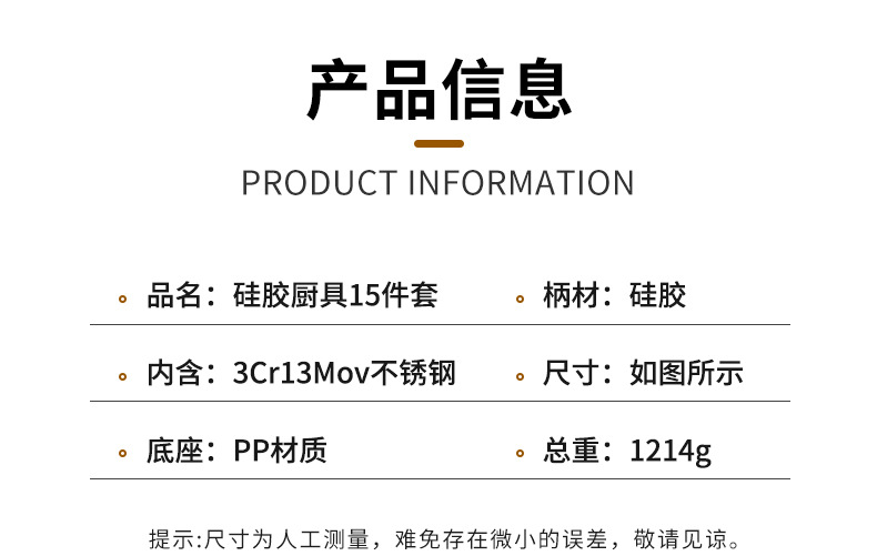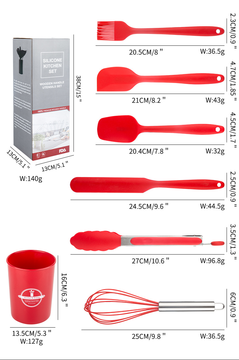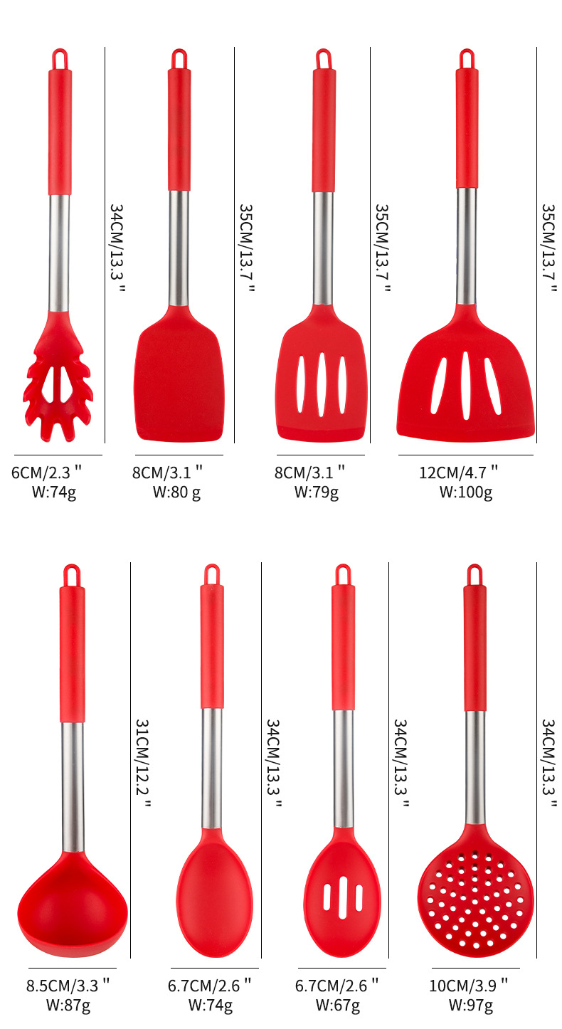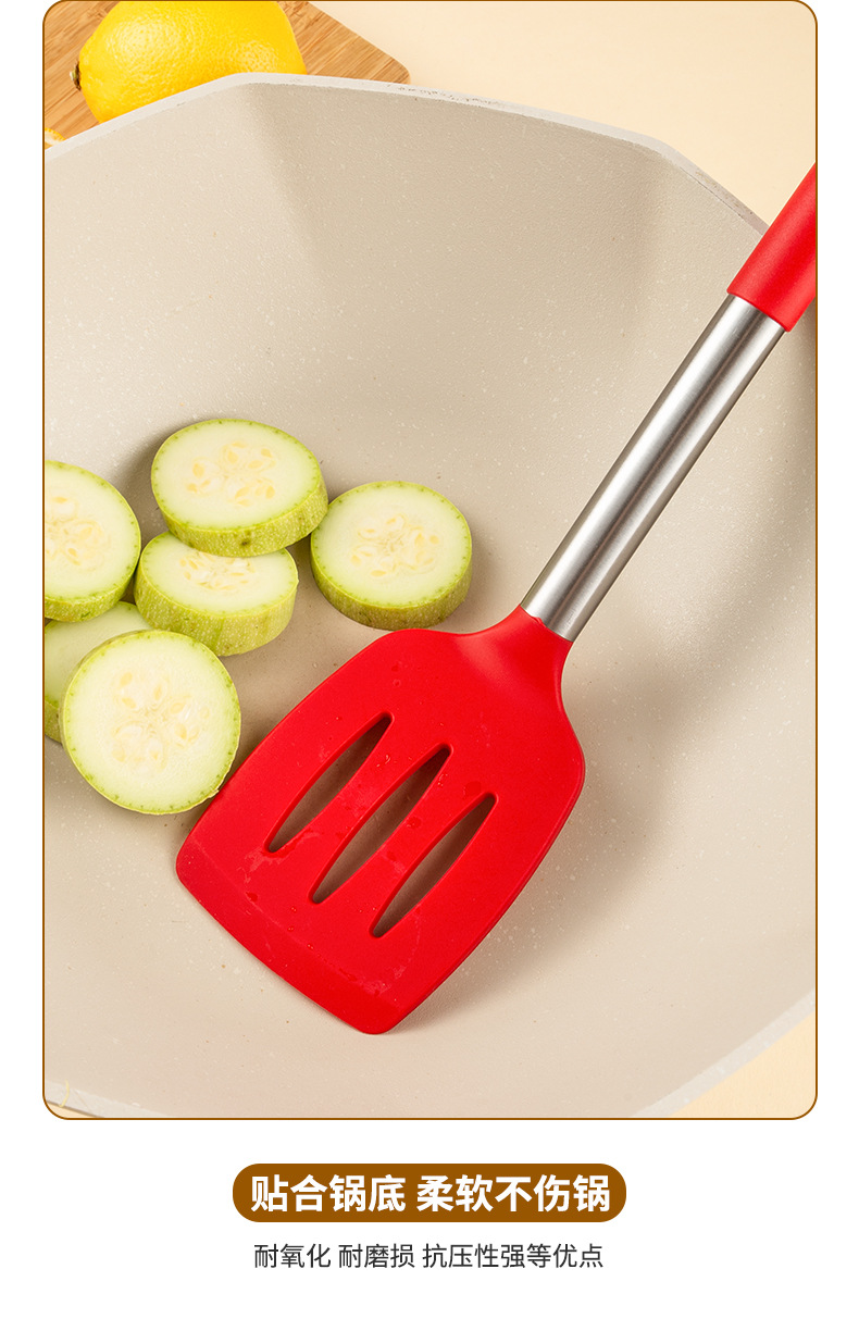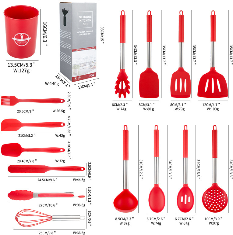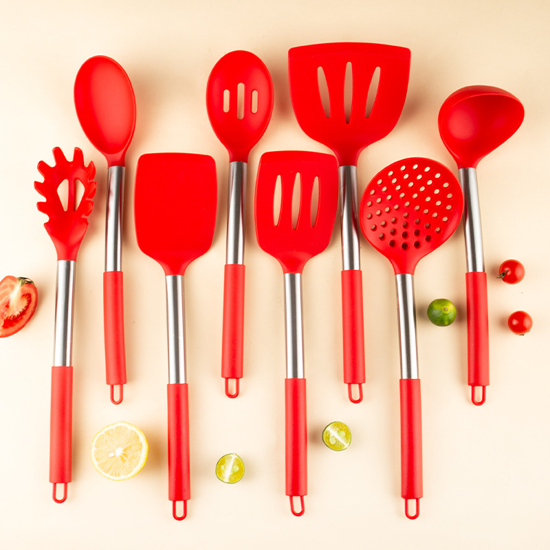 不锈钢管柄硅胶厨具厨房烹饪勺铲烘焙工具收纳桶厨房工具套装厂家
