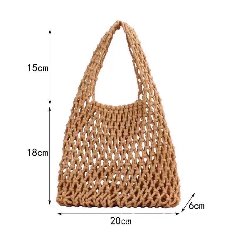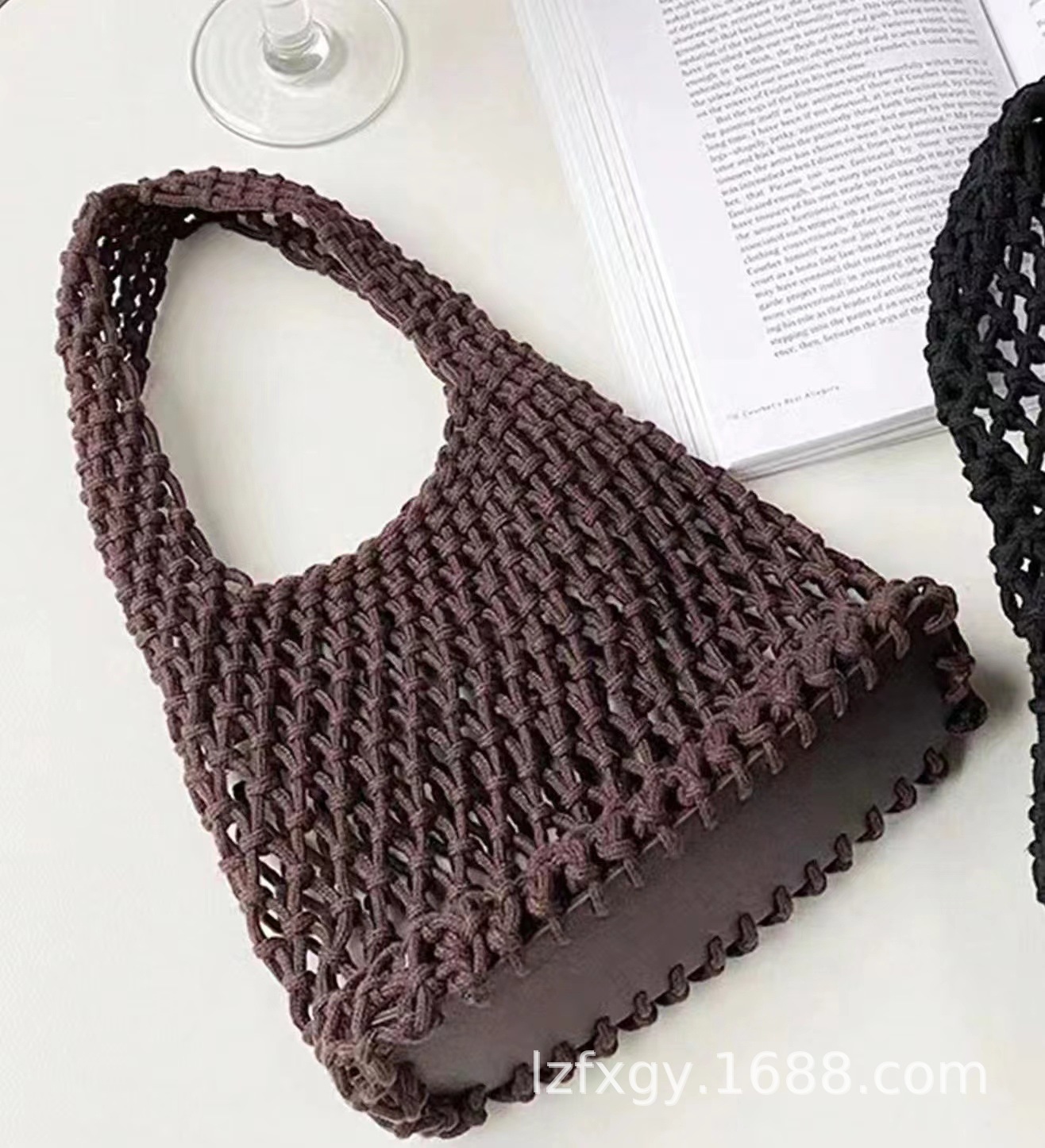 跨境草编包棉绳女包手工编织包手提包2025韩系新款慵懒风渔网包休