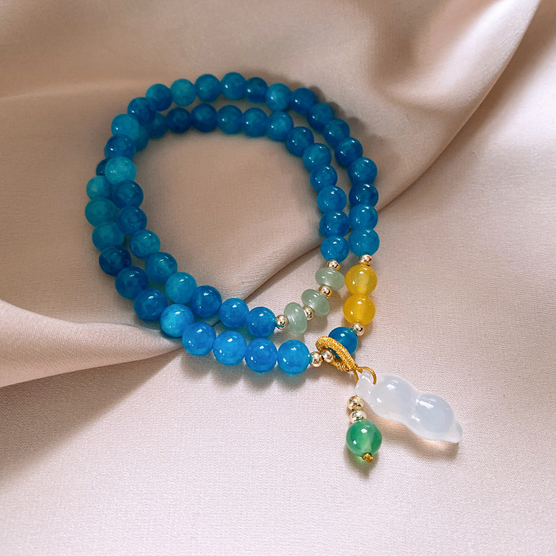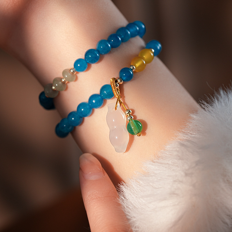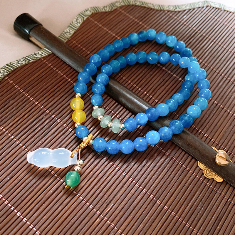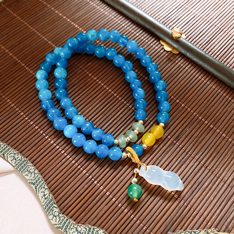 天然玉髓圆球彩石葫芦手链新中式时尚高级感可叠戴式手串百搭复古