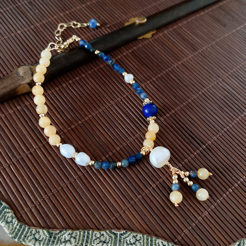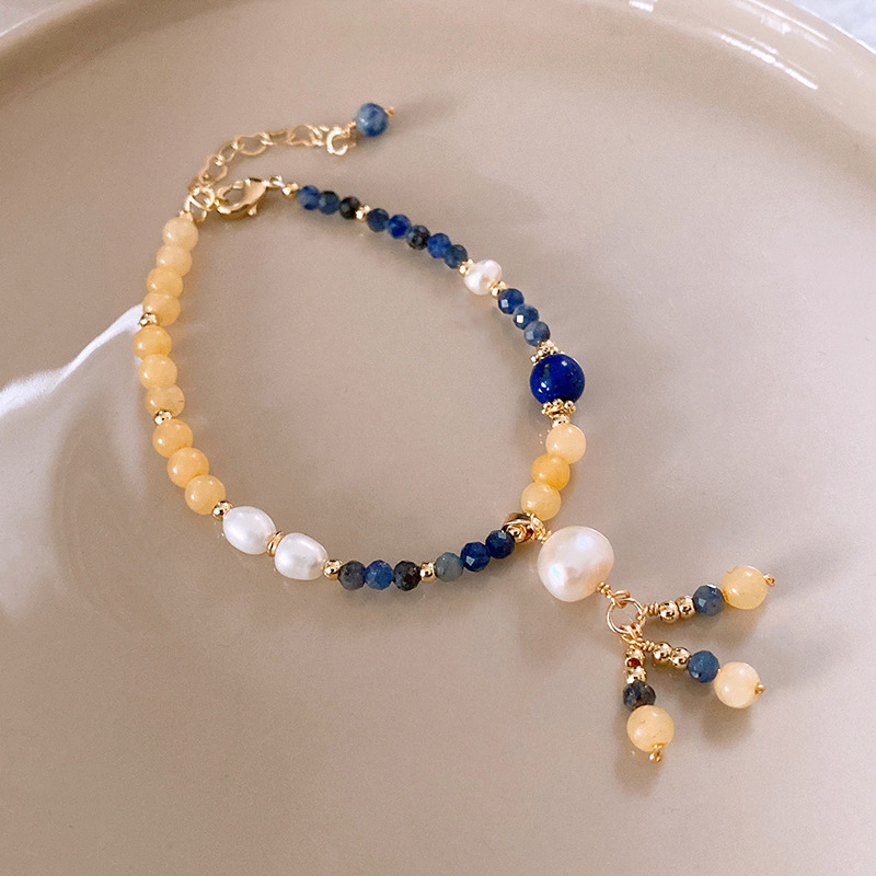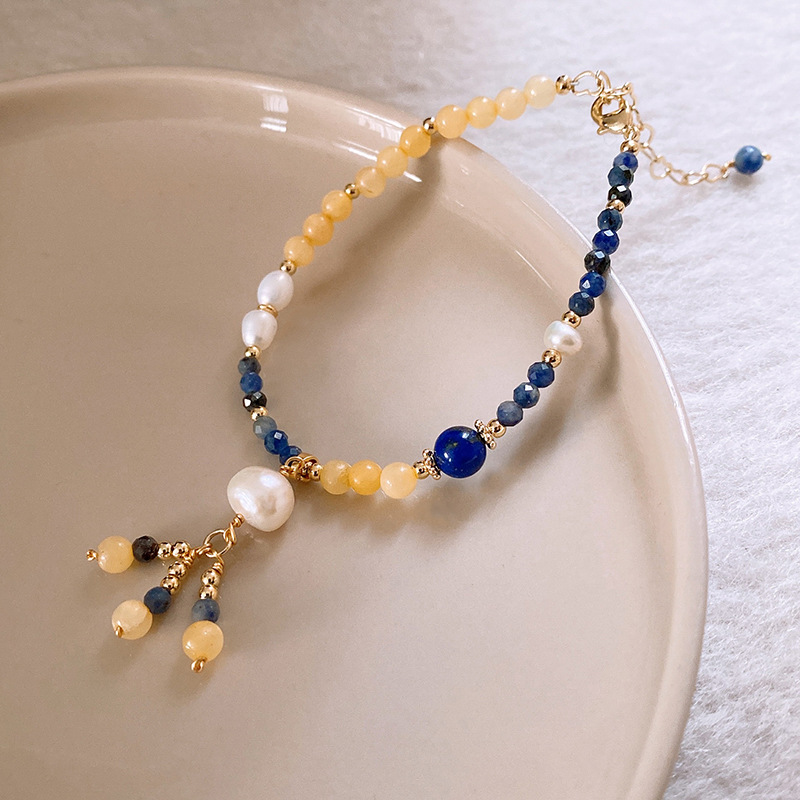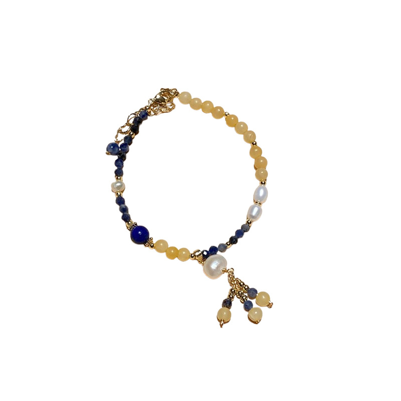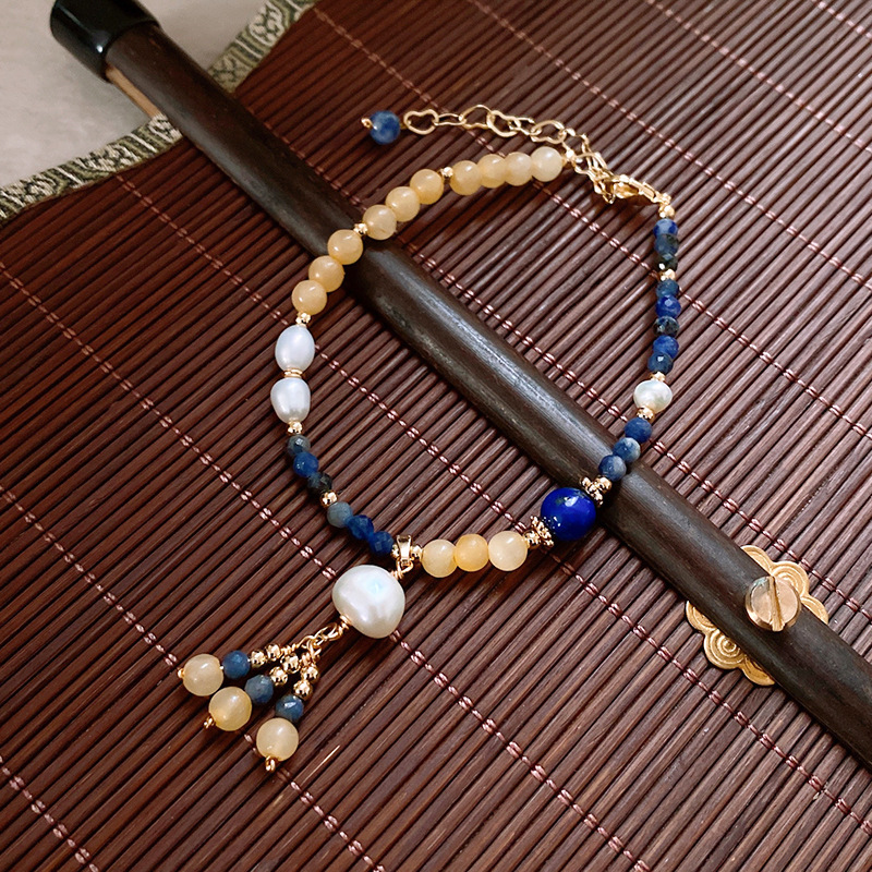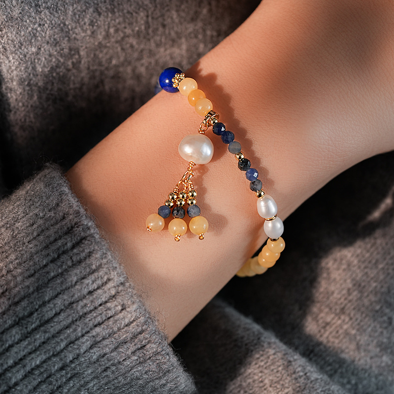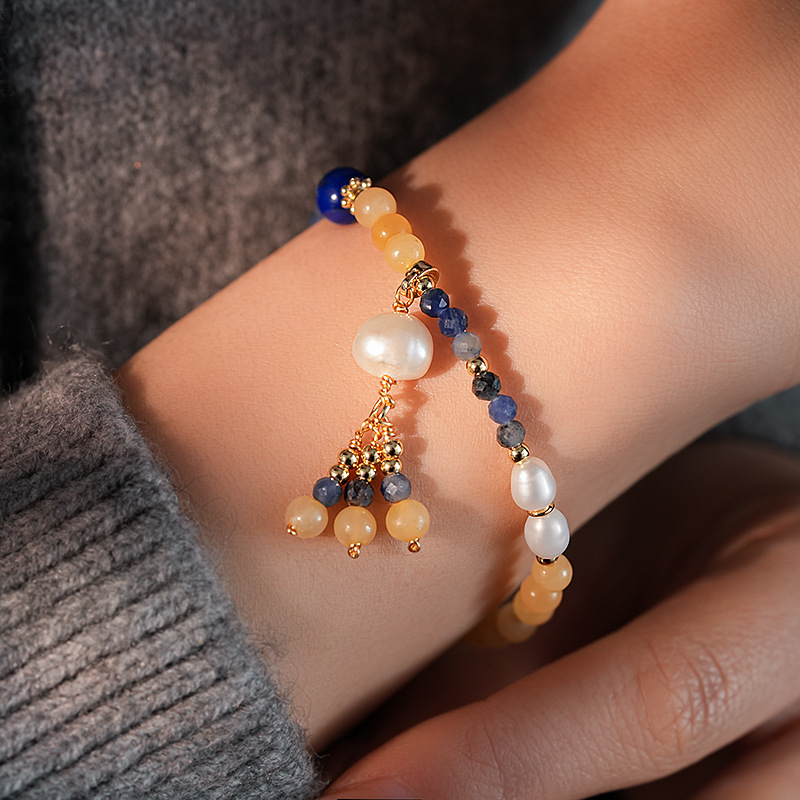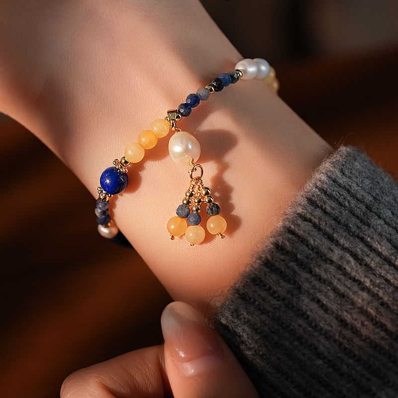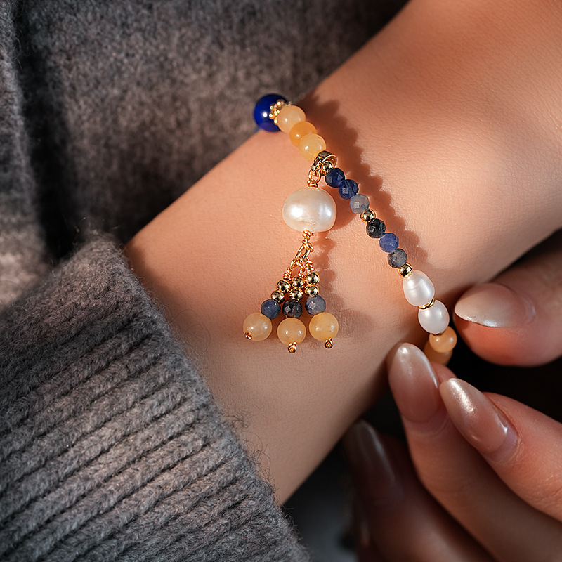 捕梦网圆球兰纹石钛铜珍珠吊坠手链个性夸张ins风手环手饰批发女