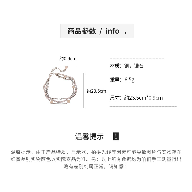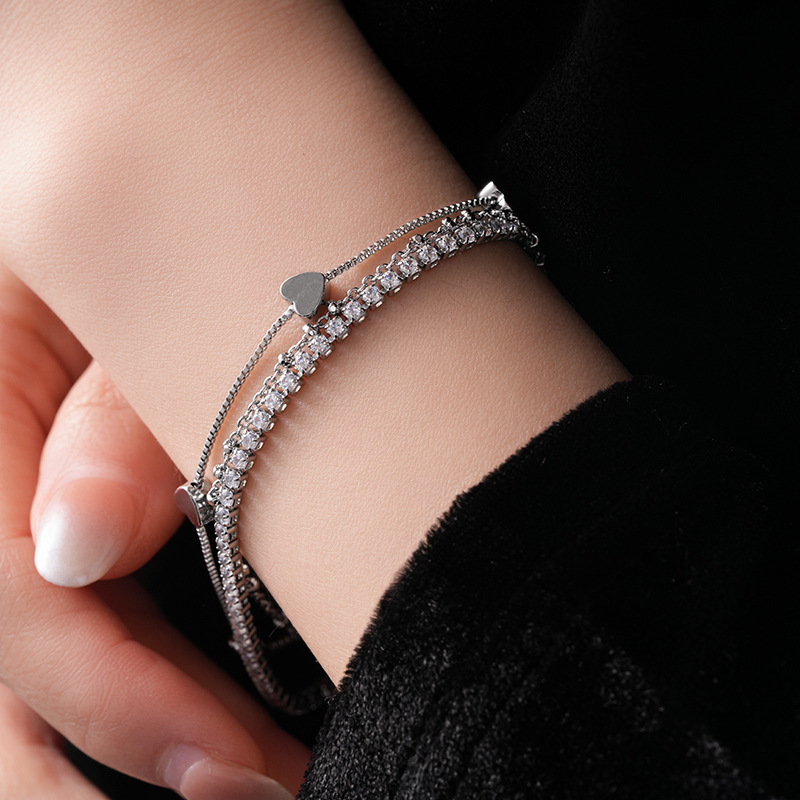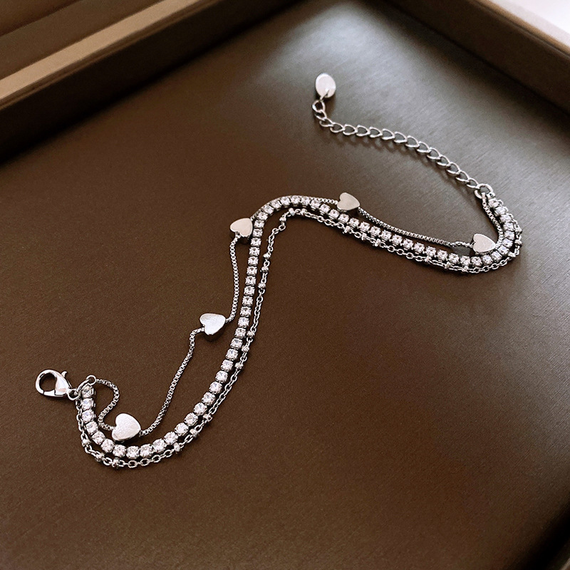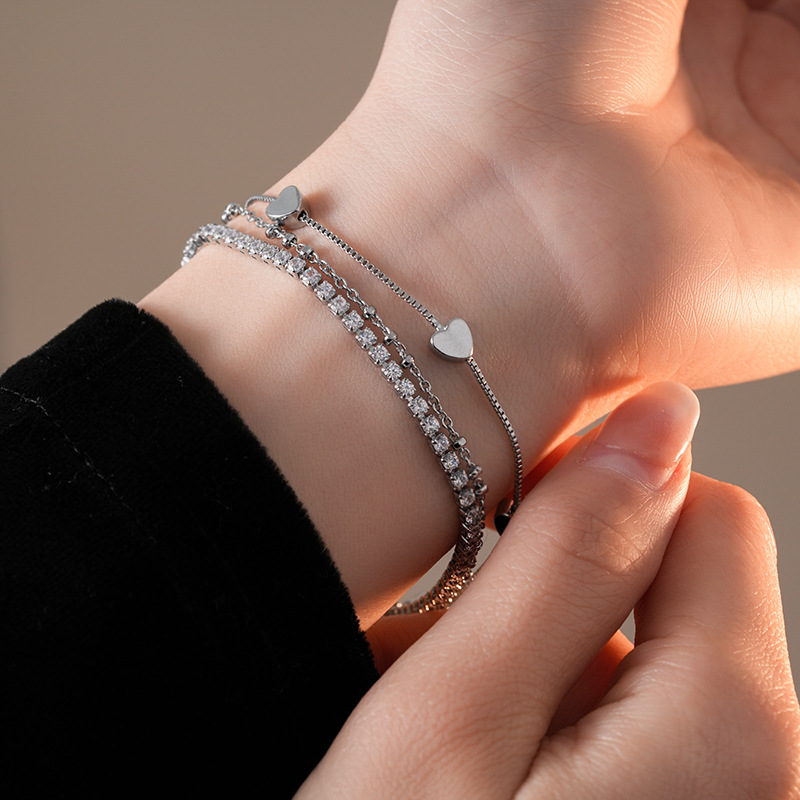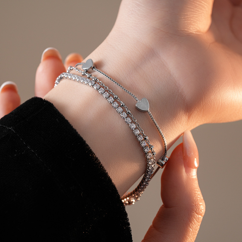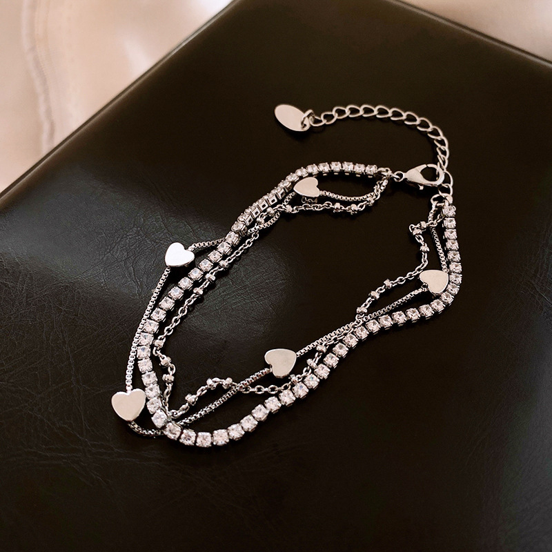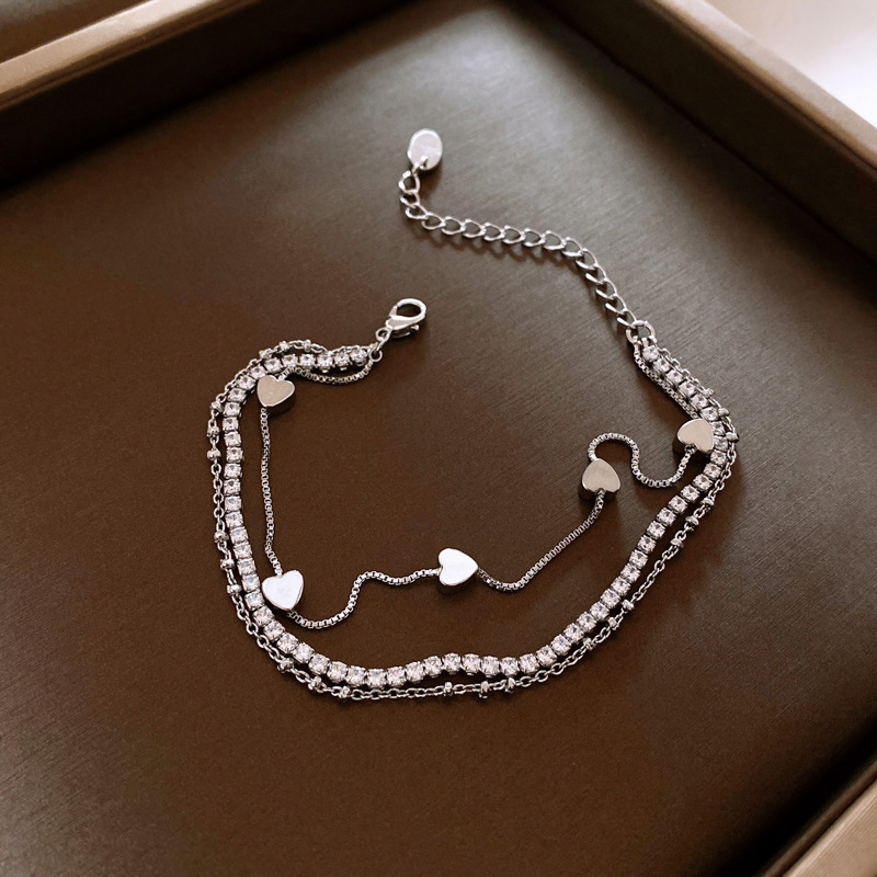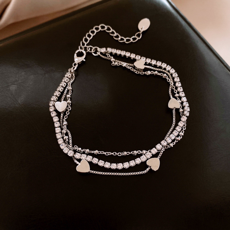 轻奢风锆石爱心多层手链气质高级感S925银手环小众百搭时尚手饰女