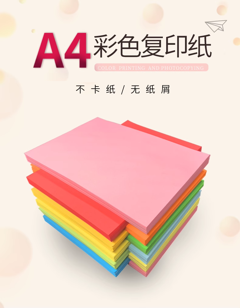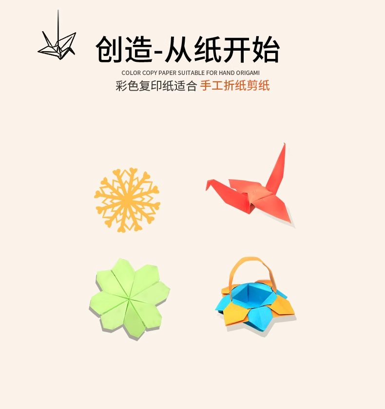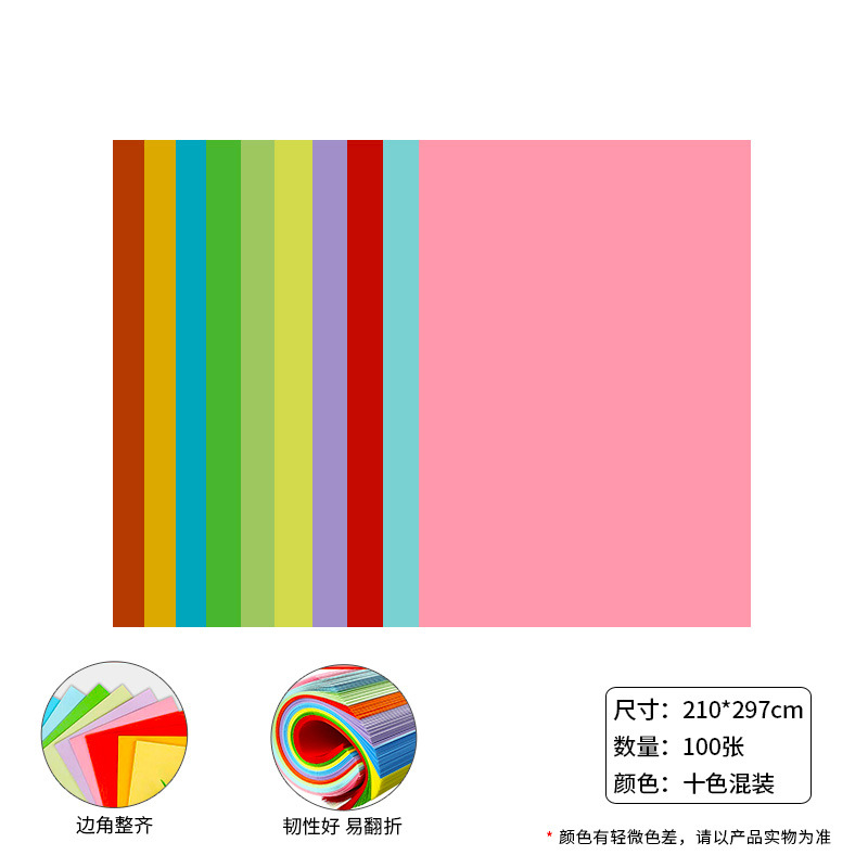 a4彩色办公用打印复印纸100张学生DIY益智手工折纸折纸加厚彩打纸